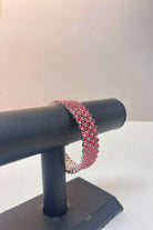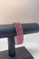 - Design: Features three parallel rows of precisely cut, rectangular Ruby Red AD stones, creating a bold, continuous sparkle.