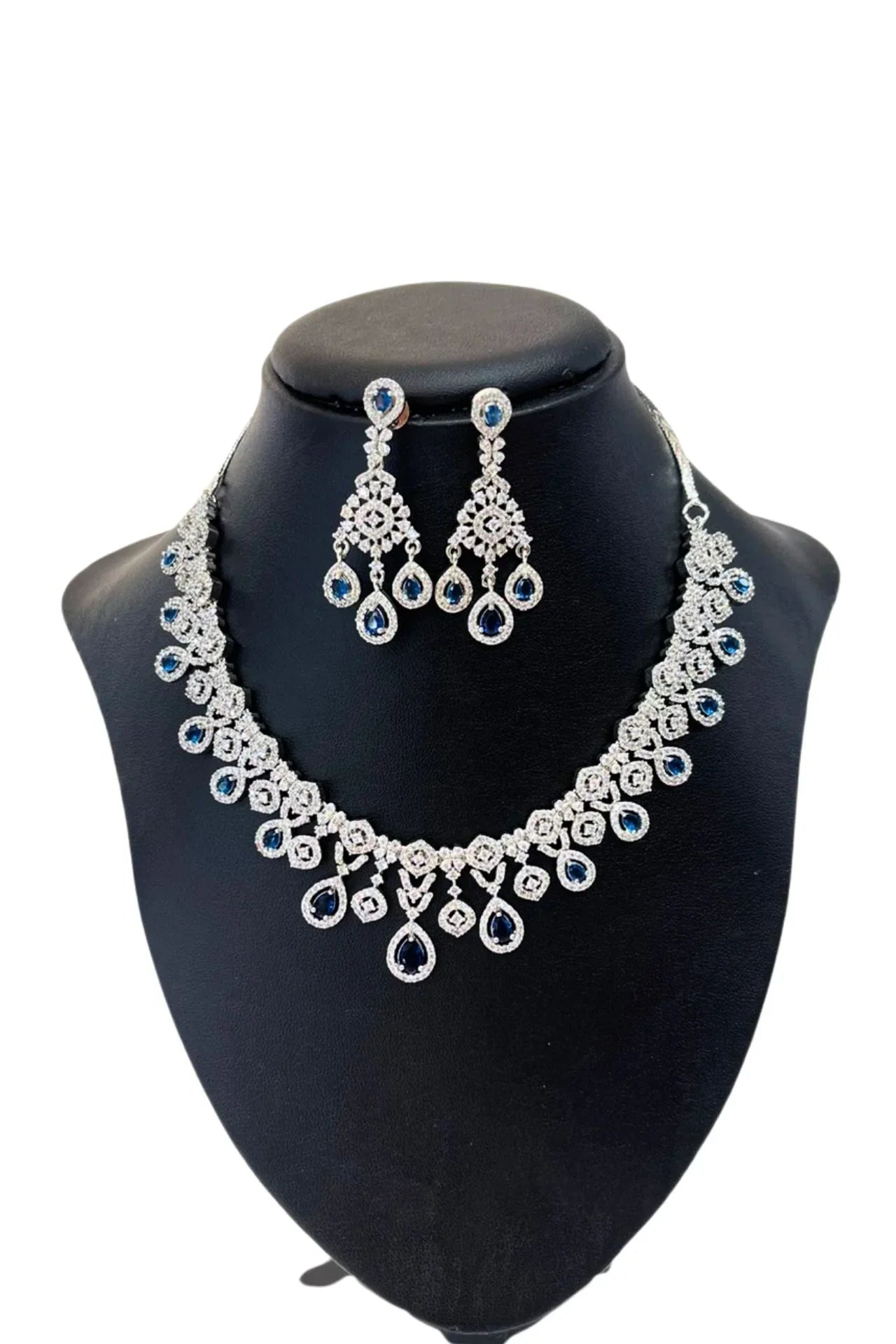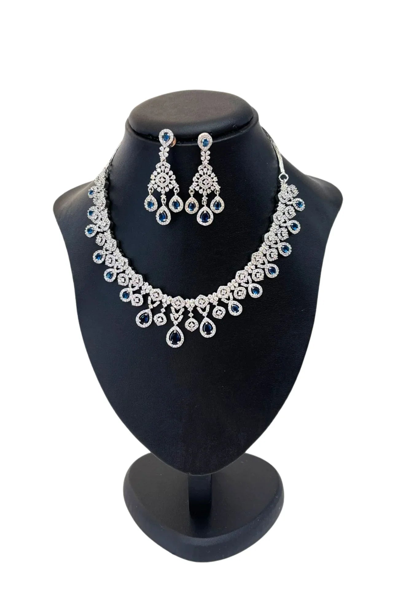 Blue & White American Diamond Necklace Set