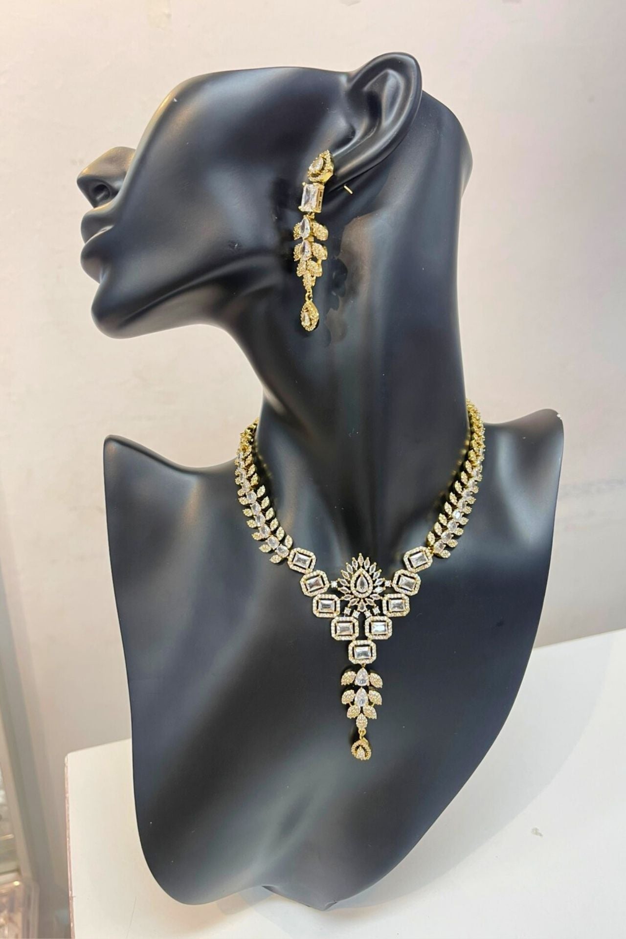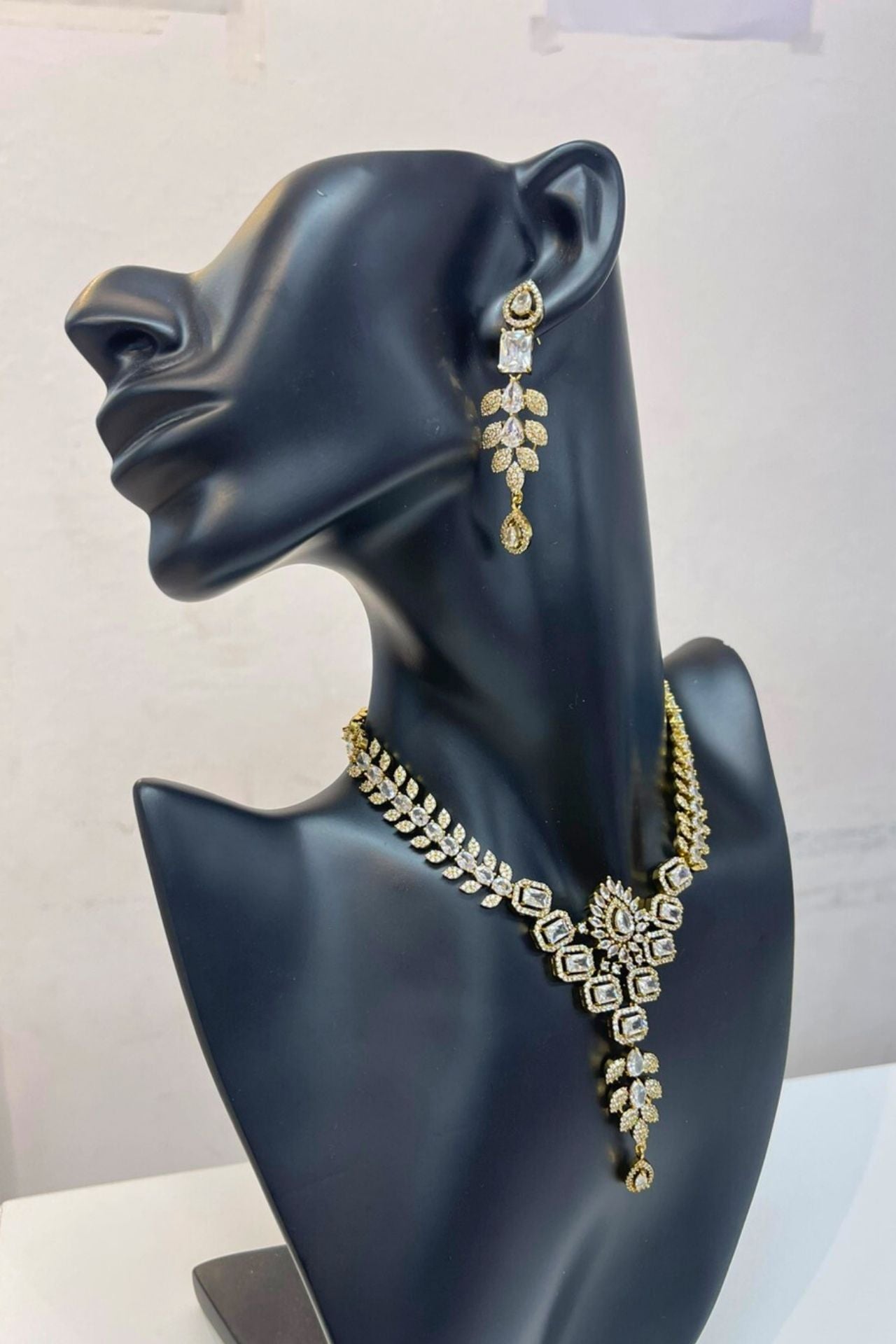 Geometric Cluster American Diamond Gold Plated Necklace Set