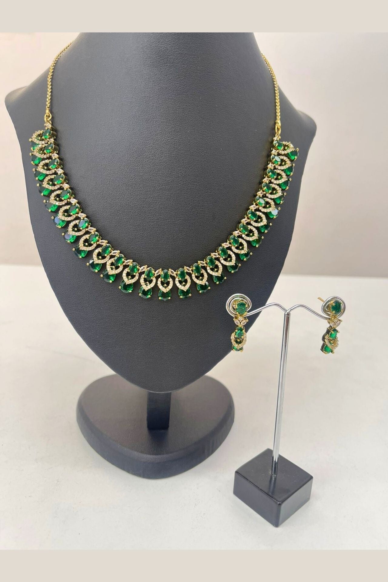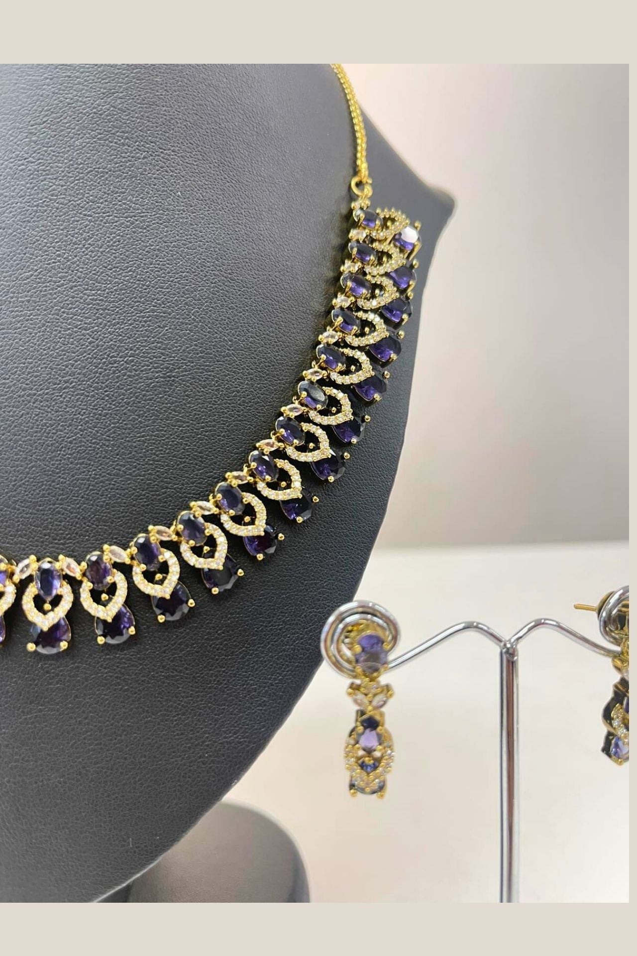Gold American Diamond Necklace Set Earrings