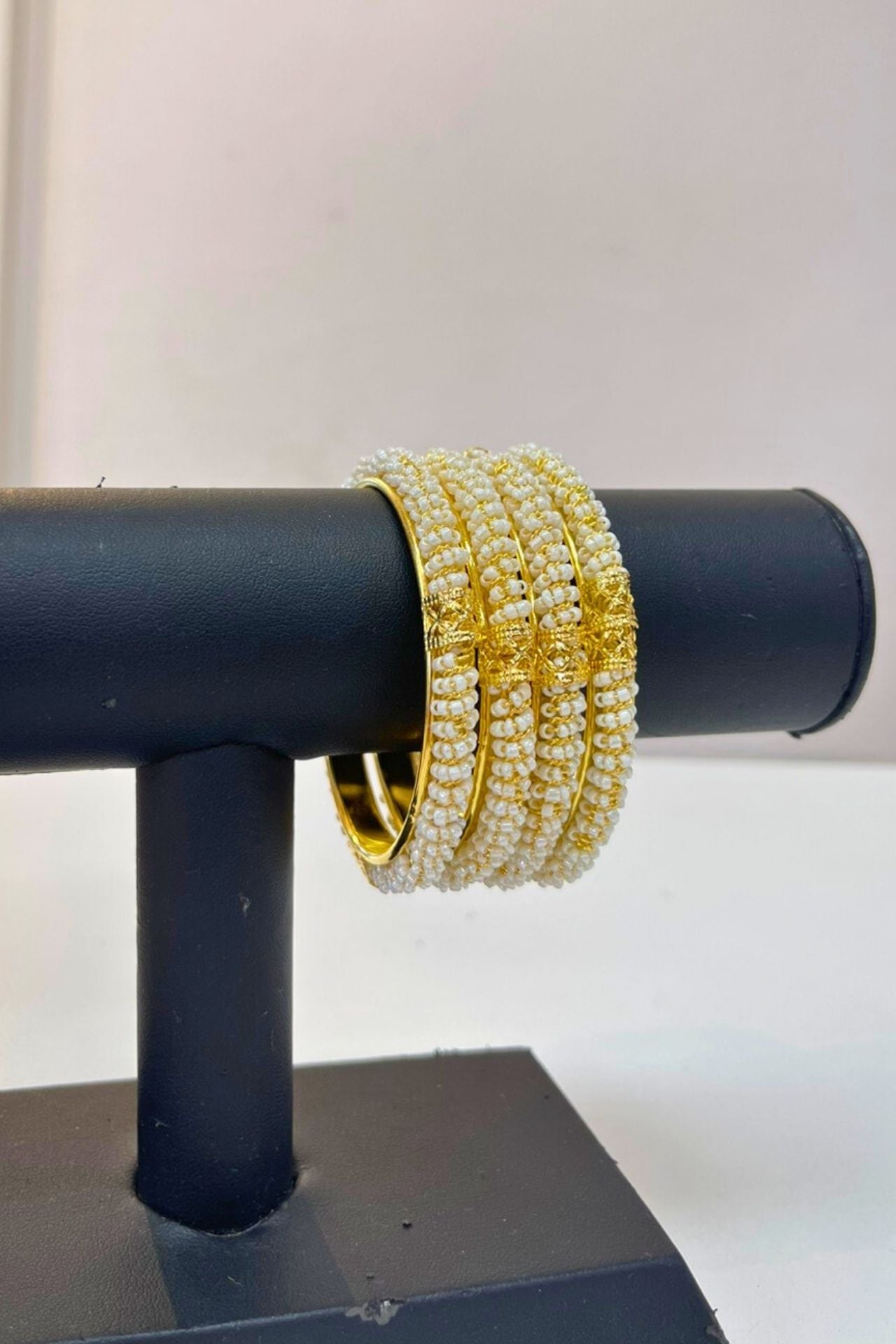 Design: Each bangle is beautifully lined with tiny micro-pearls and features a central medallion on the top showcasing a sculpted Elephant motif.