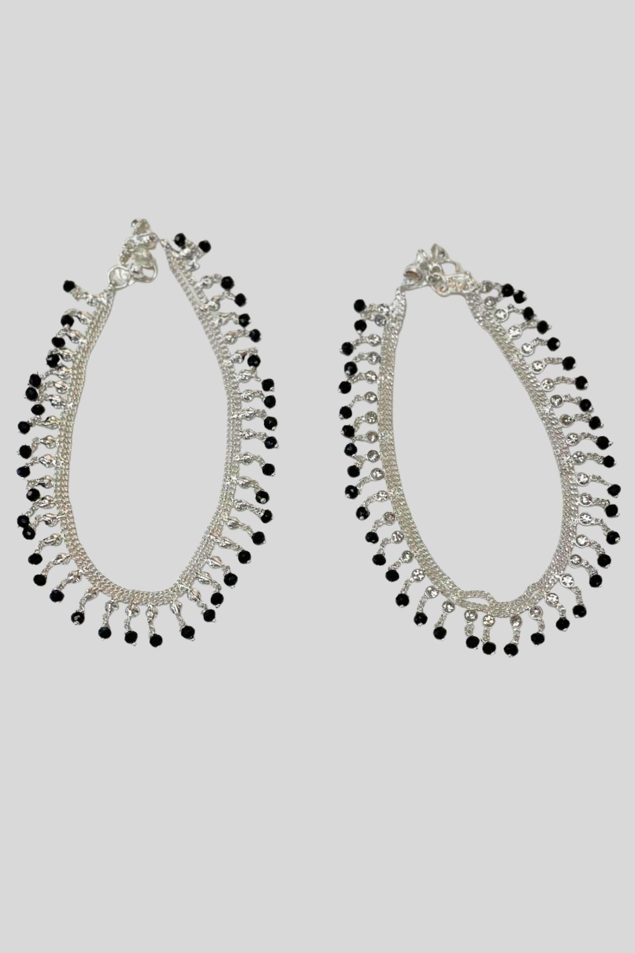 Silver Anklet Pair With Black Bead