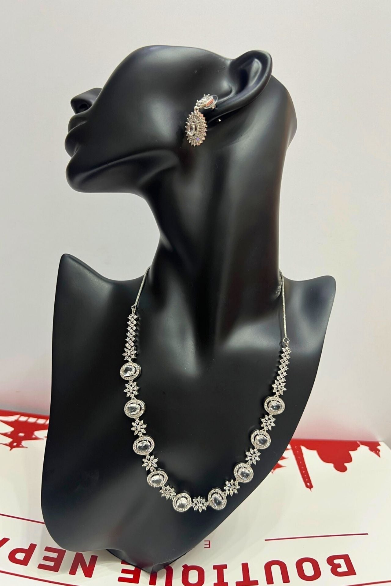 Stone Type: High-quality American Diamonds in mixed cuts, primarily oval.