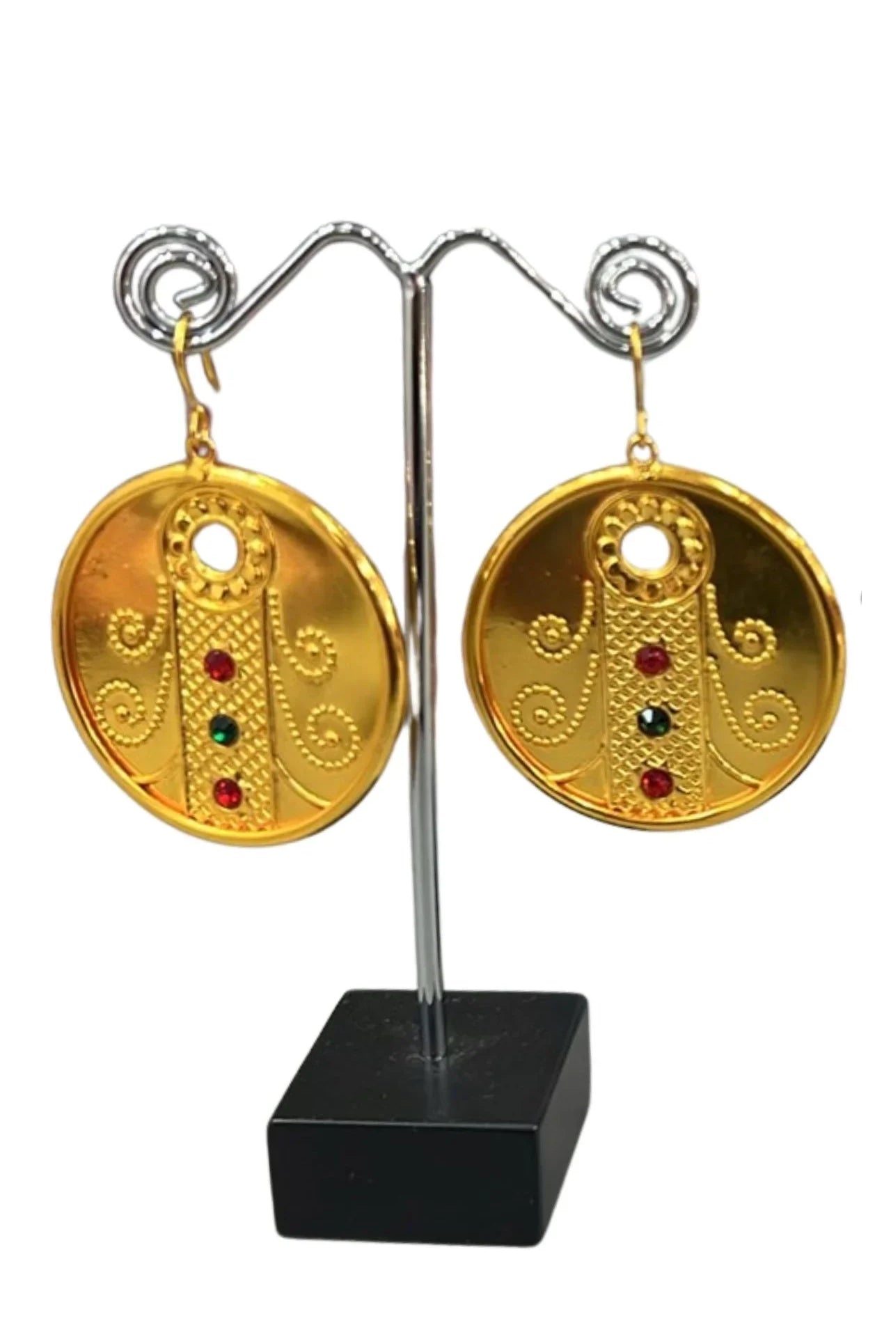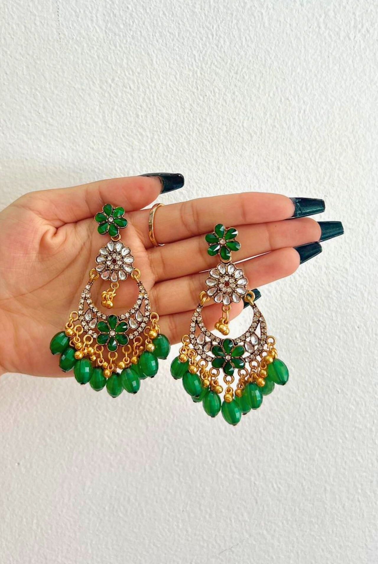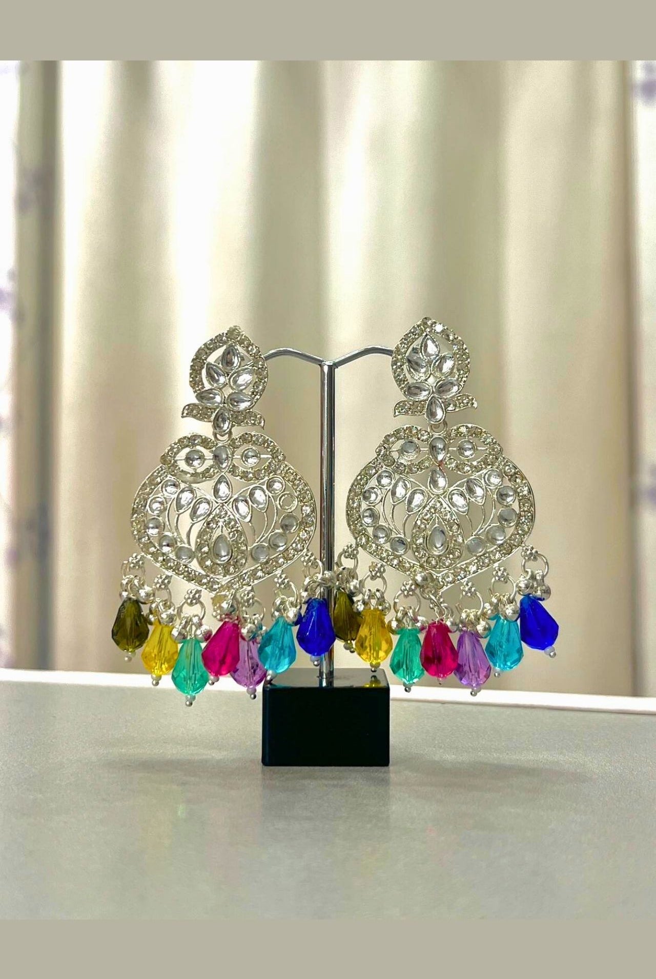 Jhumka is a style of earrings worn by women of the Indian subcontinent. It is a type of dangling earring with a pendant or tassel at the bottom. Jhumka is traditionally made from gold, silver, or brass and worn in pairs. They are often decorated with gemstones and pearls.