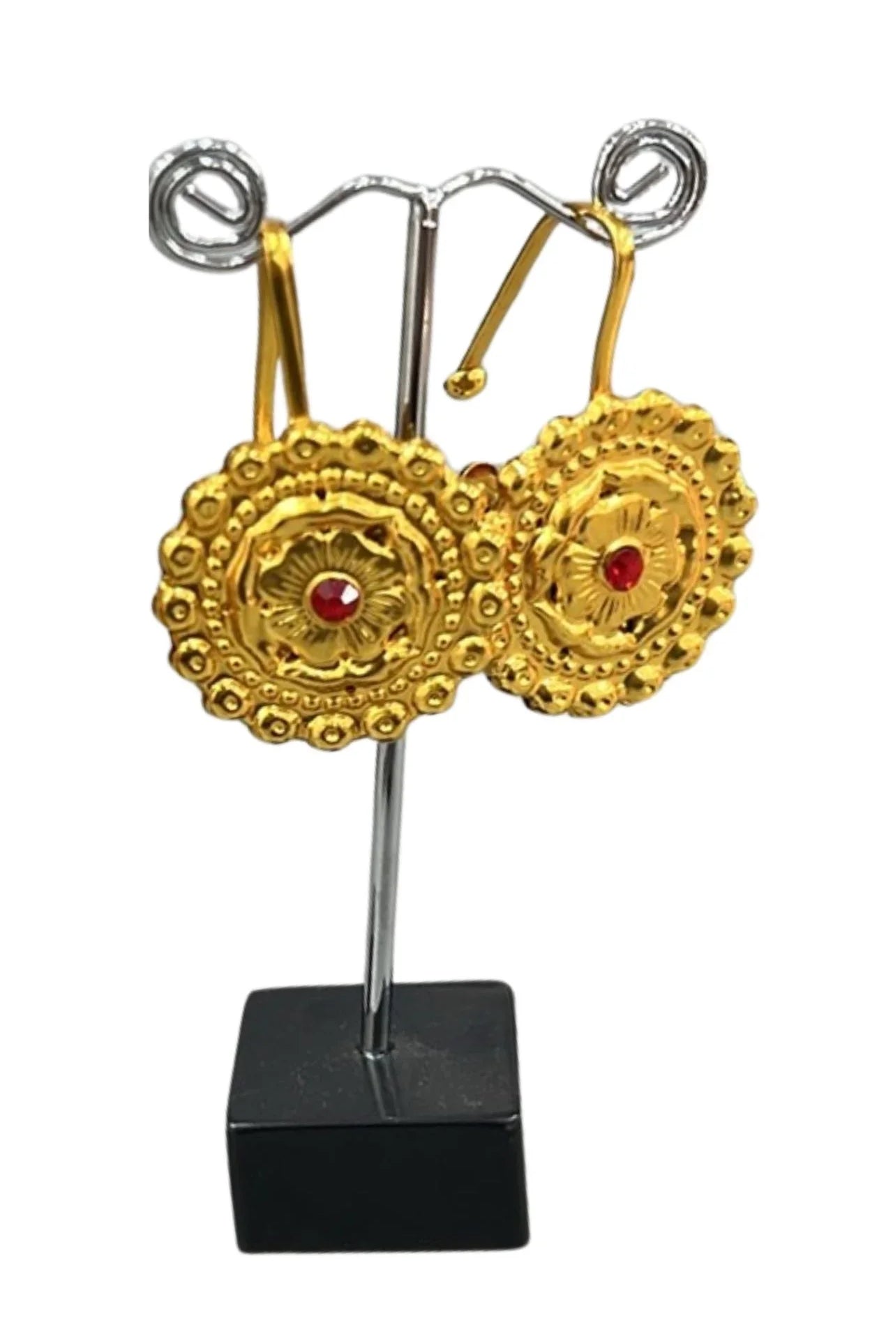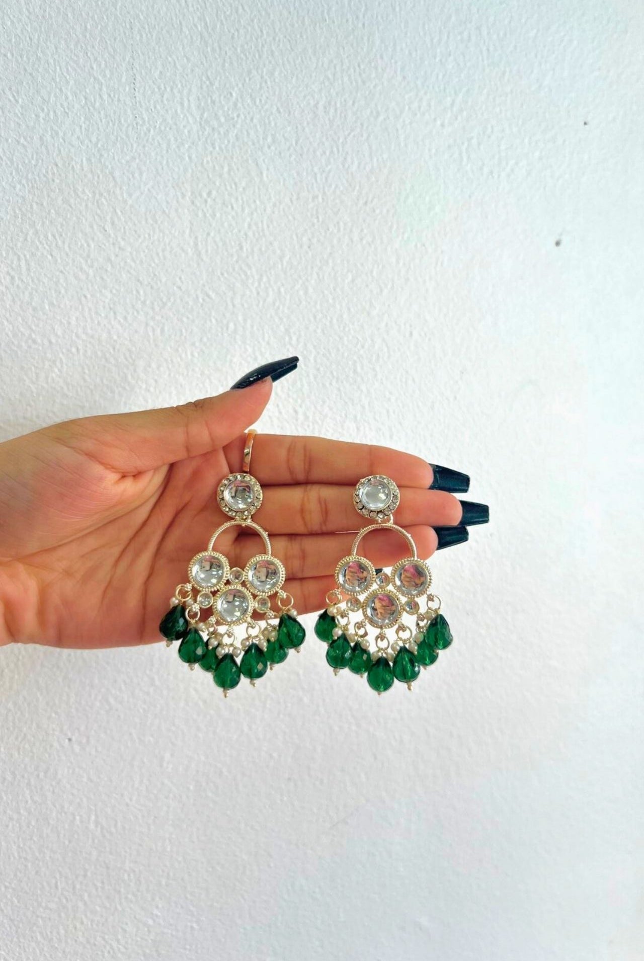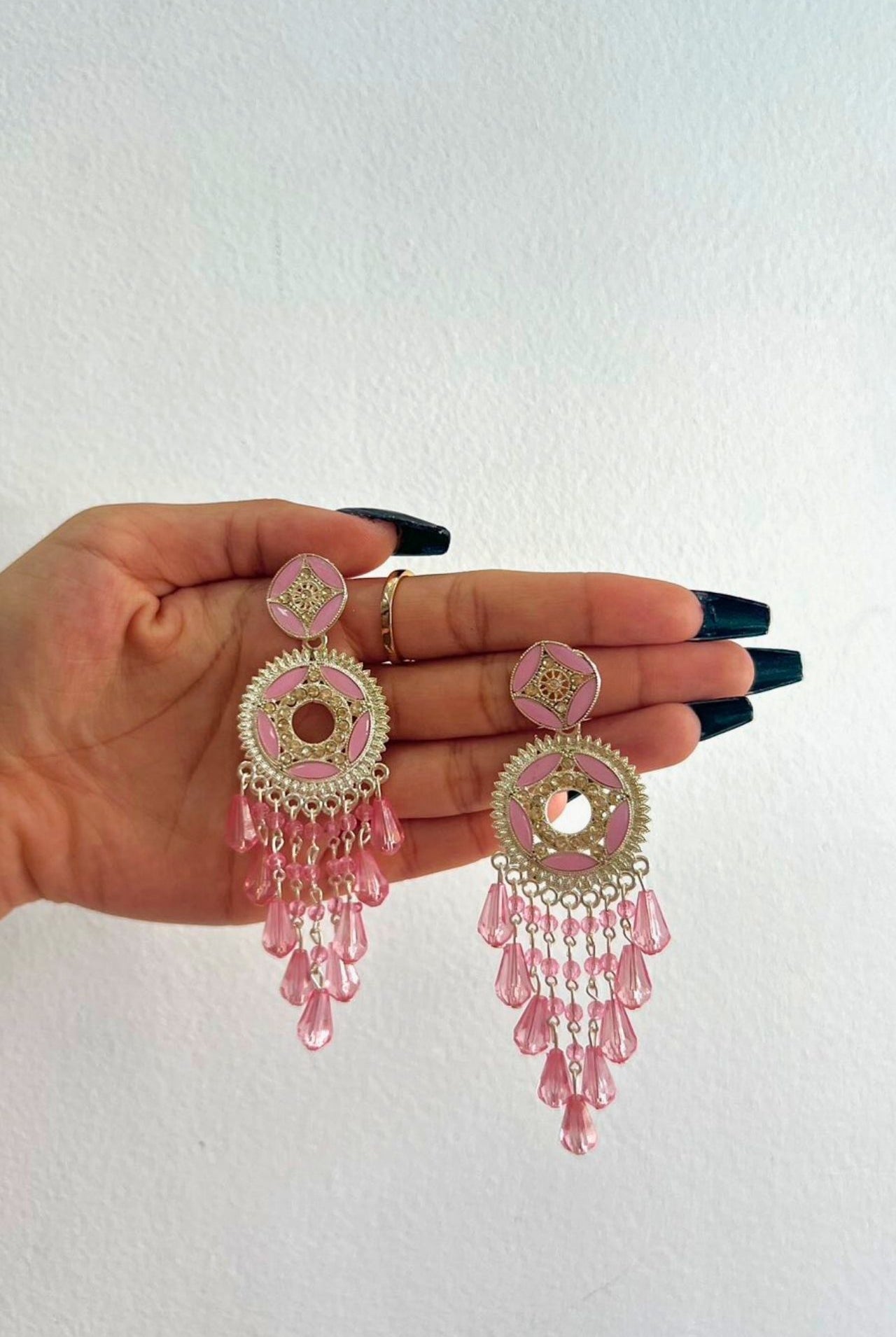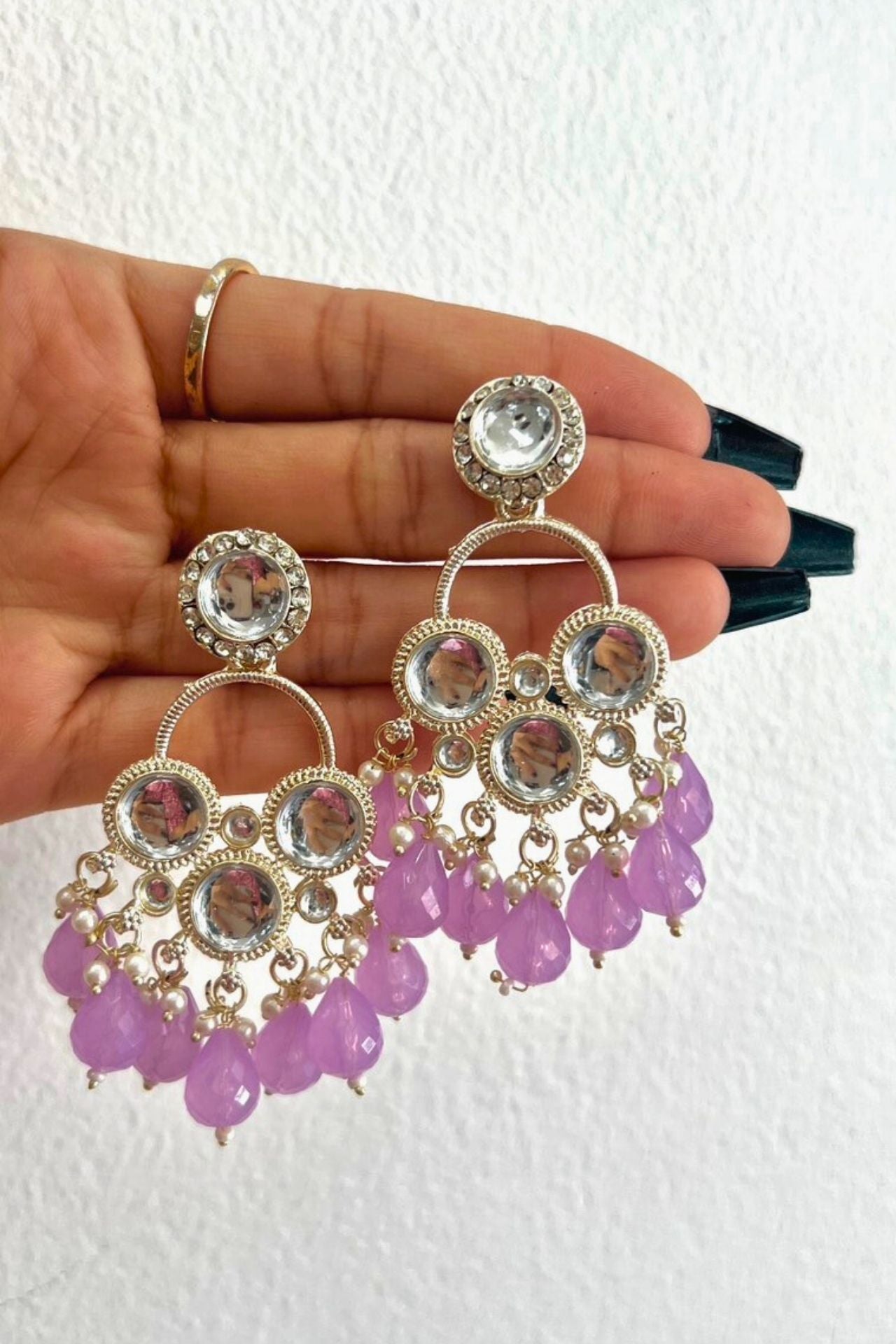 Jhumka is a style of earrings worn by women of the Indian subcontinent. It is a type of dangling earring with a pendant or tassel at the bottom. Jhumka is traditionally made from gold, silver, or brass and worn in pairs. They are often decorated with gemstones and pearls.