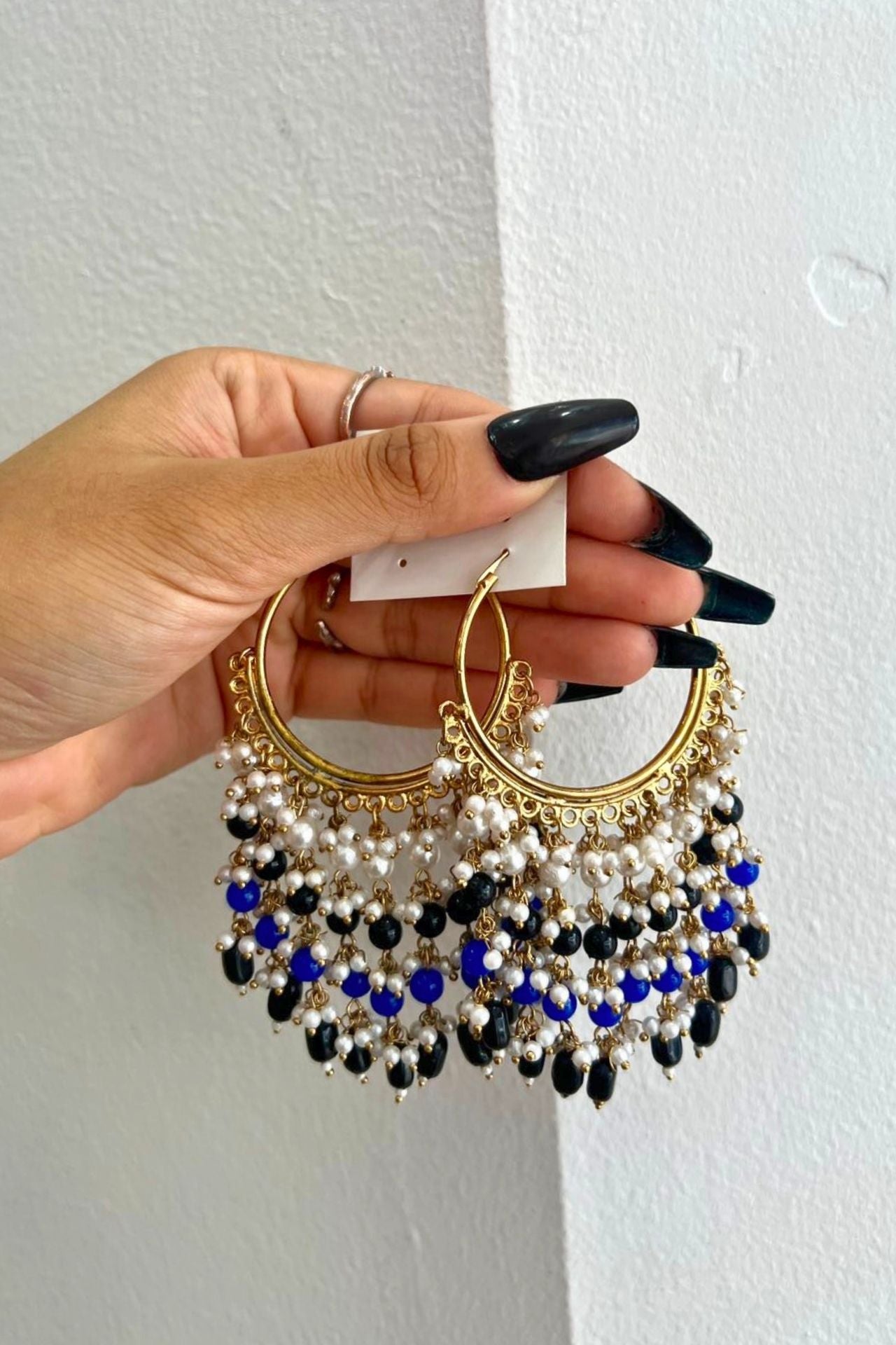 Jhumka Earrings With Gold Hoop Blue Black Beaded