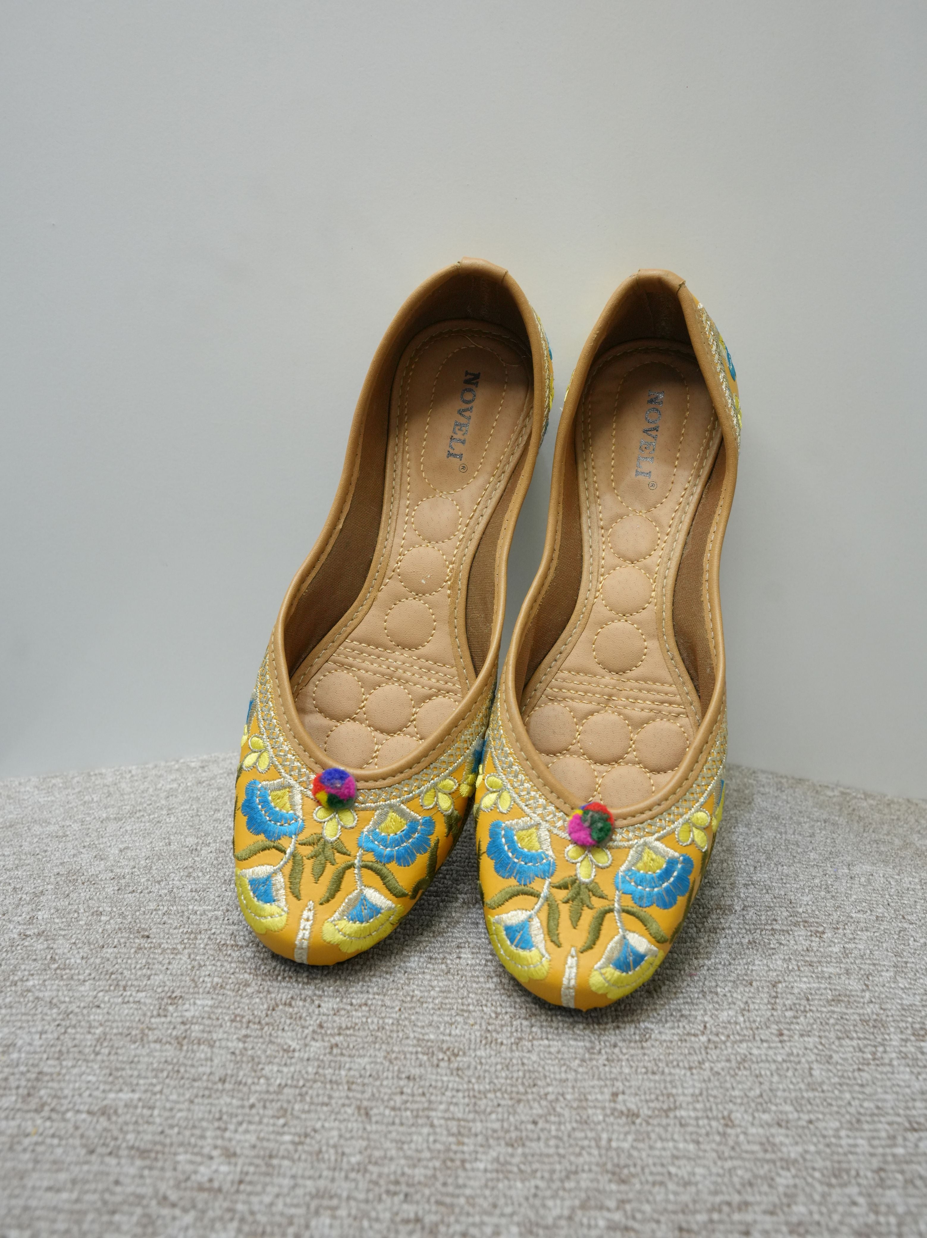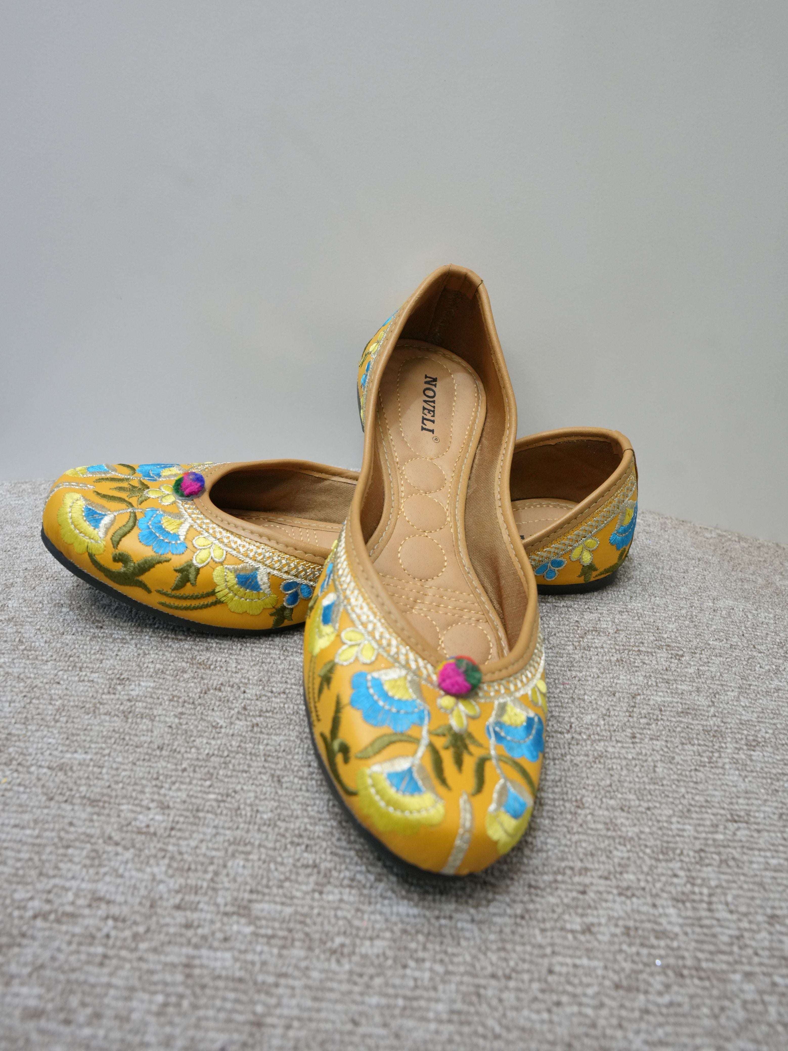Flower Embroidery Jutti In Yellow
