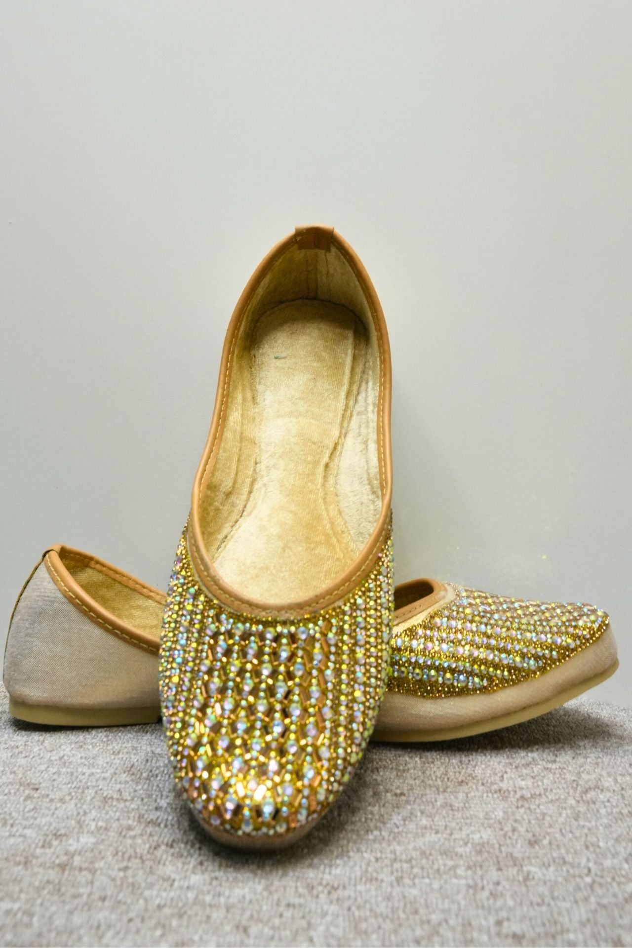 Juttis With Golden Crystal Stone