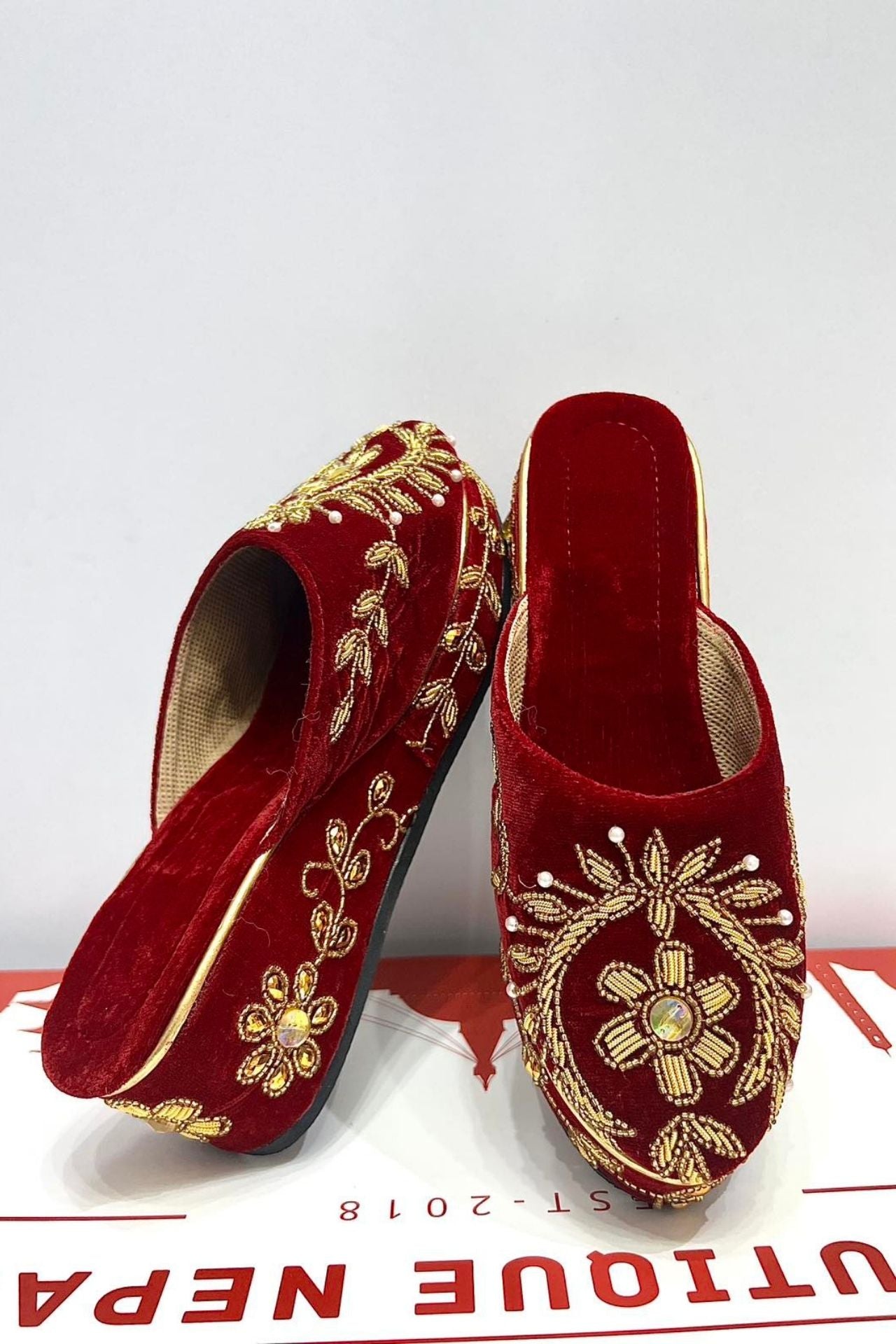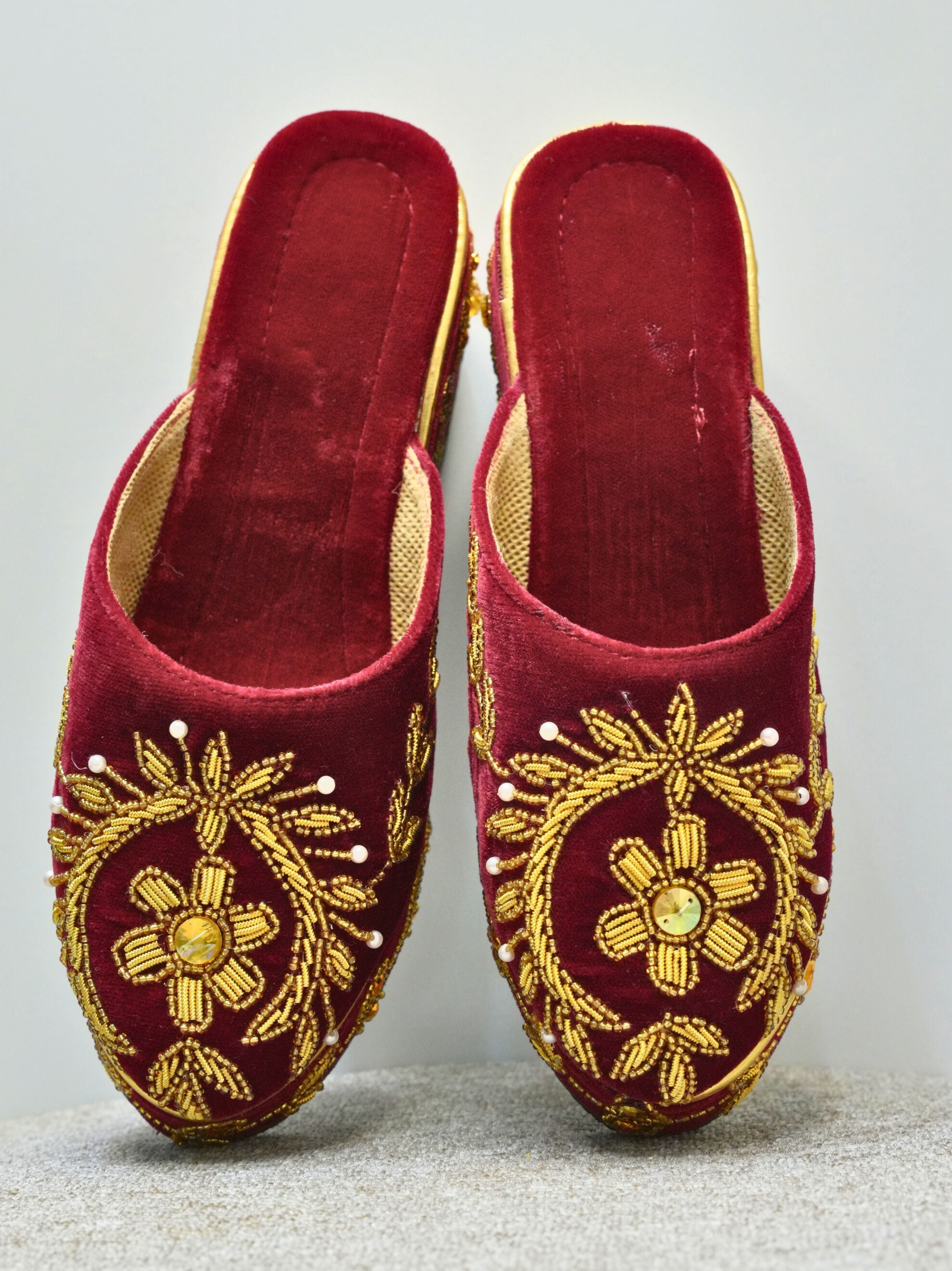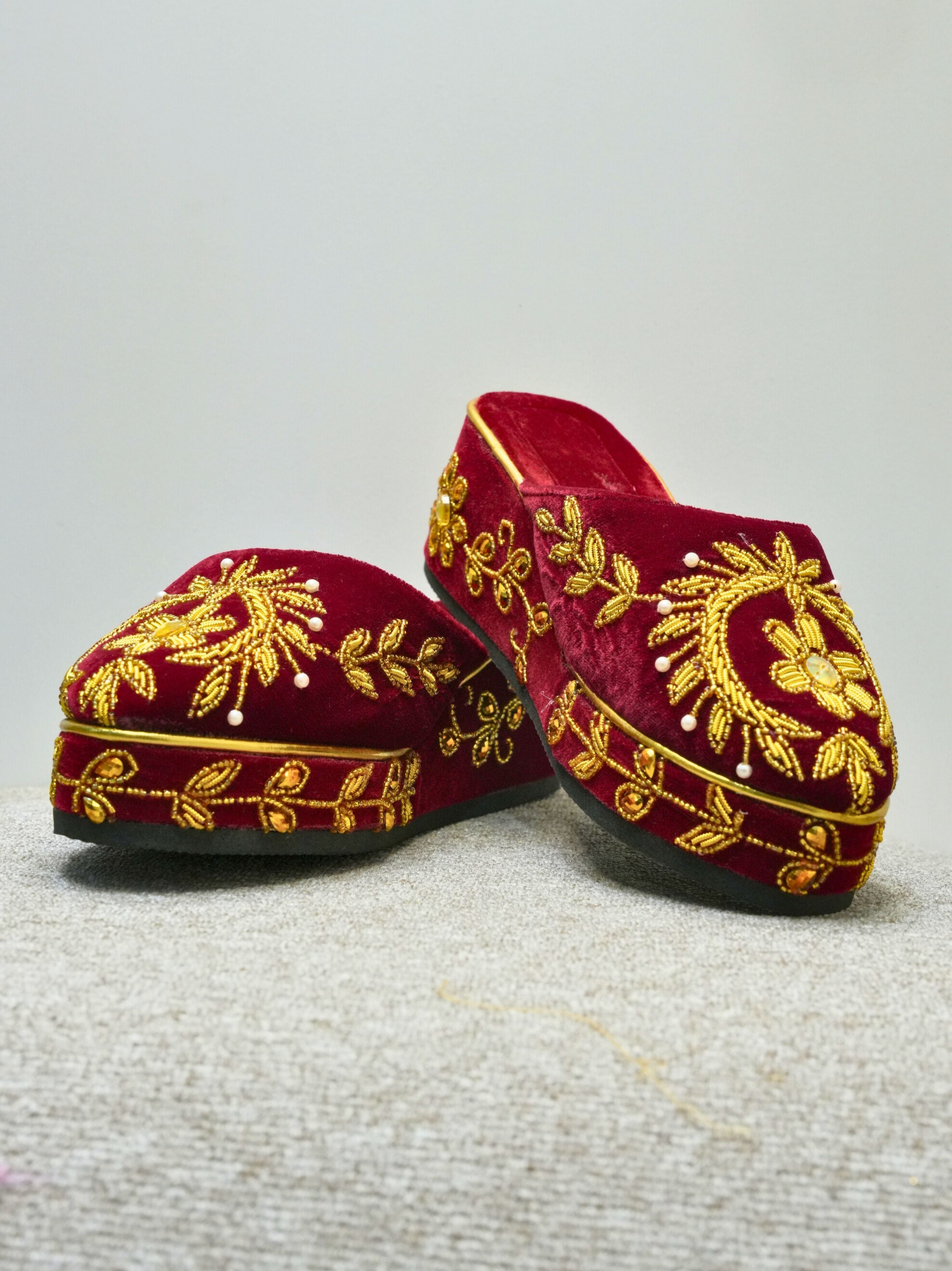 Red Velvet Zari Work Bridal Women Juttis