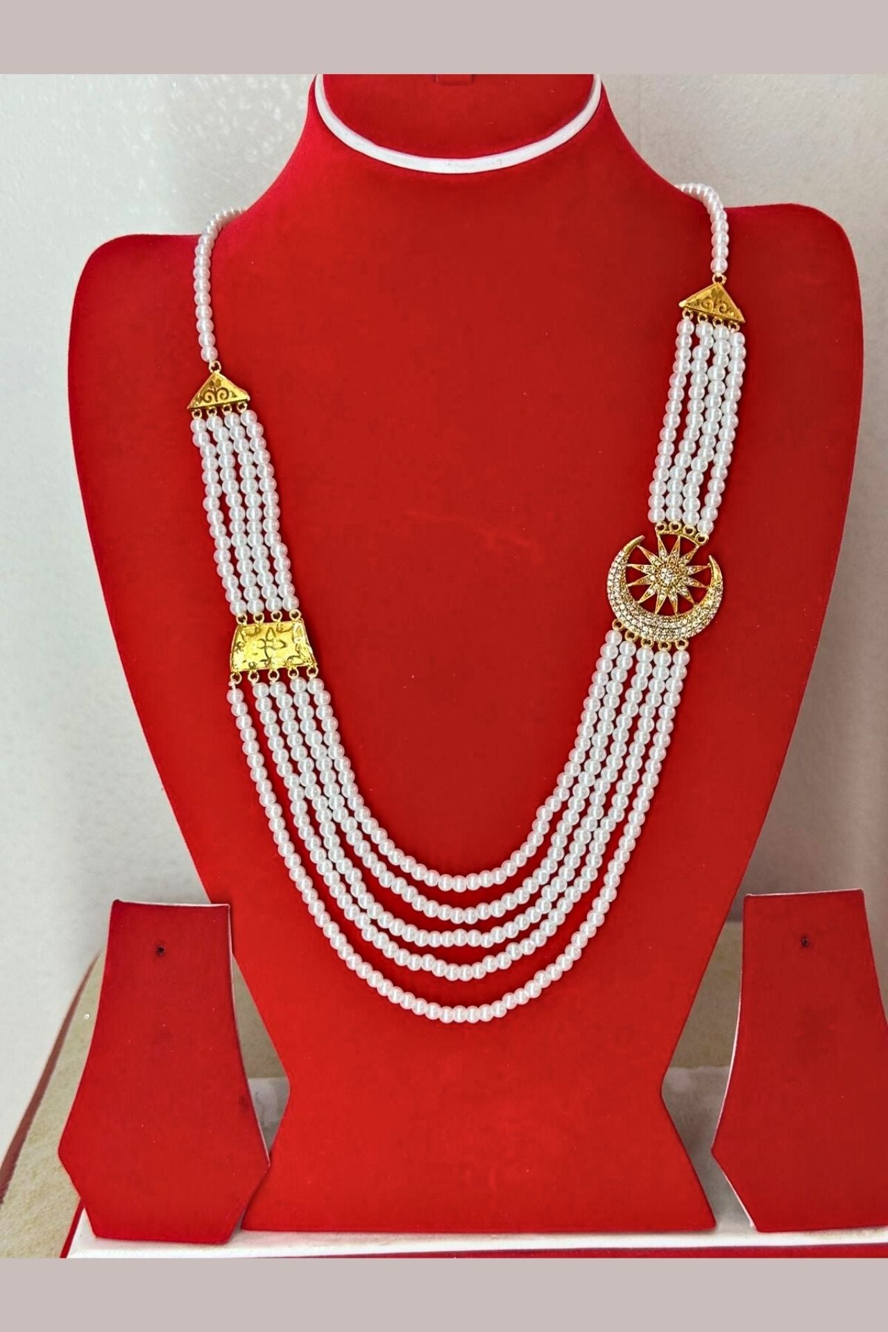 Kids Pearl Mala with Gold-Plated Star & Crescent Moons Pendant