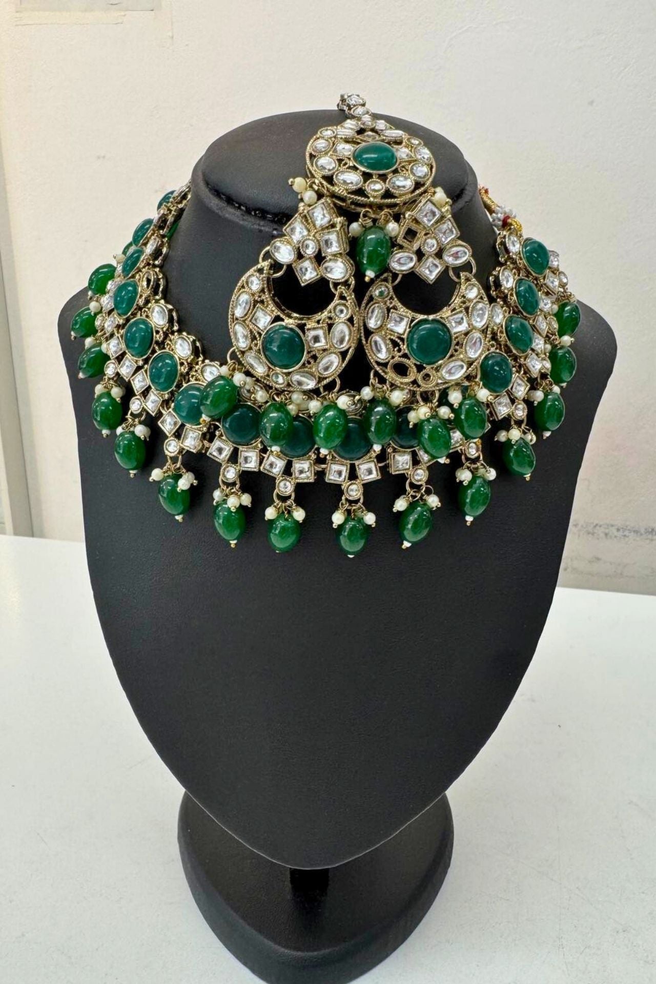 - Design: Traditional Indian Jadau style craftsmanship with a bib-like choker design.