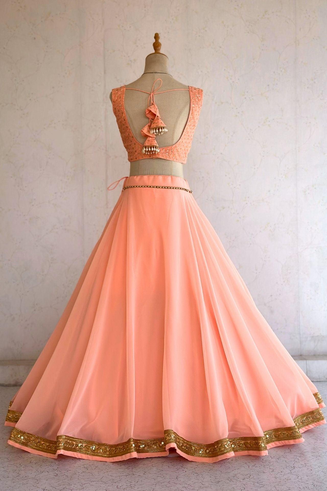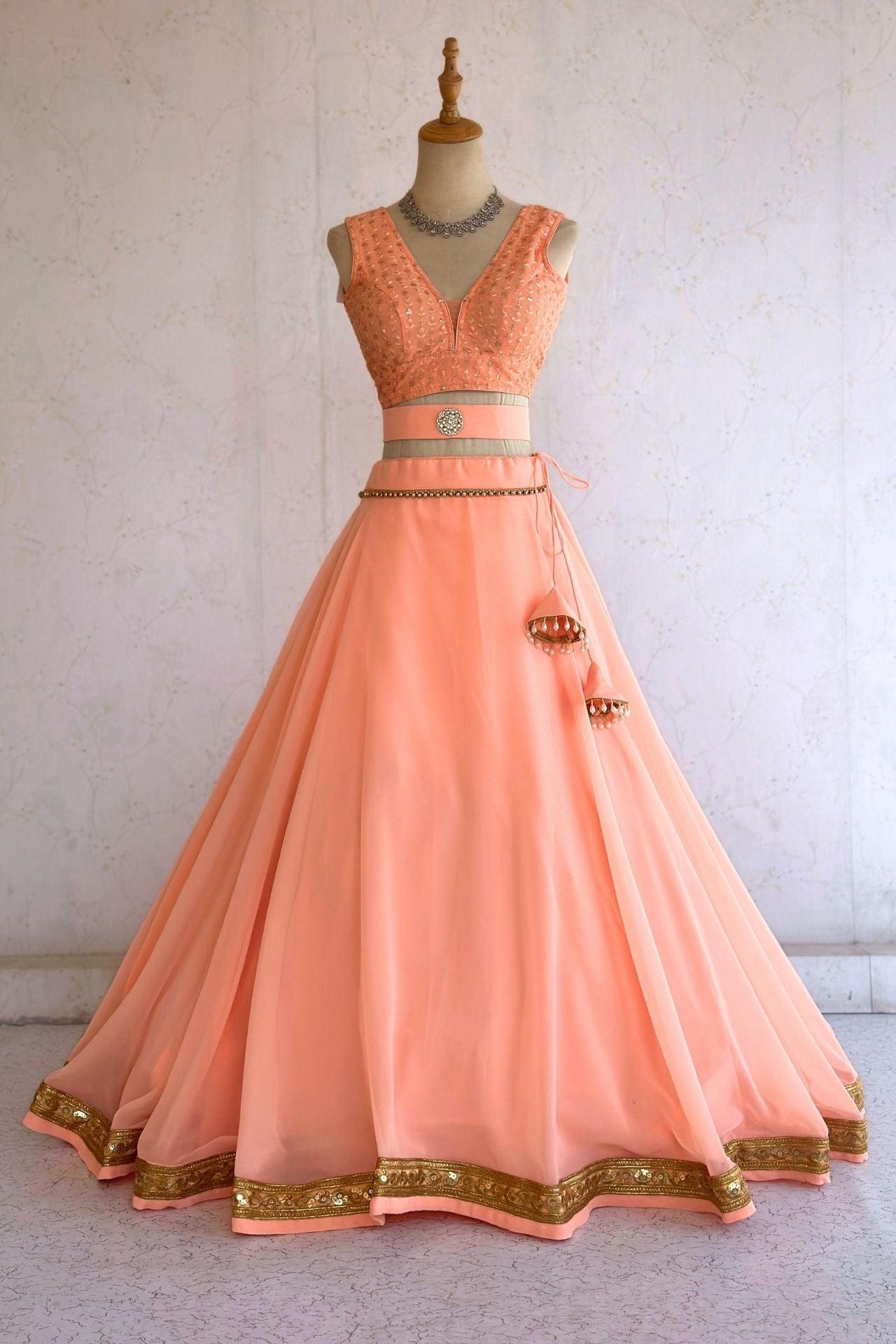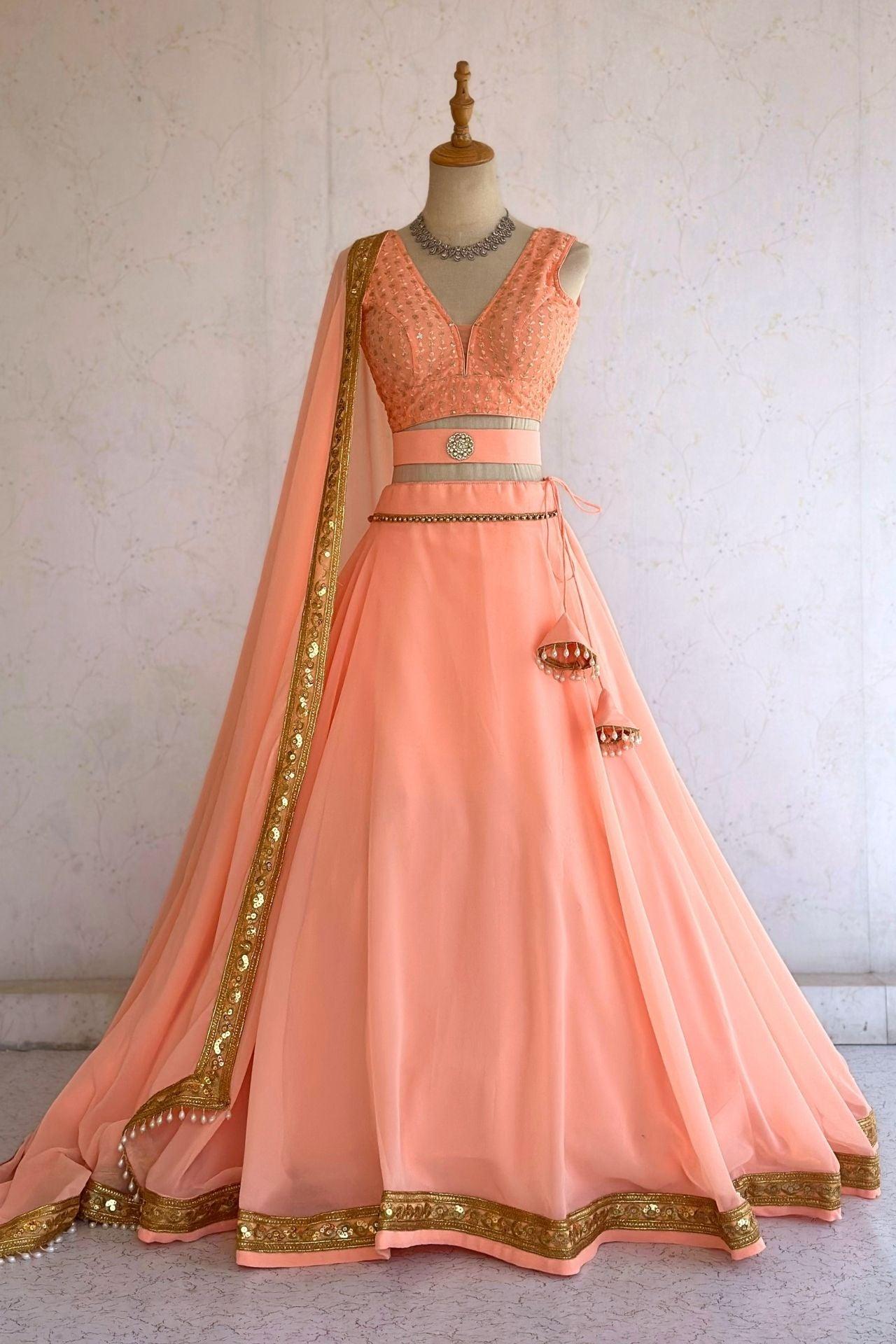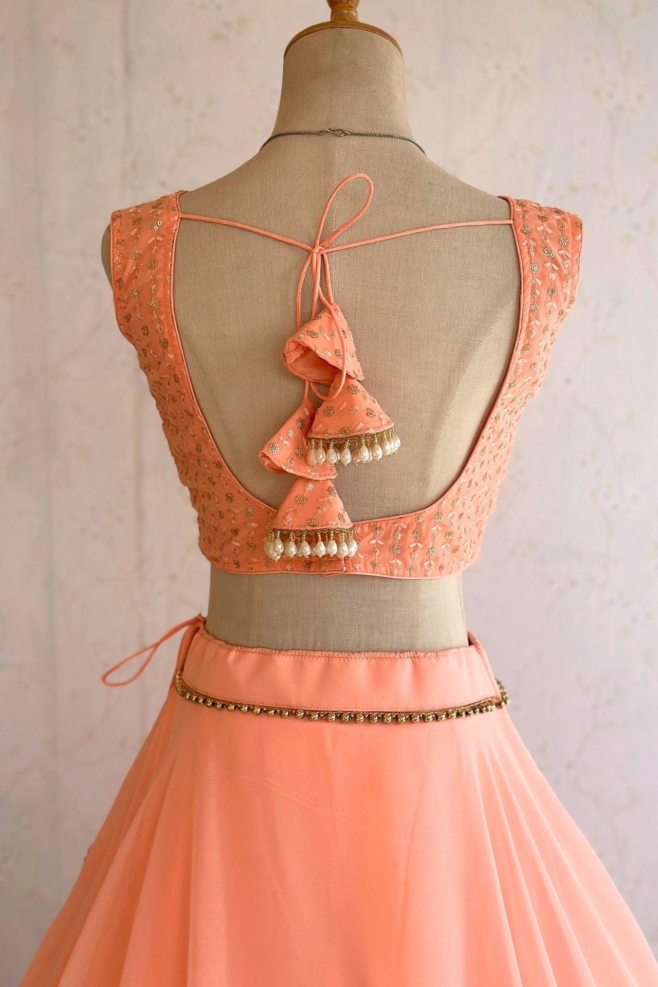 Peach Sleeveless Lehenga Choli Set