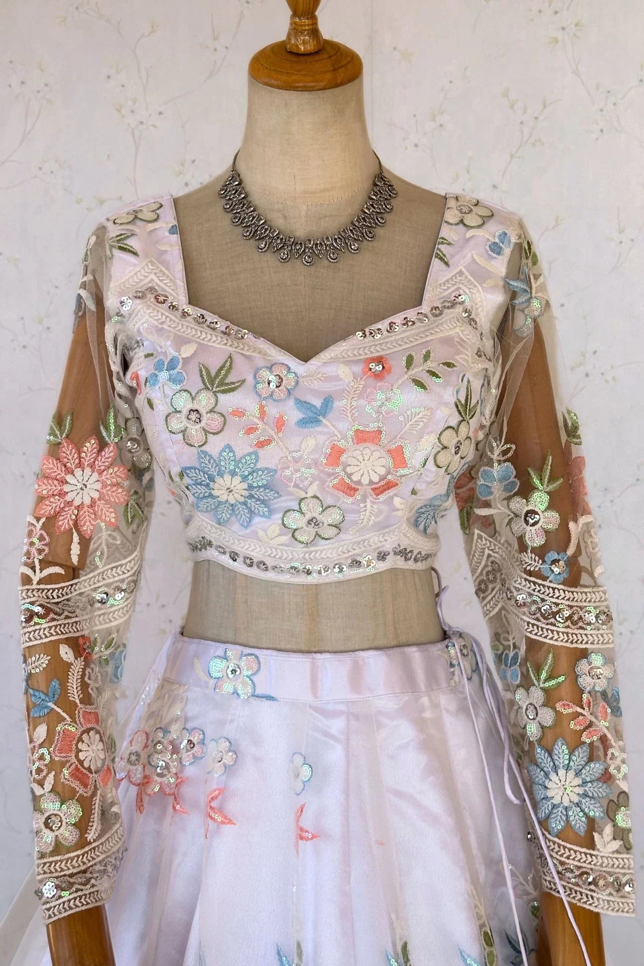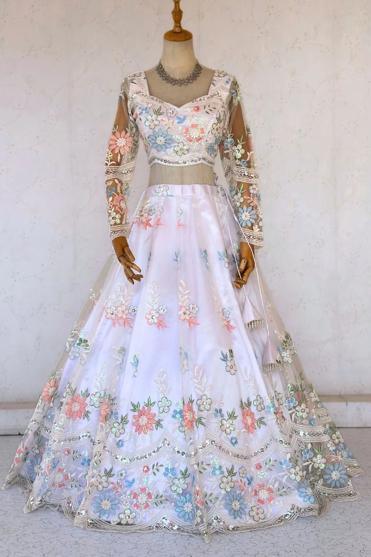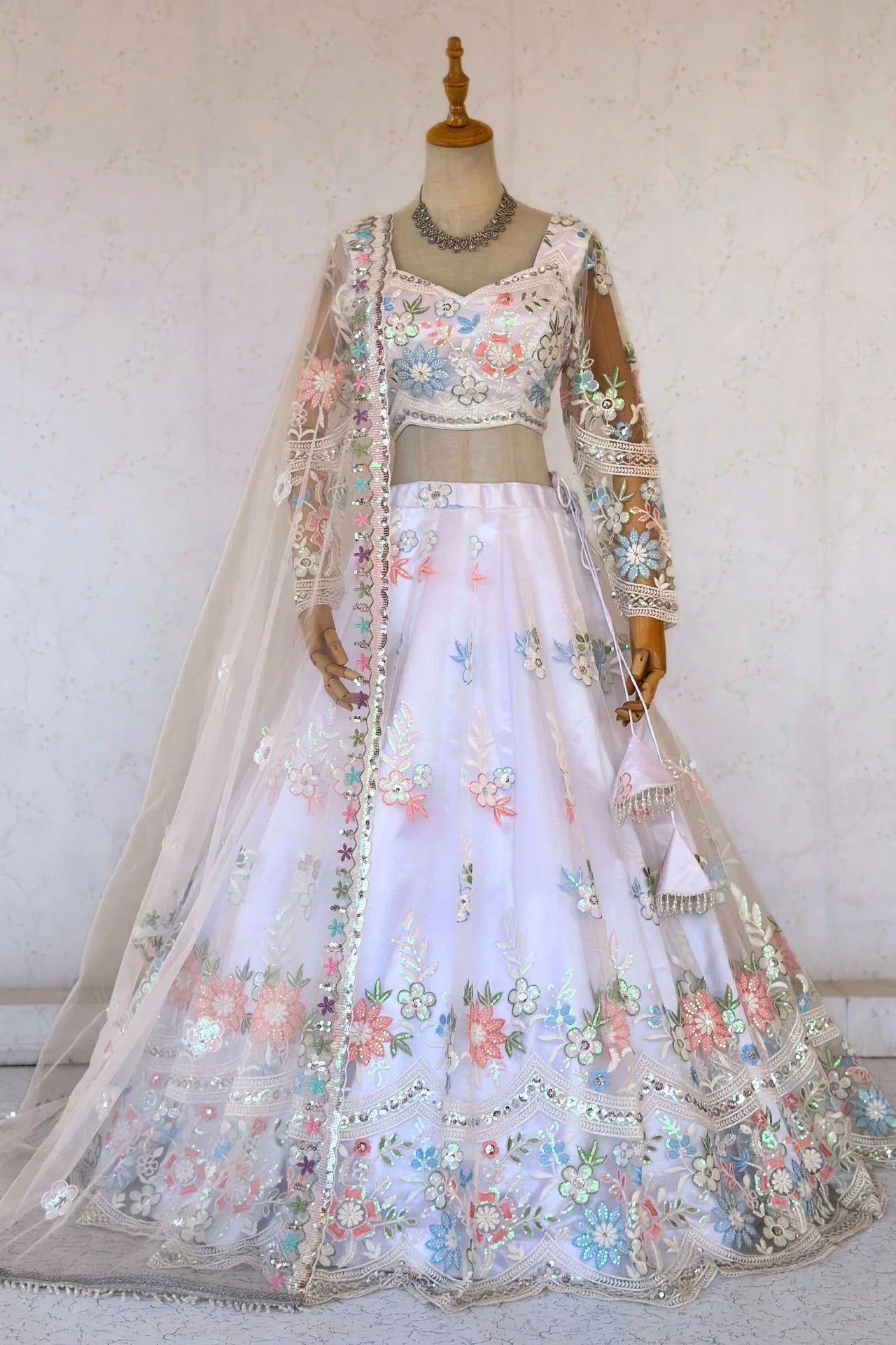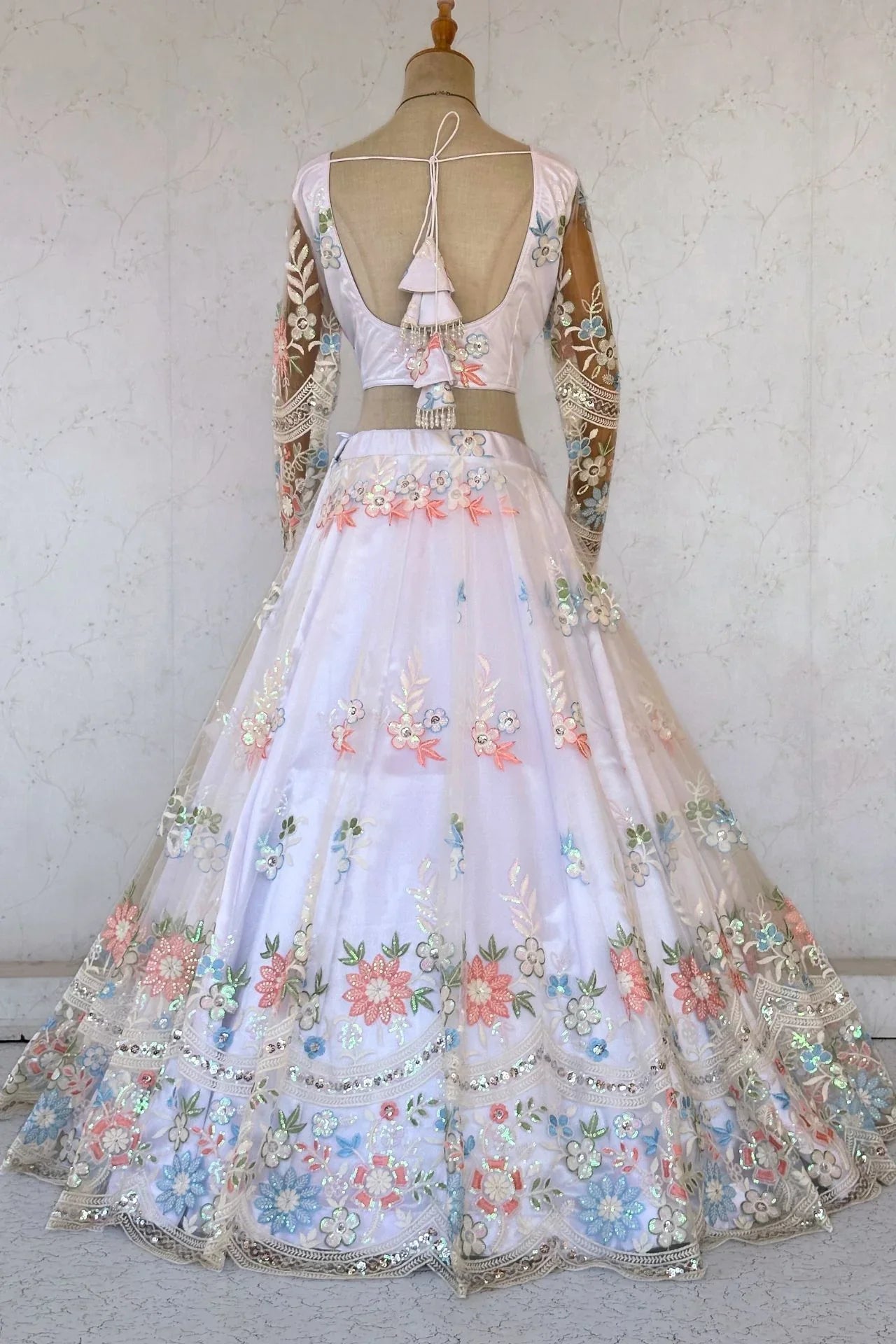 White Floral Thread Work Lehenga Choli Set