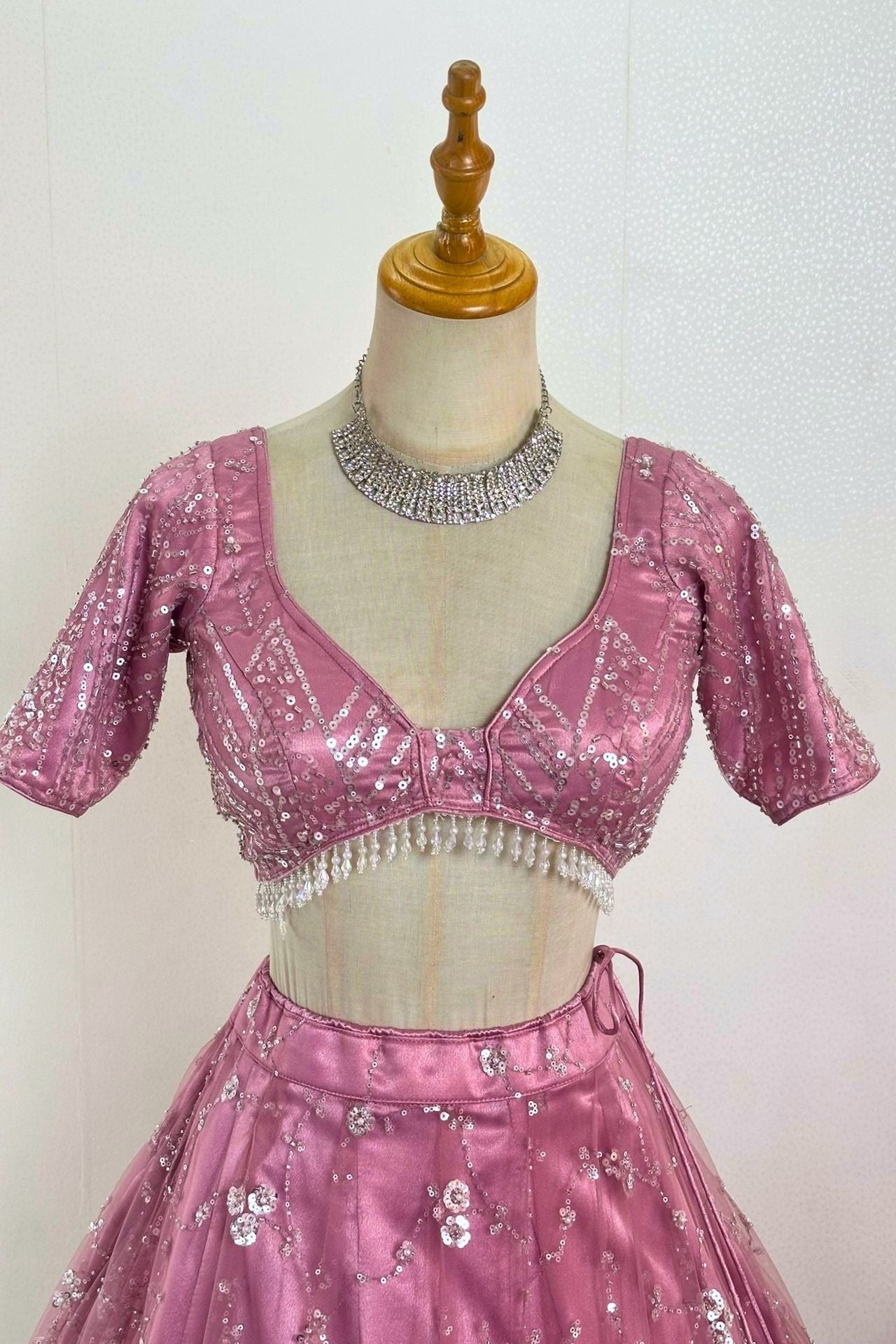 Pink beads & sequins work Lehenga Set perfect for engagement or reception party