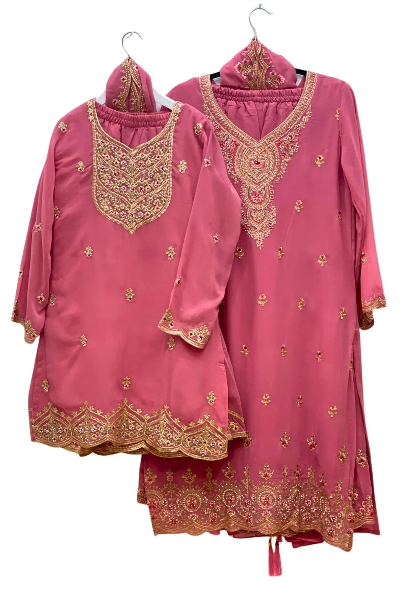 Elegant Rose Pink Mother & Daughter Kurta Set