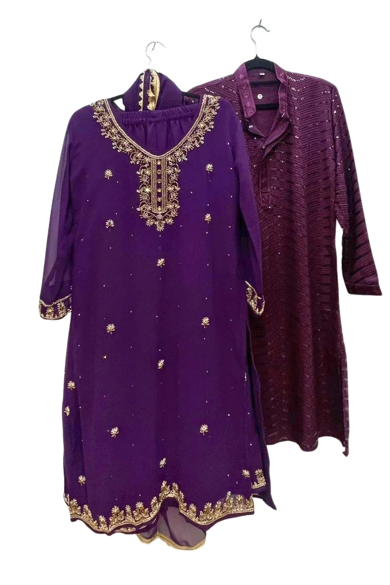 Royal Purple & Maroon Sequined Couple's Kurta Set