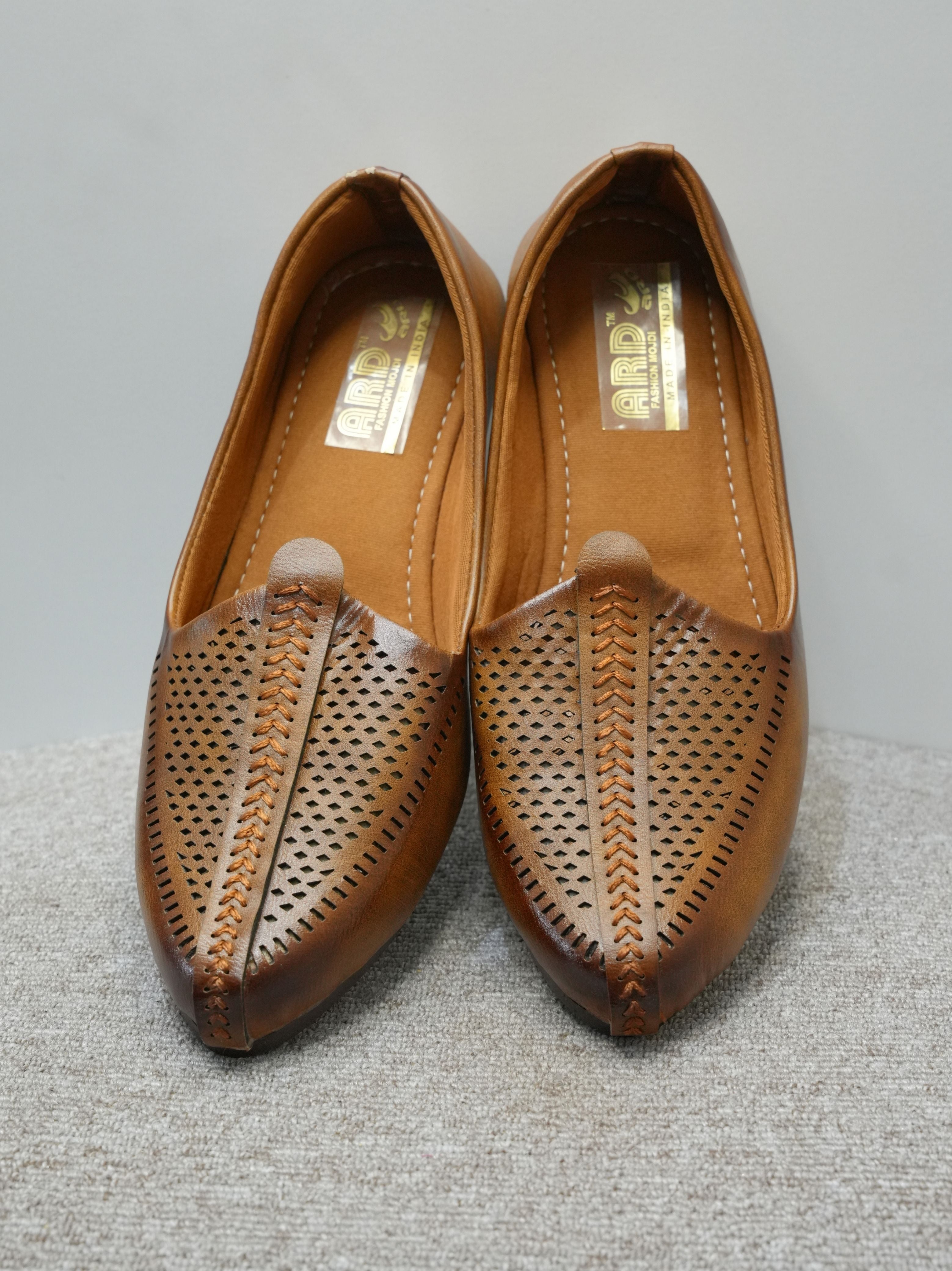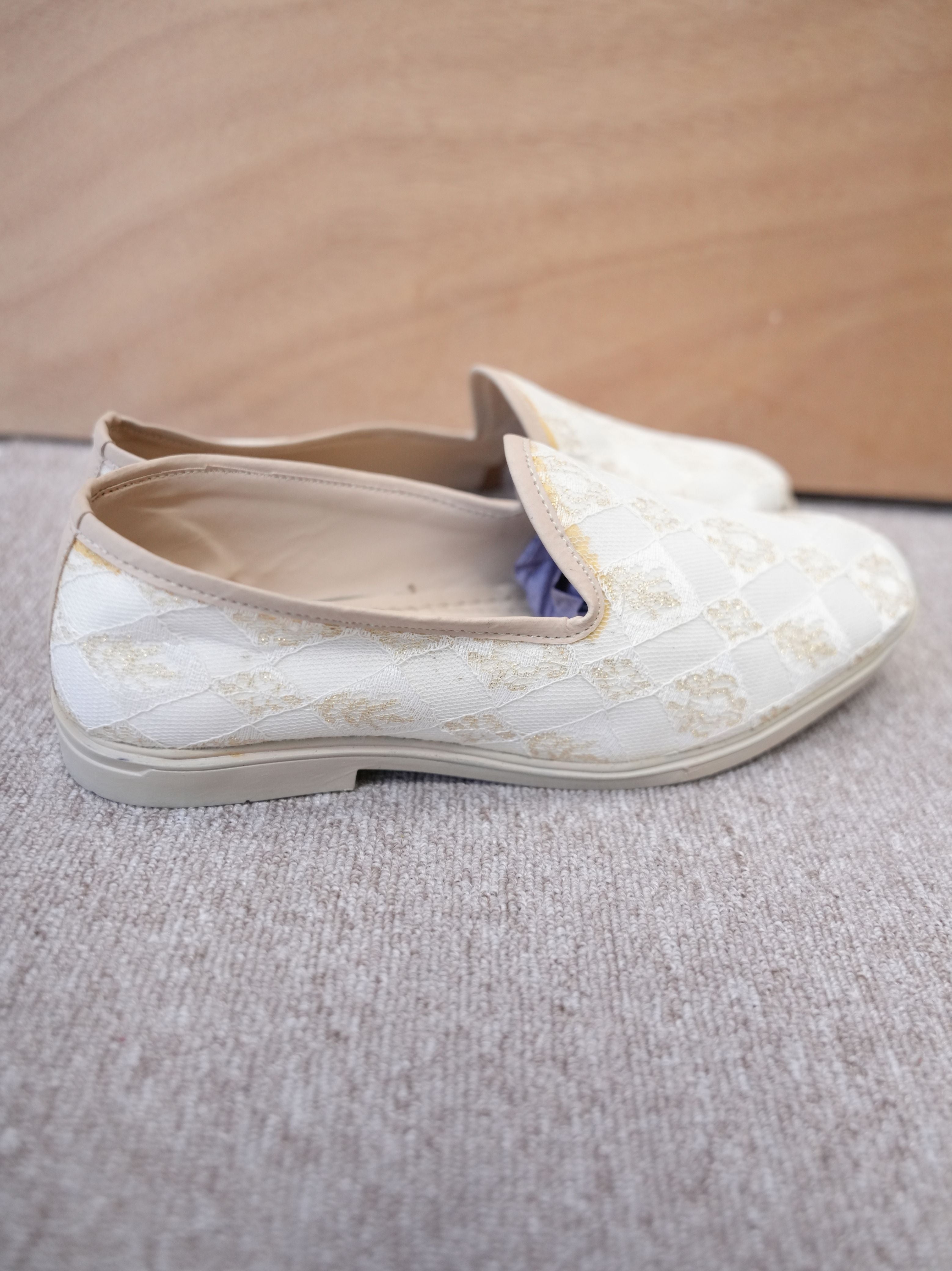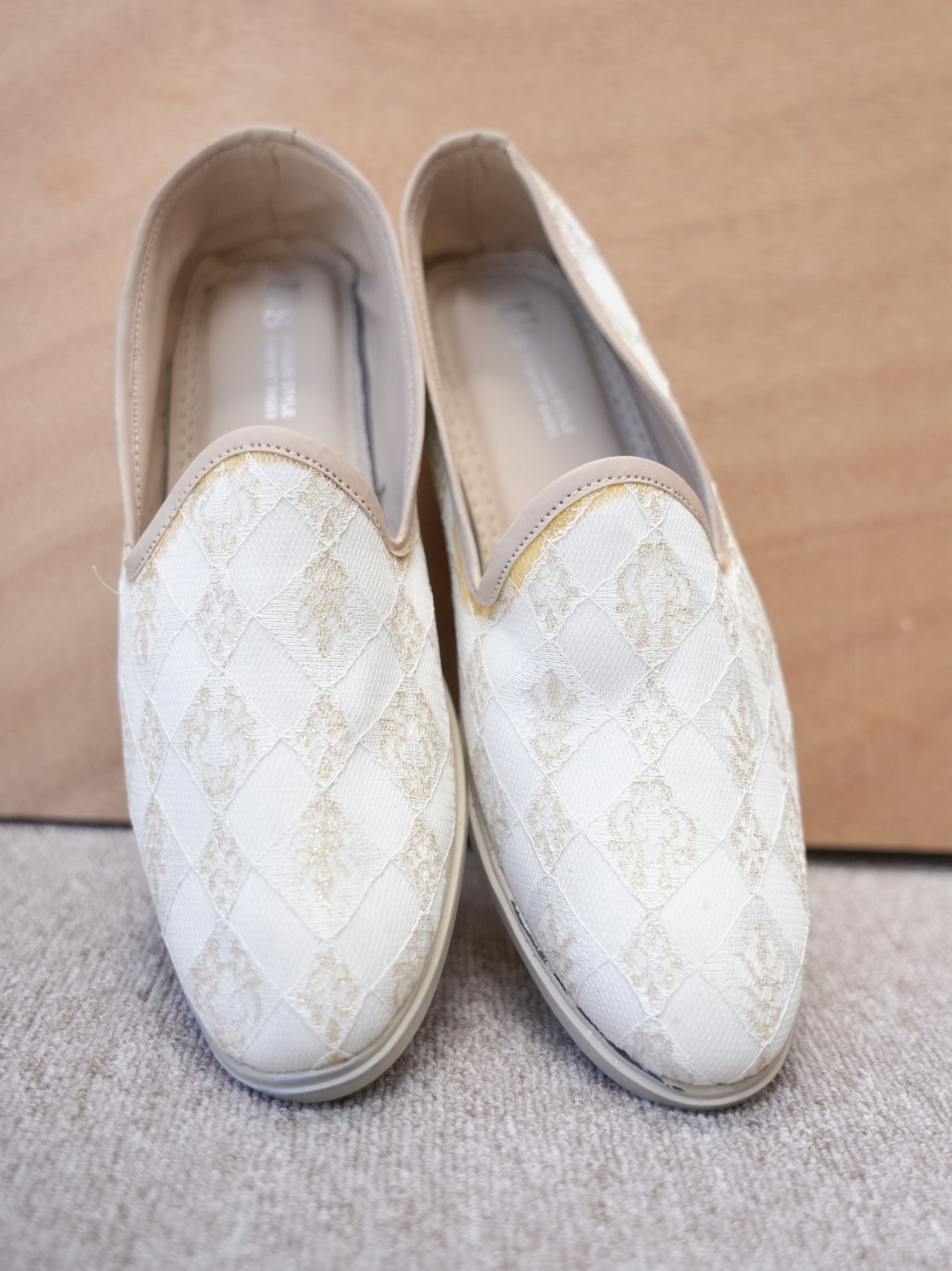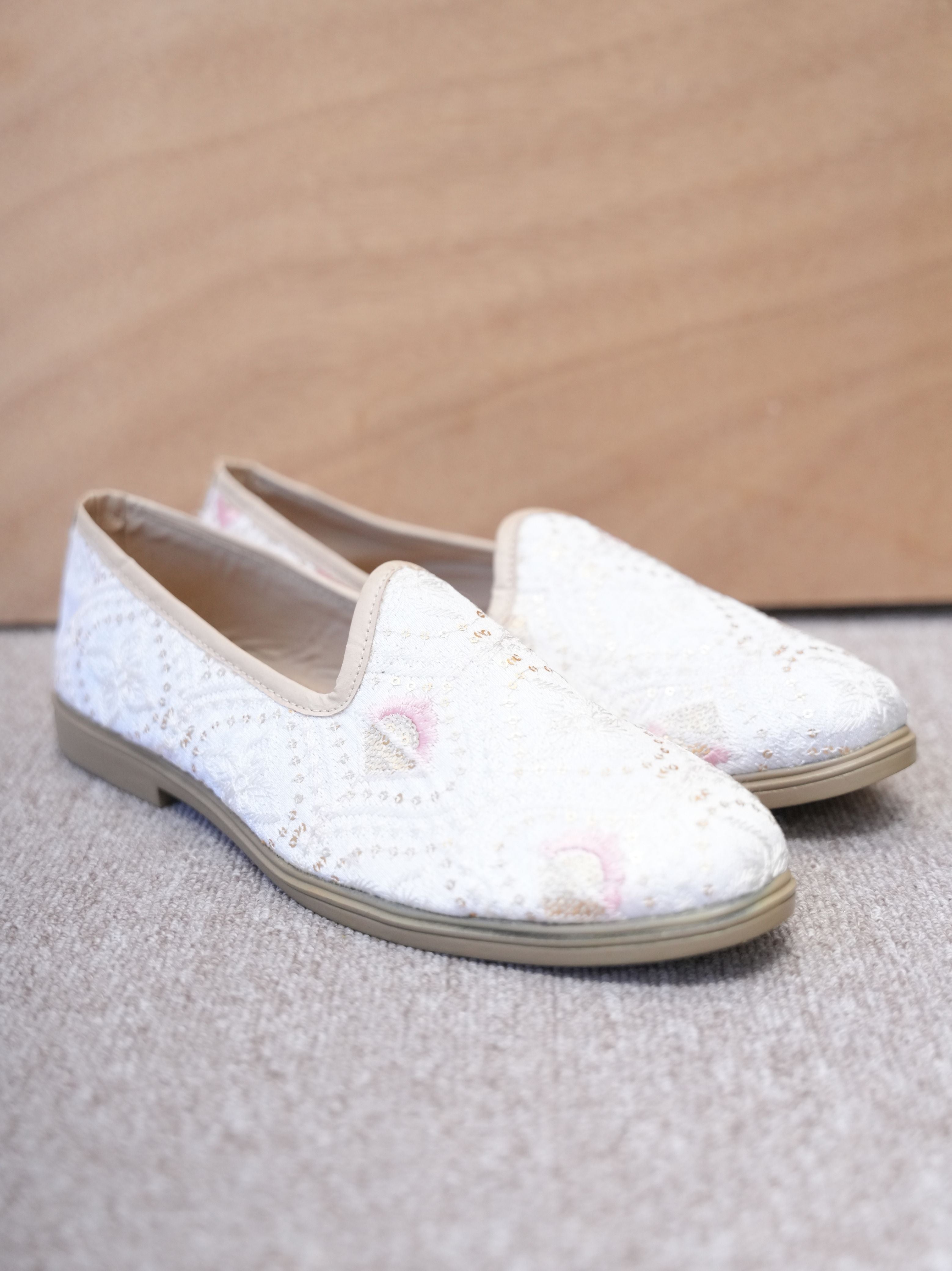 Cream Ethnic Mens Jooti With Flower Embroidered