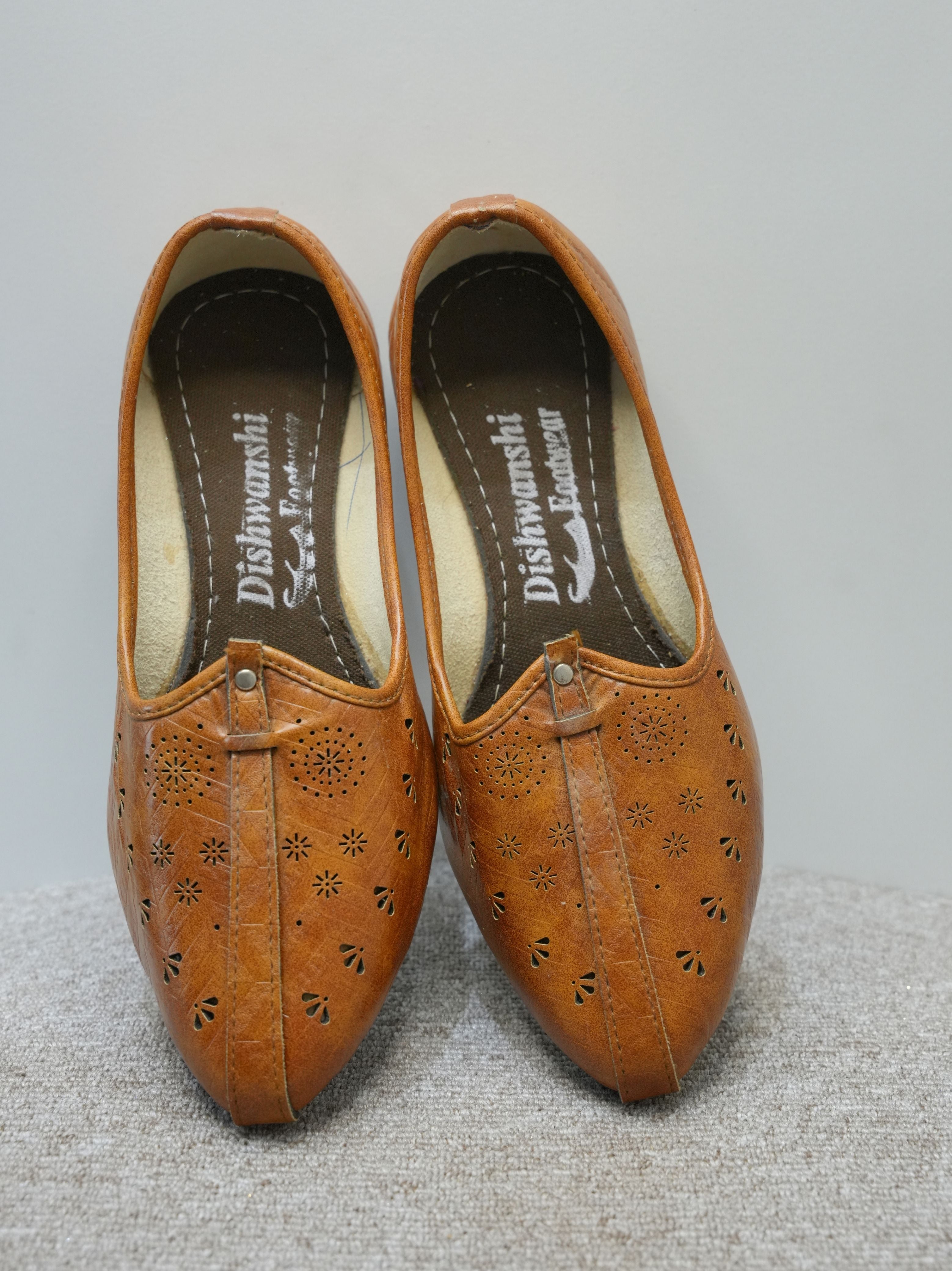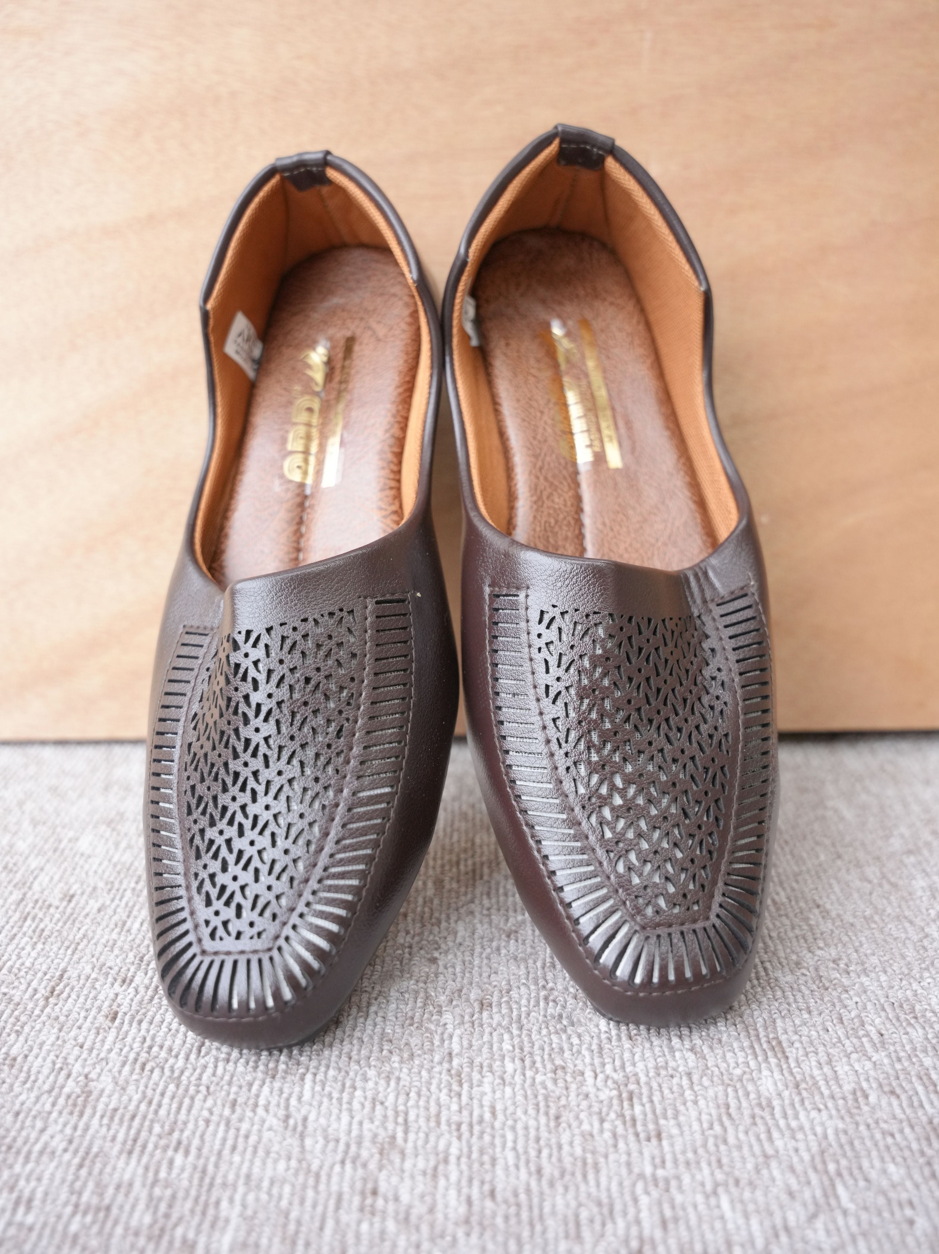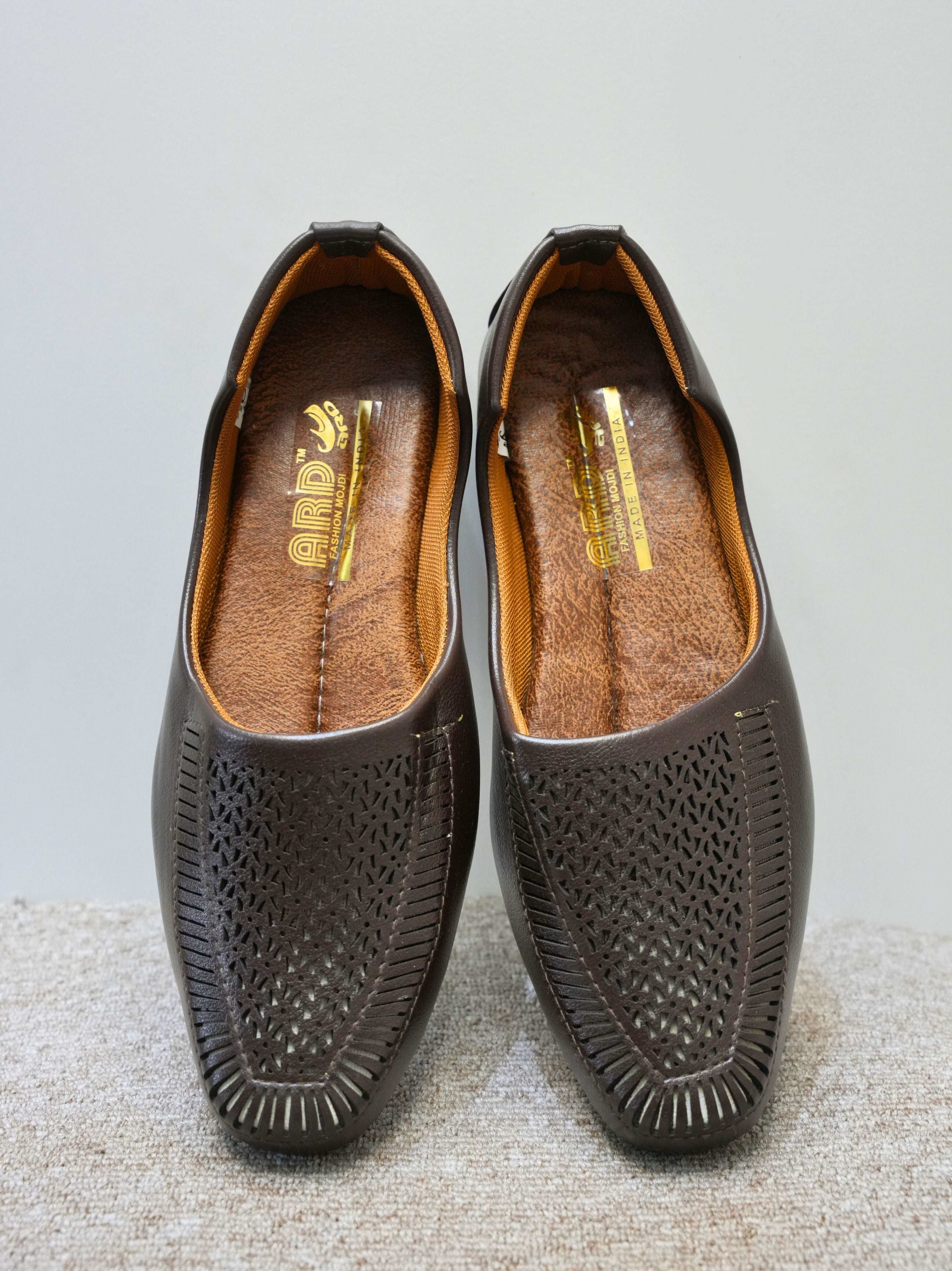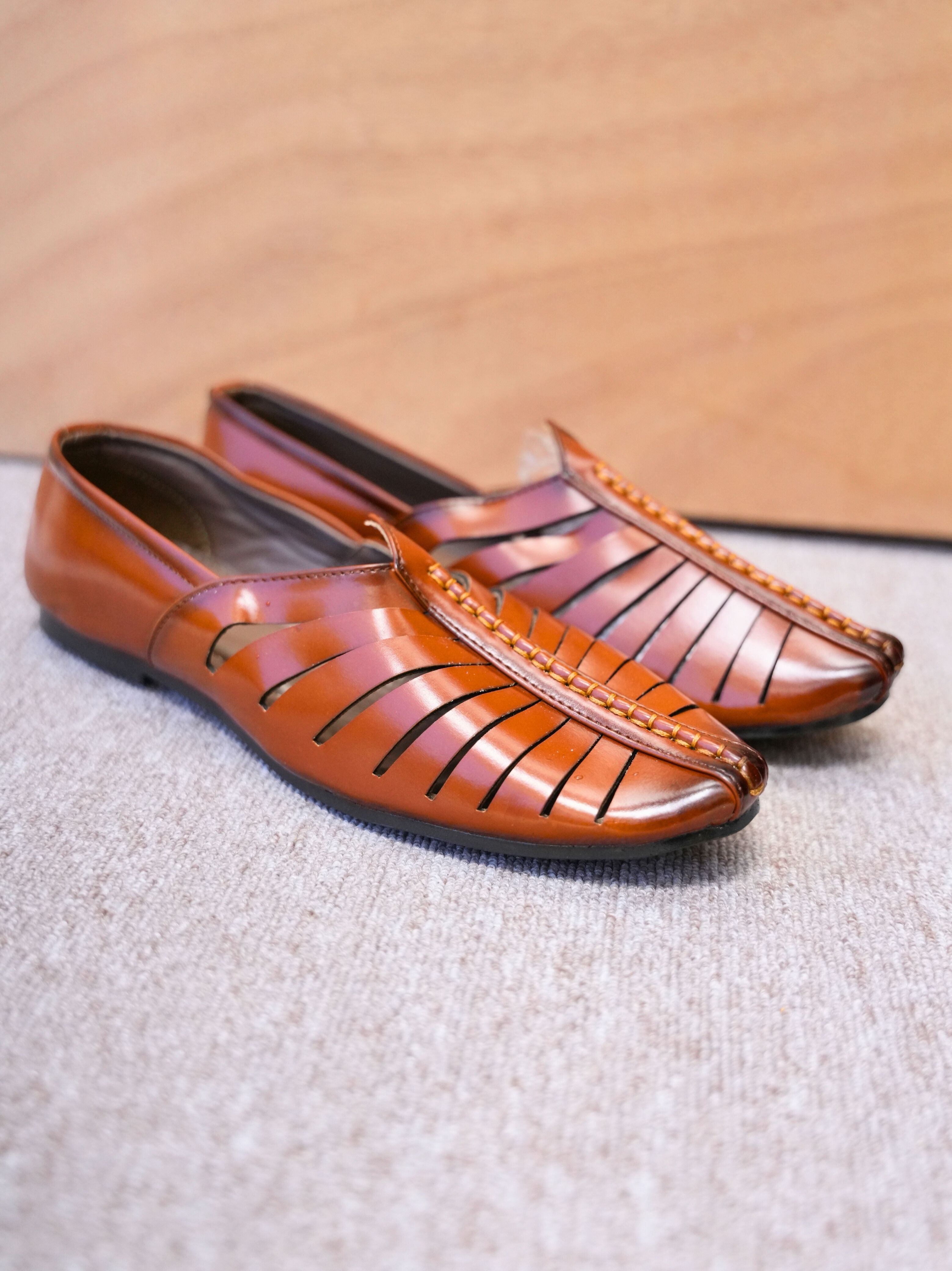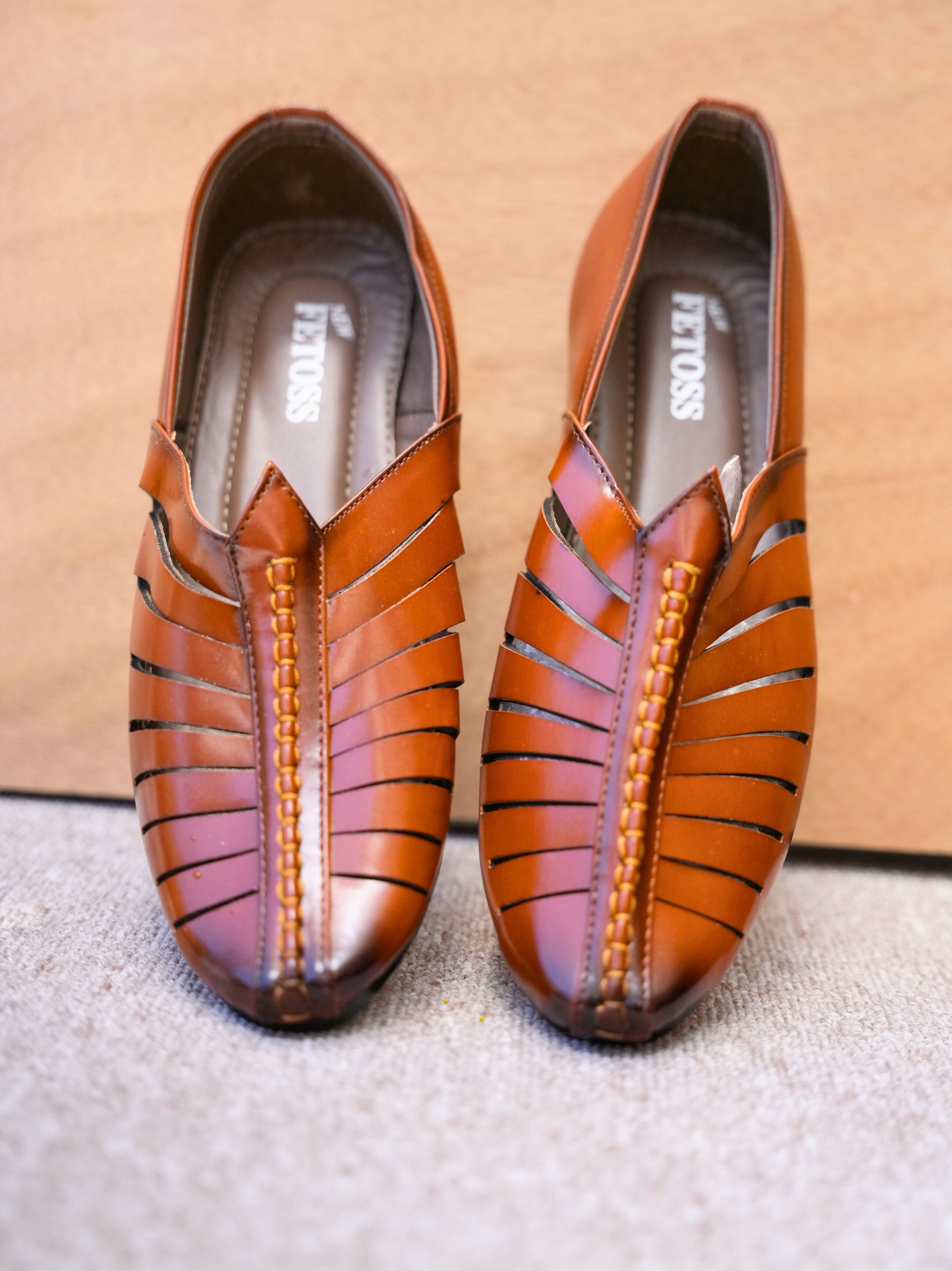 Gold Ethnic Mens Jooti With Flower Embroidered