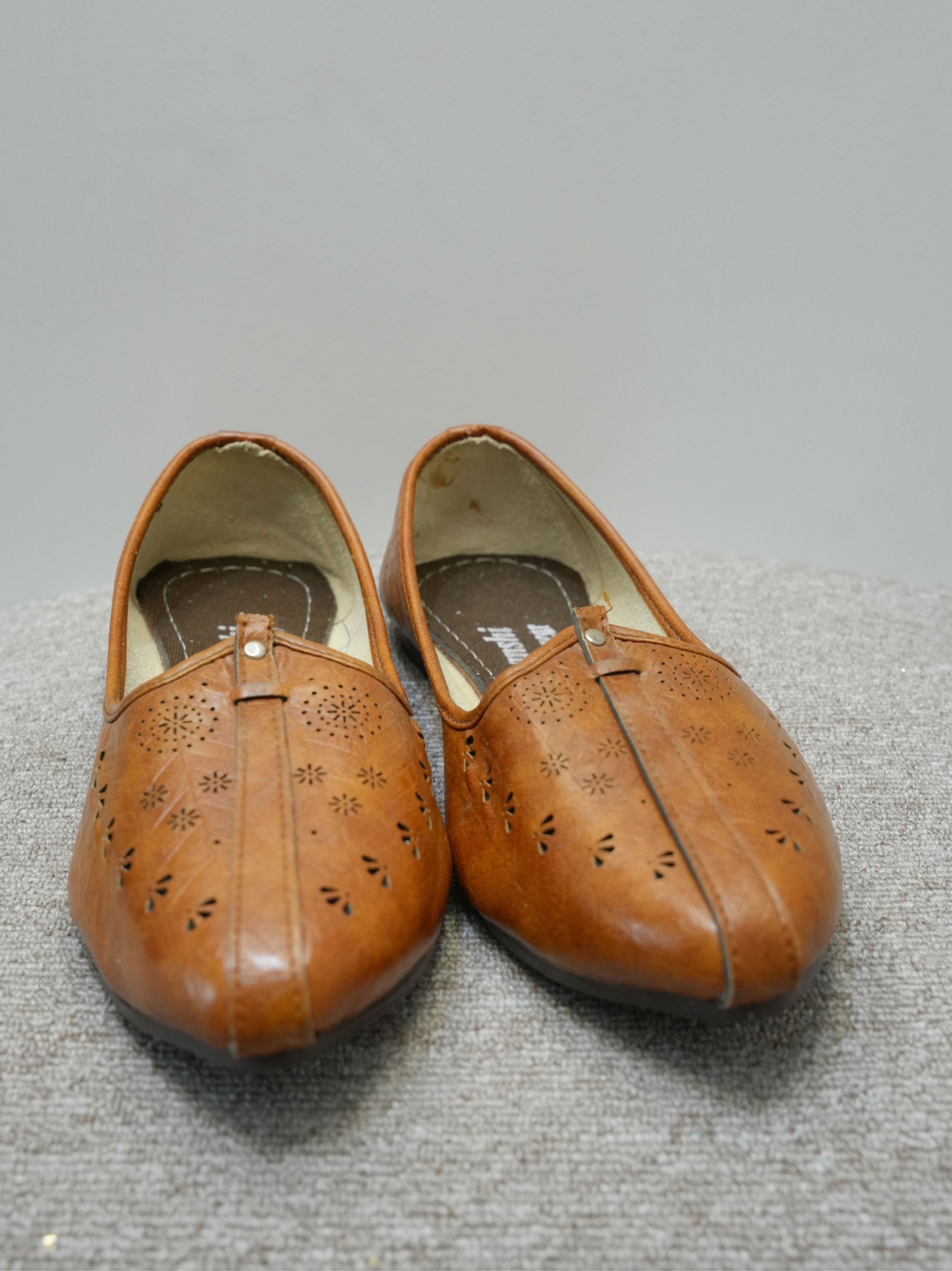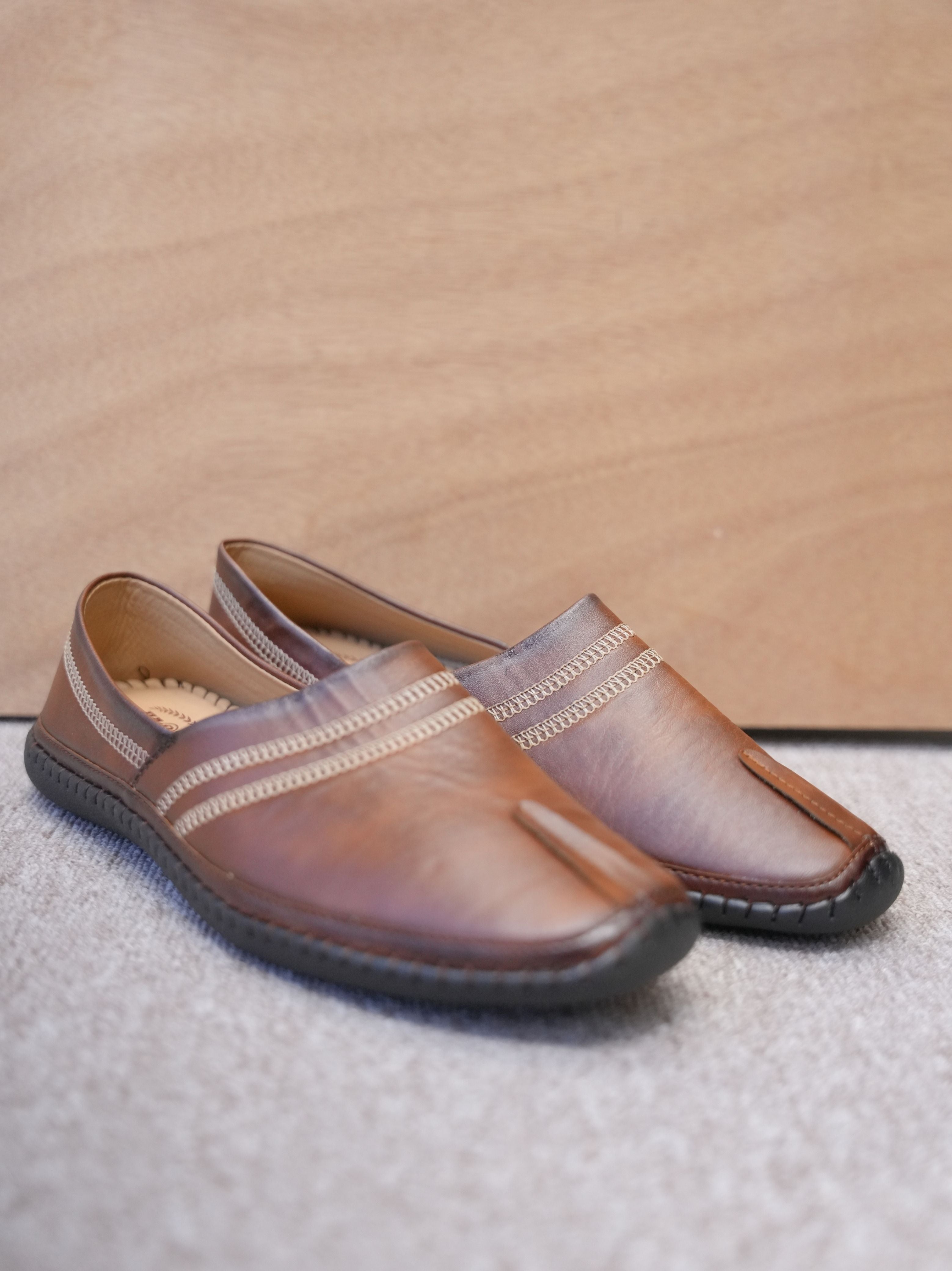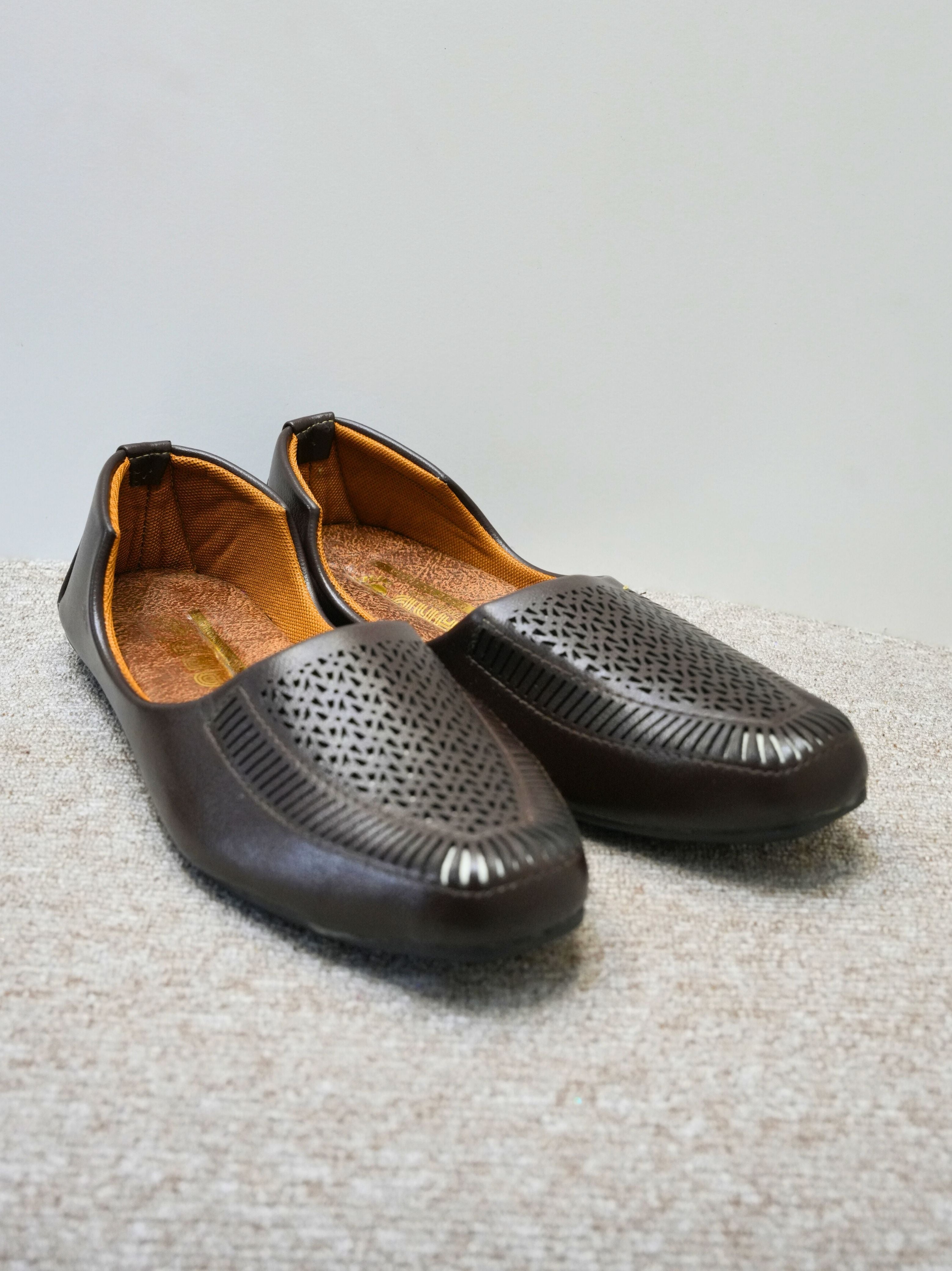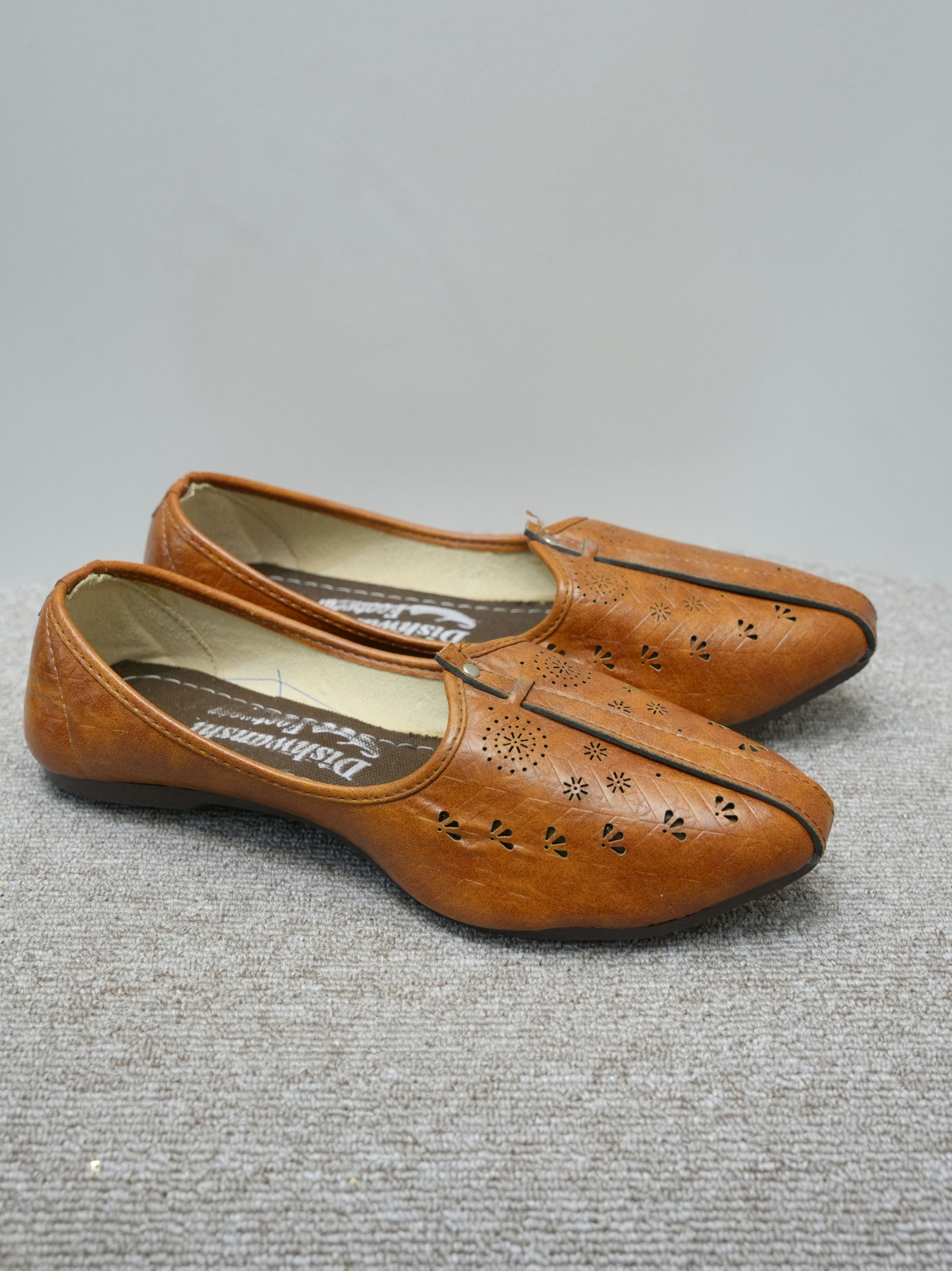 Gold Ethnic Mens Jooti With Flower Embroidered