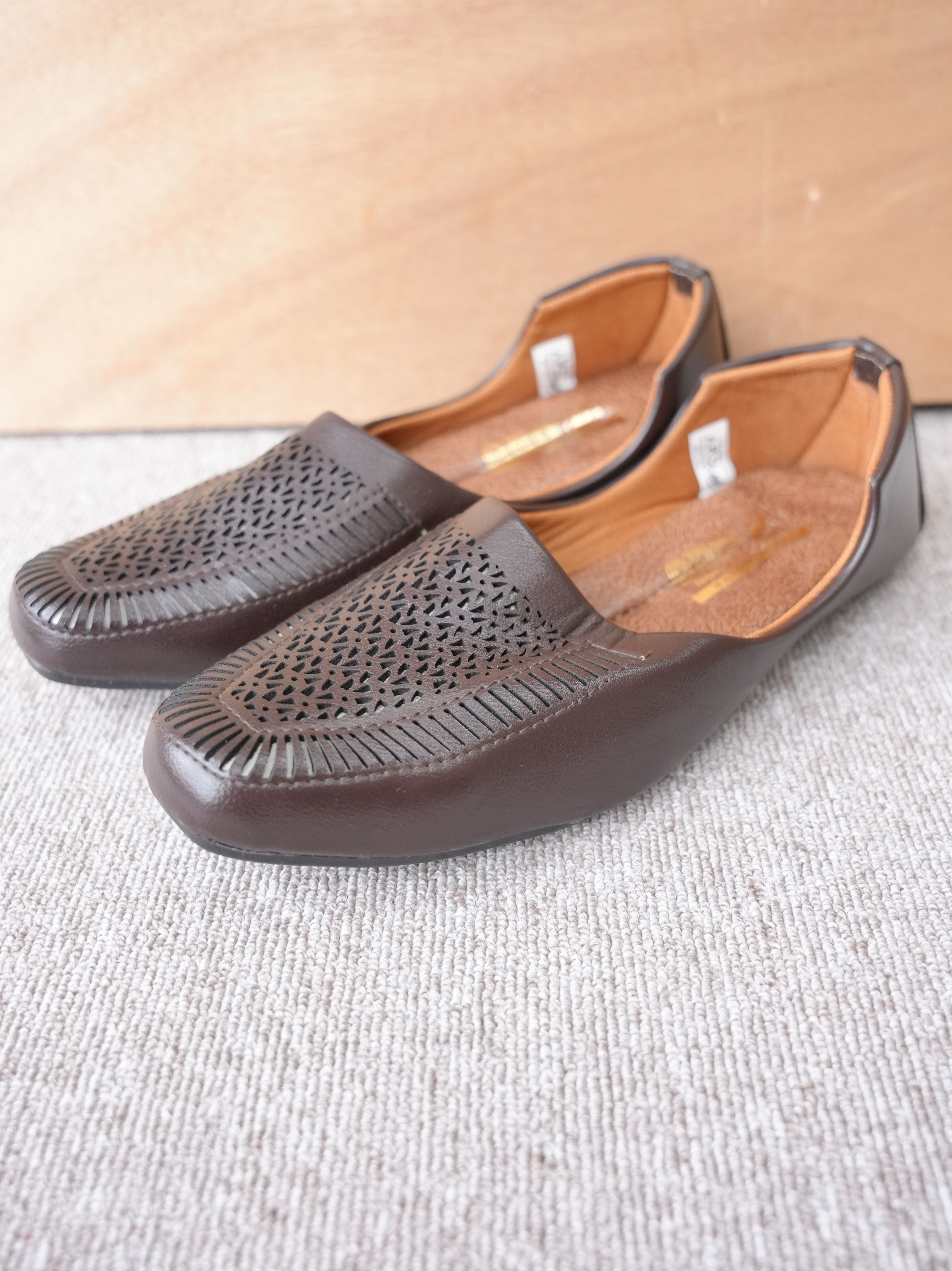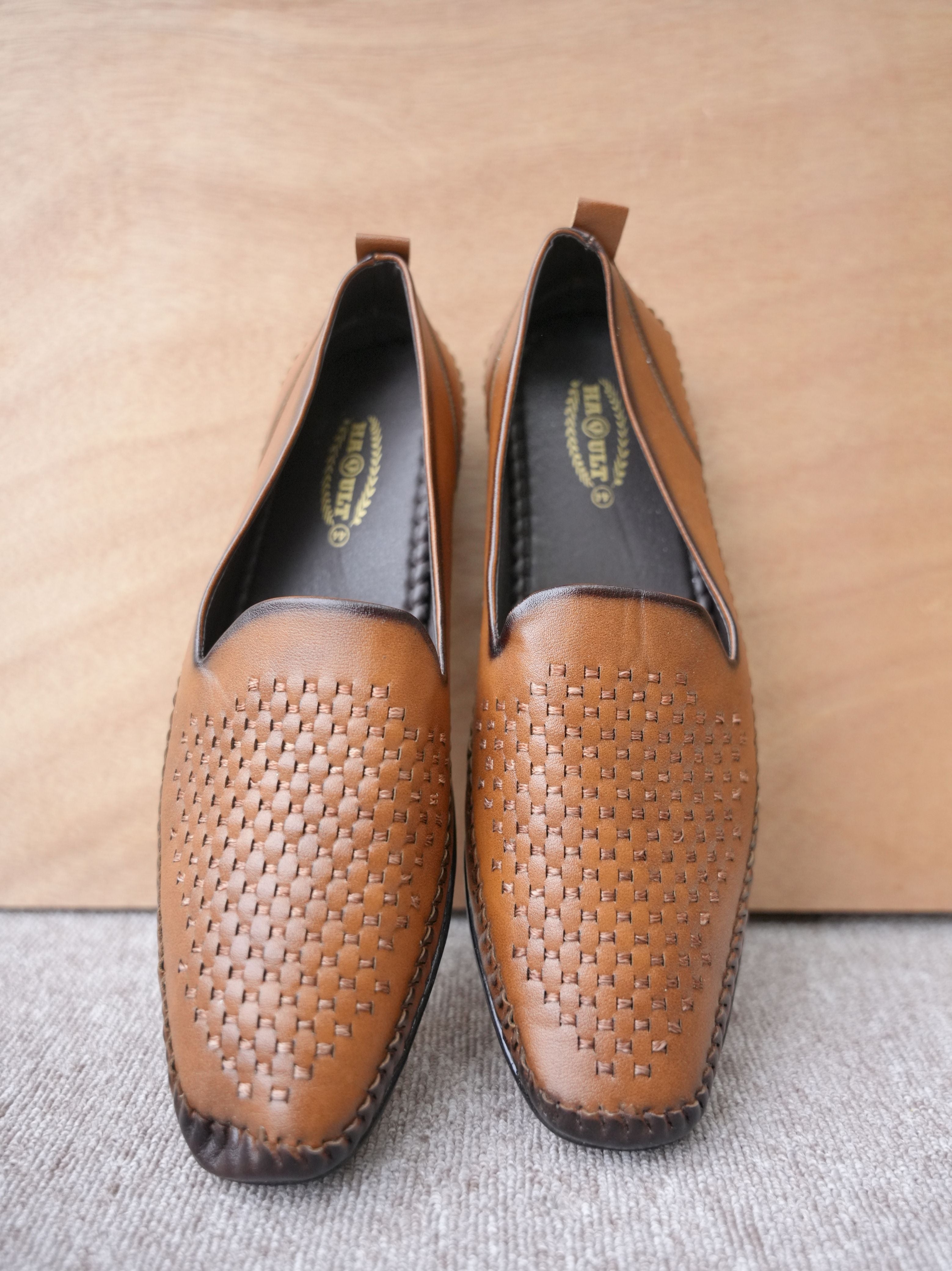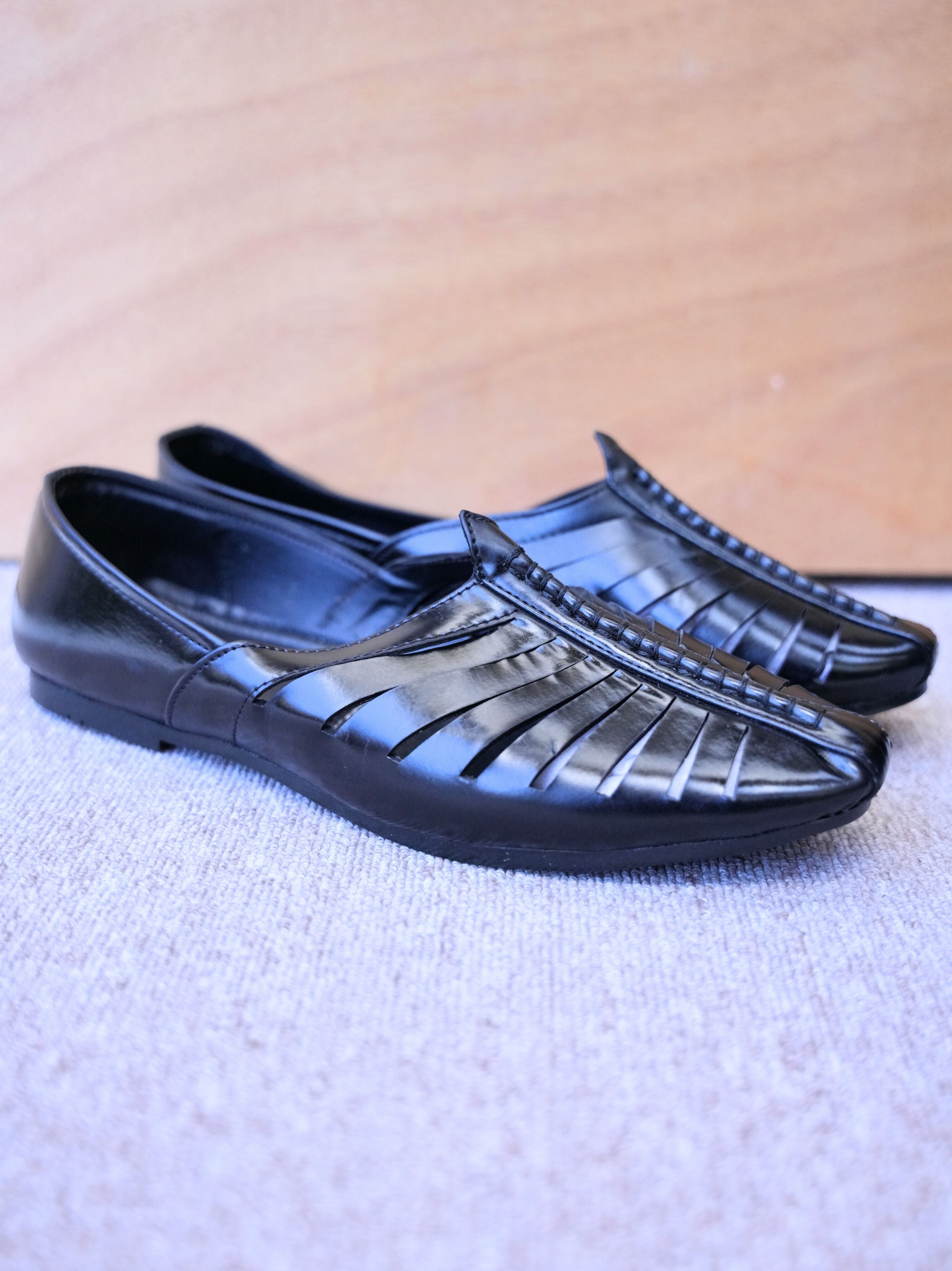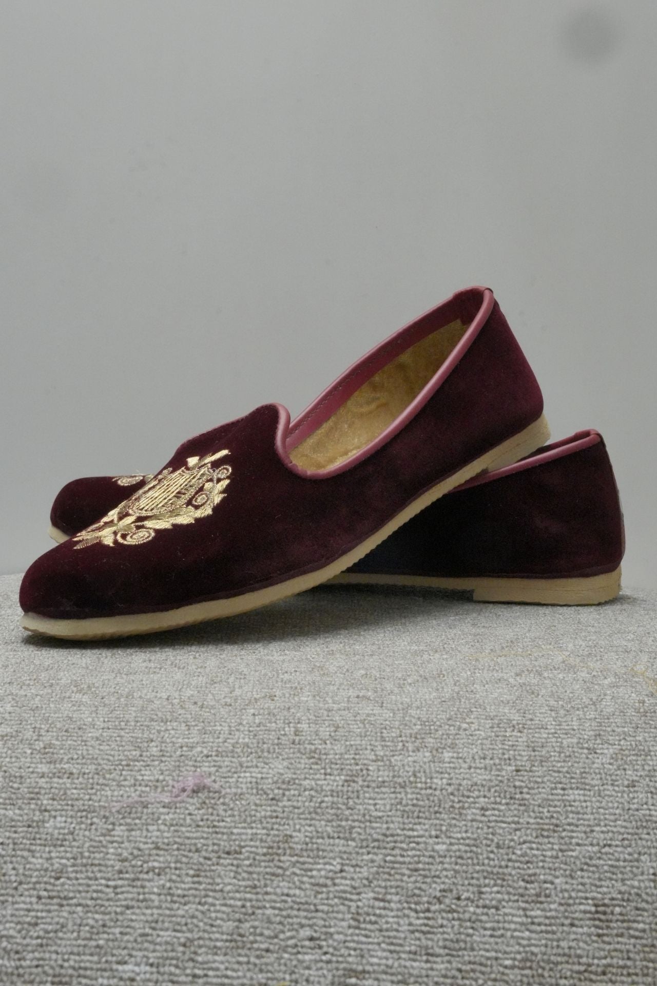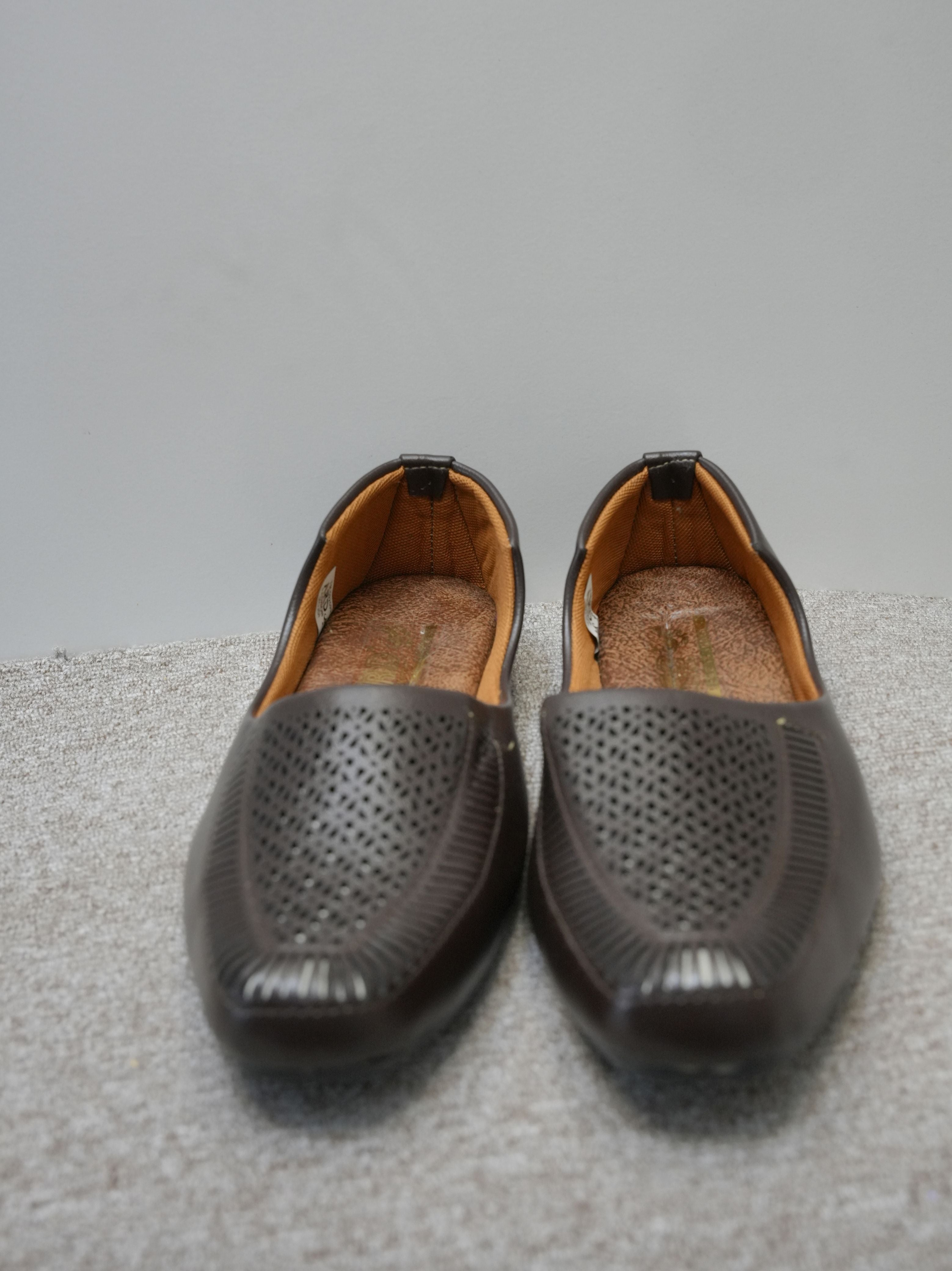 Gold Ethnic Mens Jooti With Flower Embroidered
