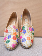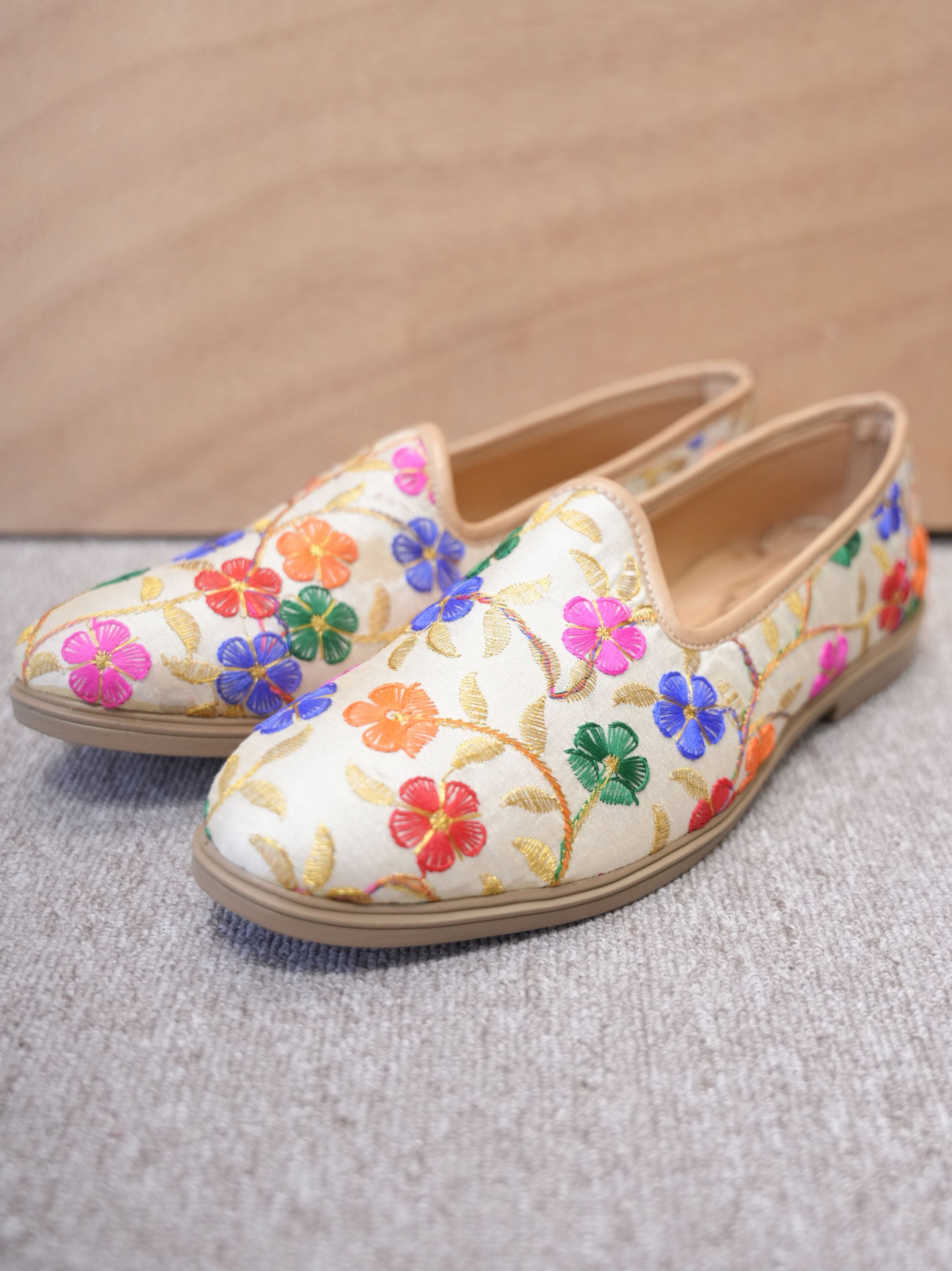 Gold Ethnic Mens Jooti With Flower Embroidered