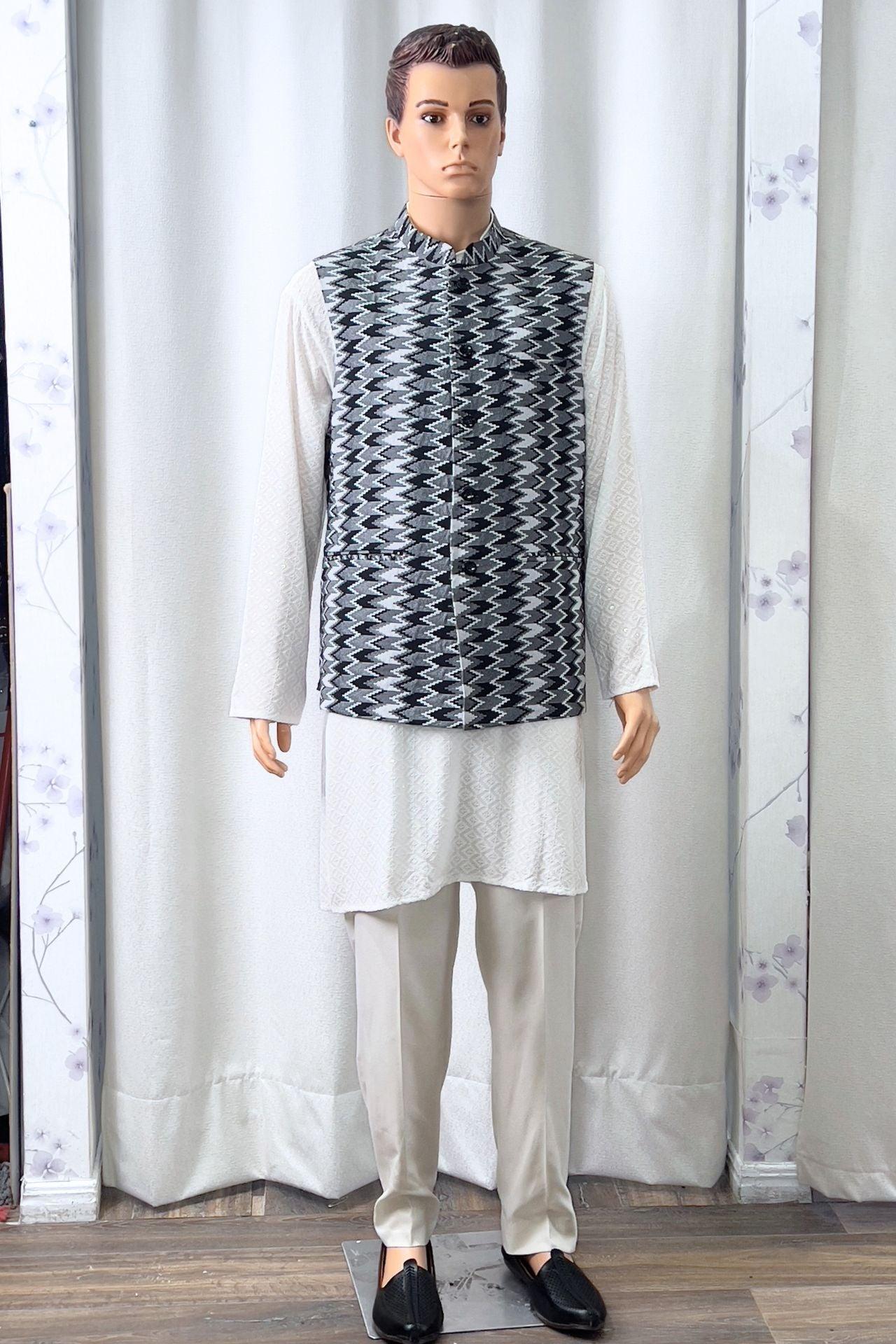 Mens Dhaka Waitcoat In Black