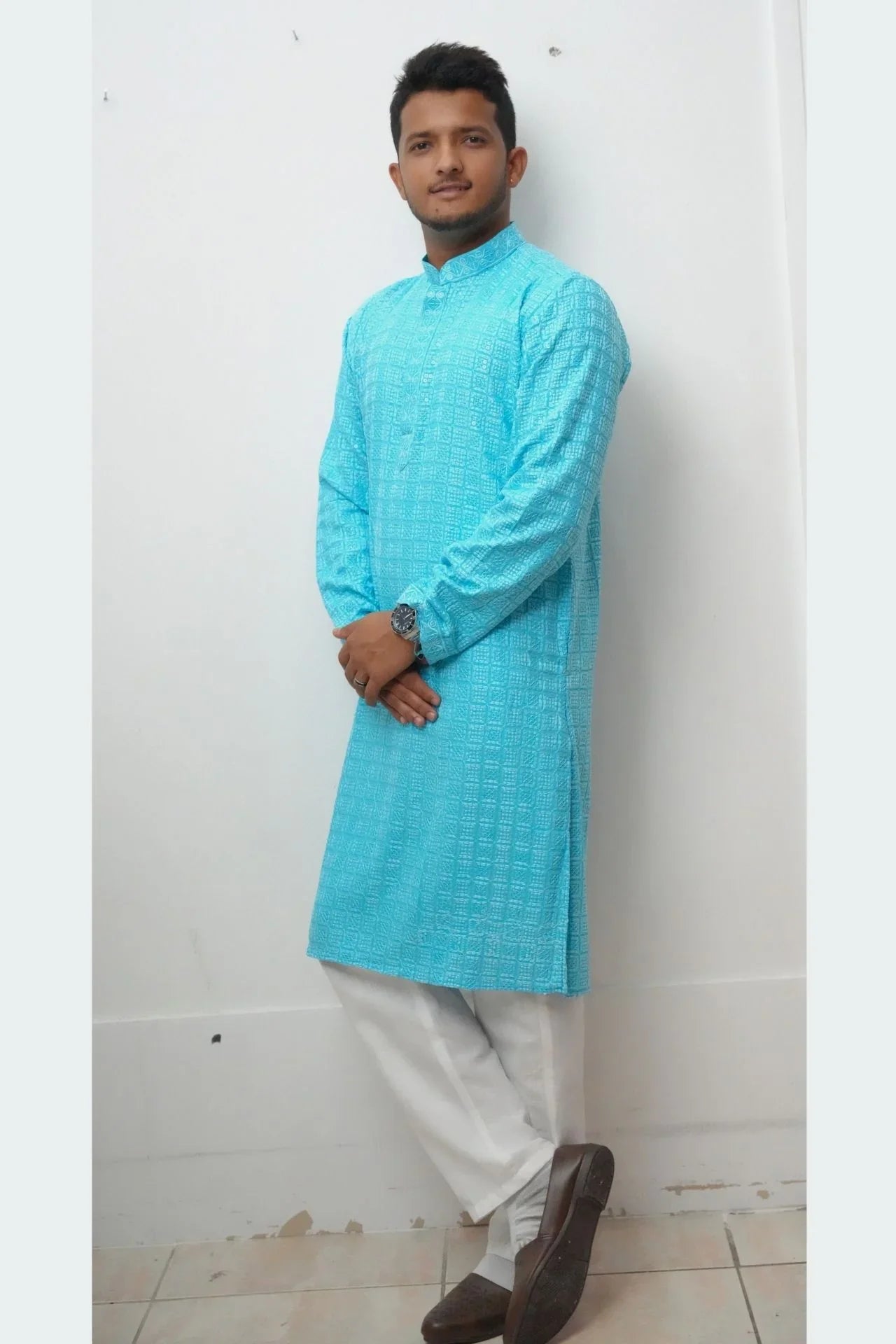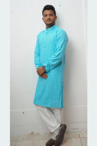 Sky Blue Chikankari Long Kurta for Men
