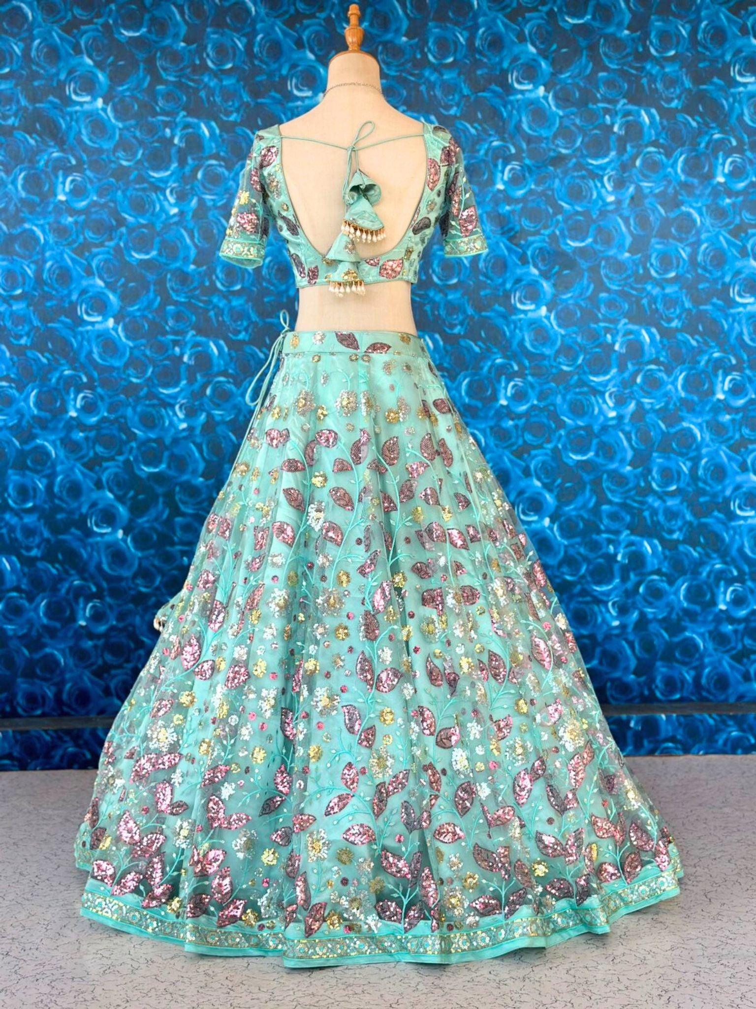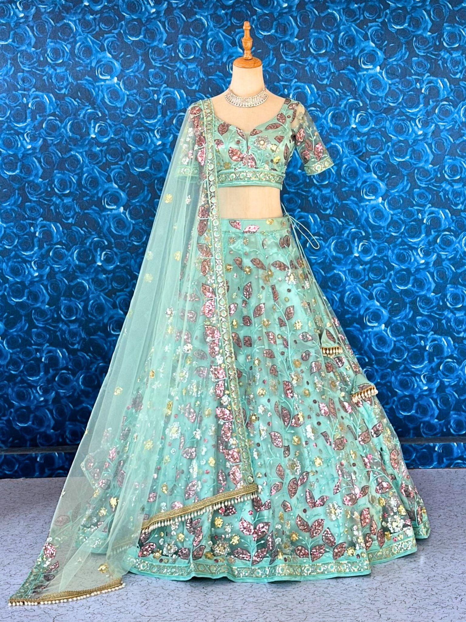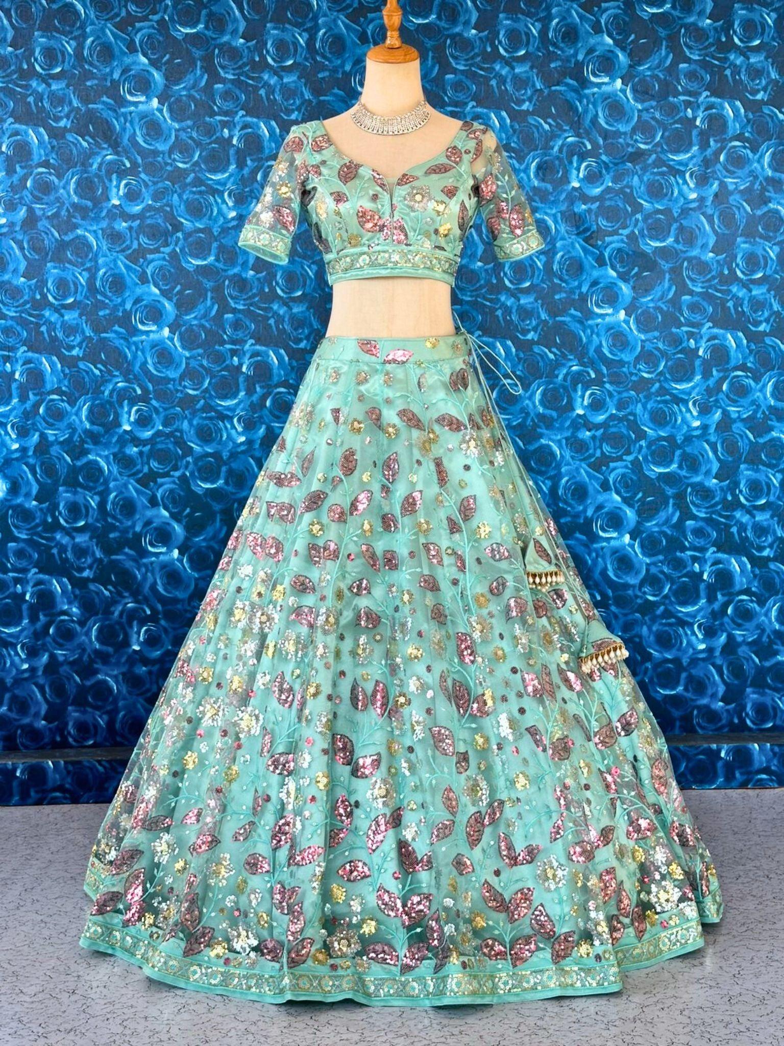Aqua Blue Net Sequence Work Lehenga Choli Set