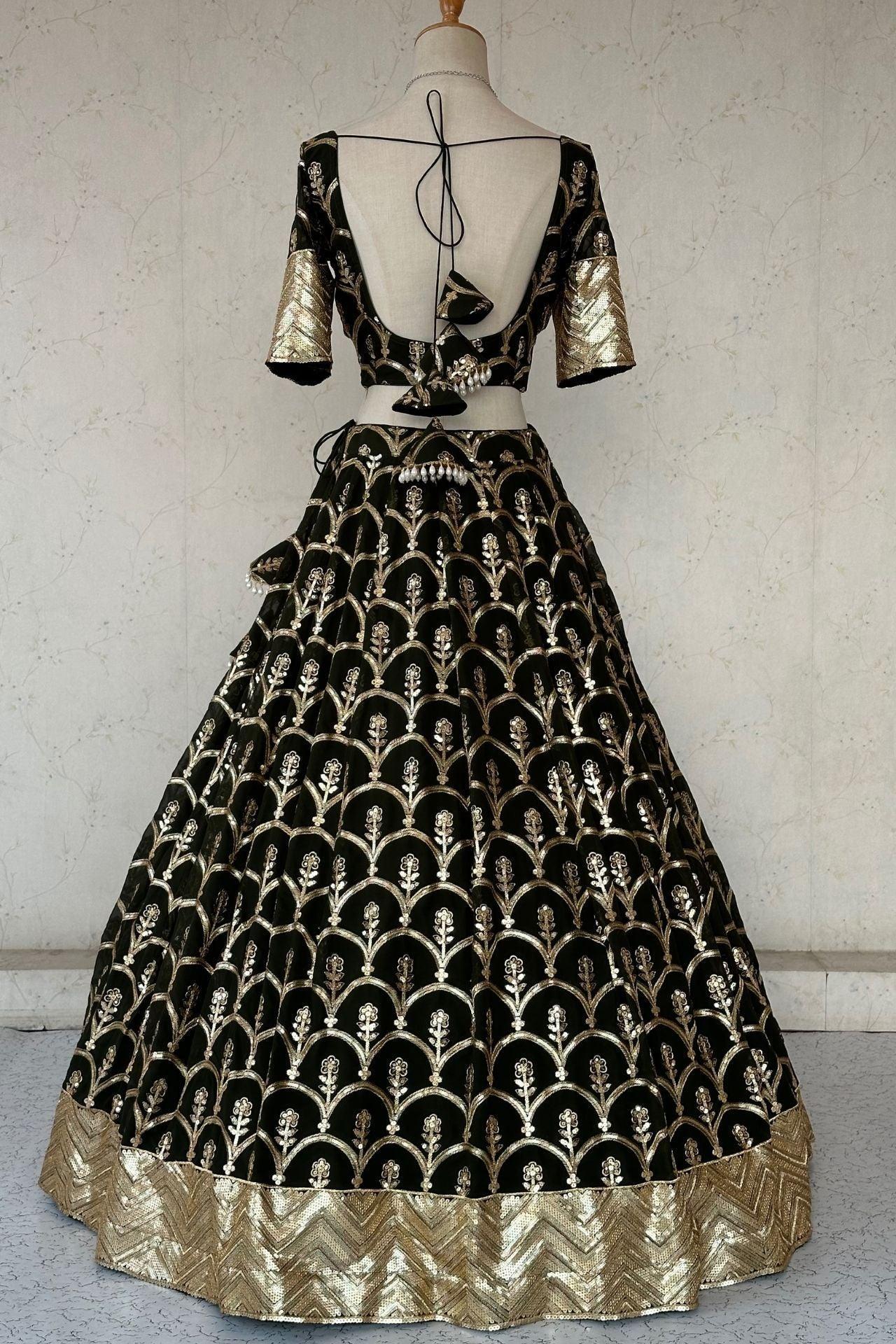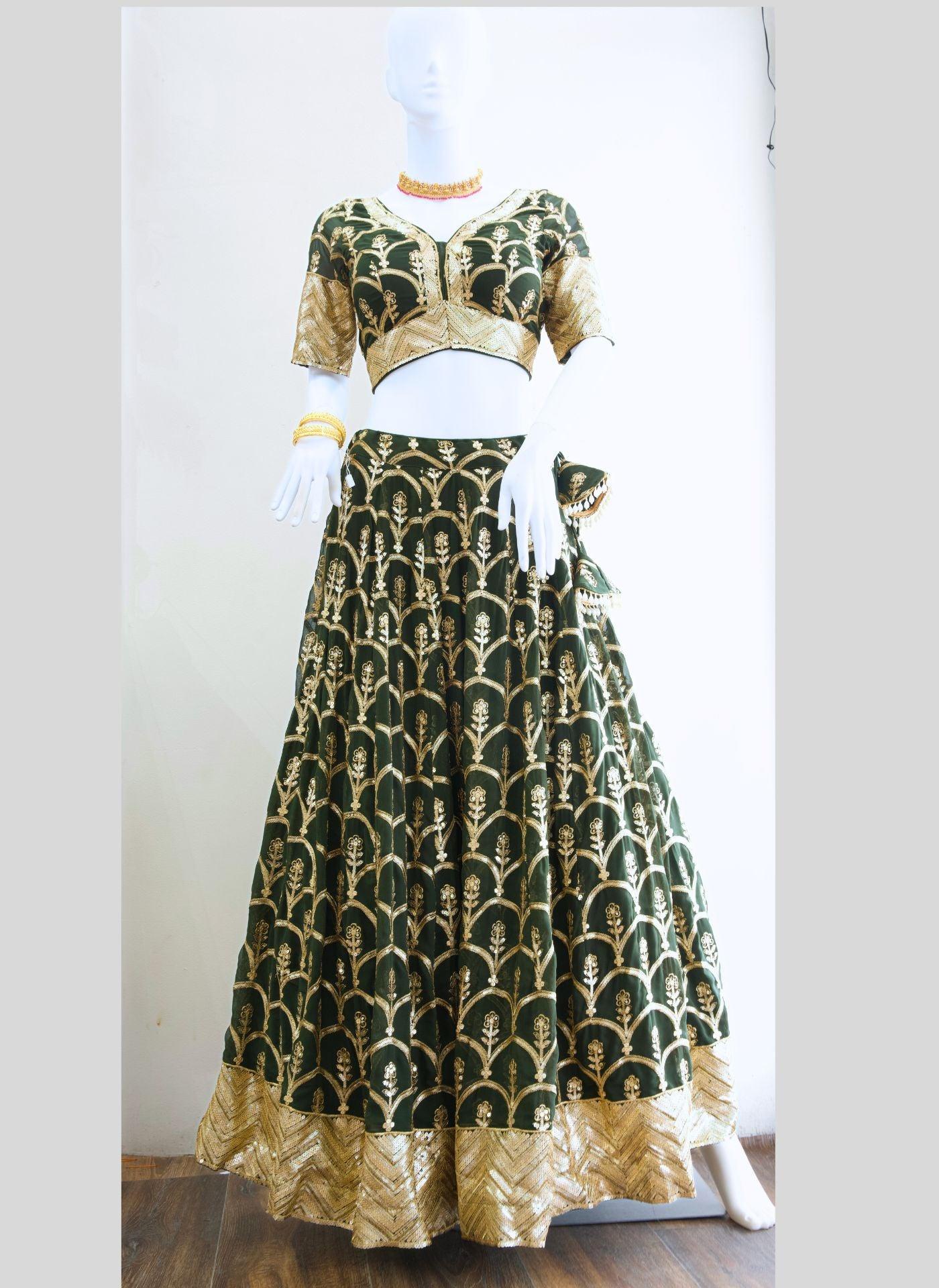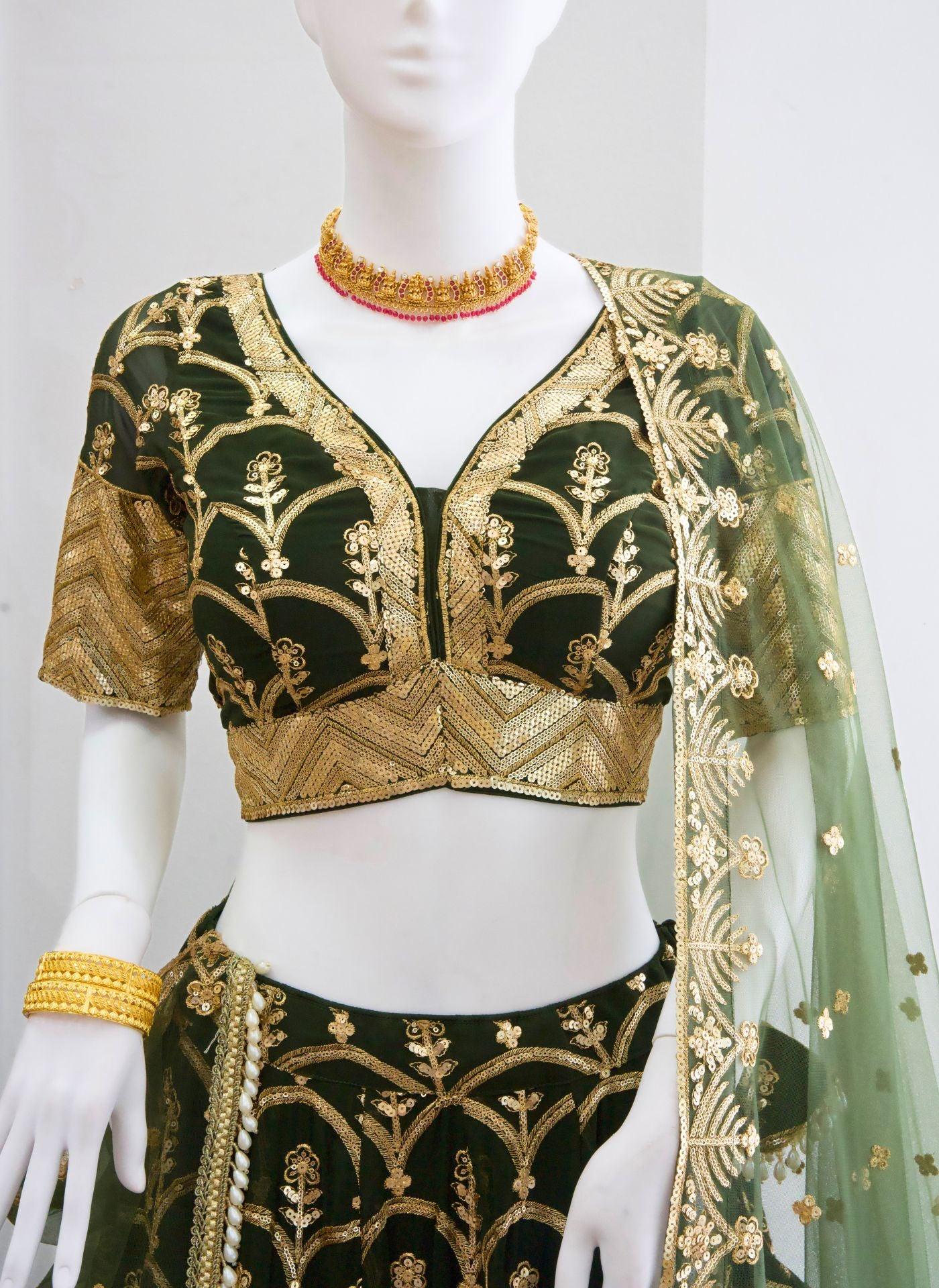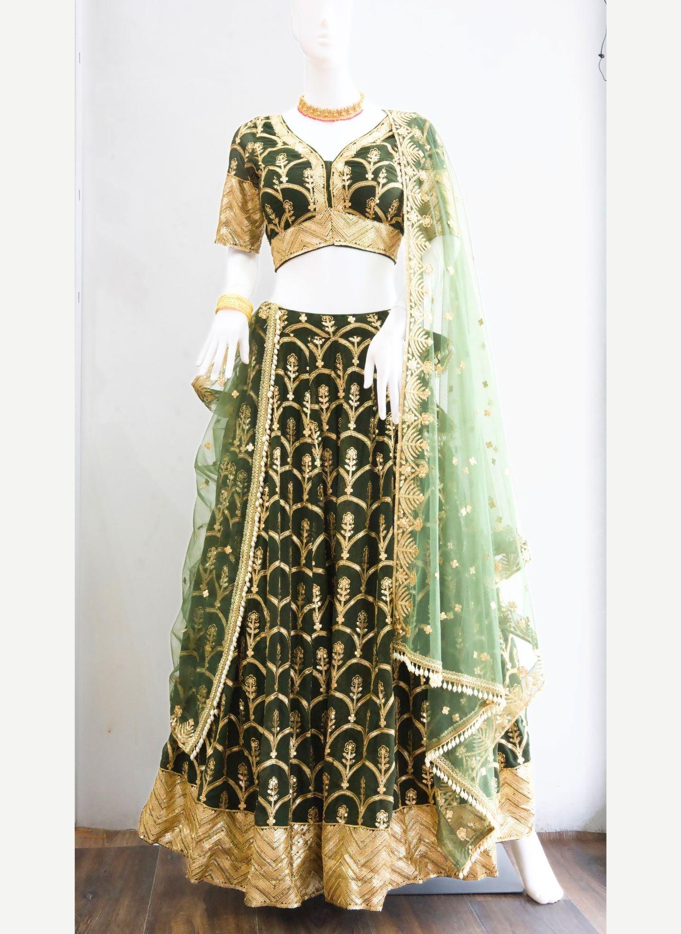 Mehendi Green Lehenga Set In Georgette With Heavy Gold Embroidery And Patchwork