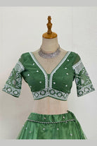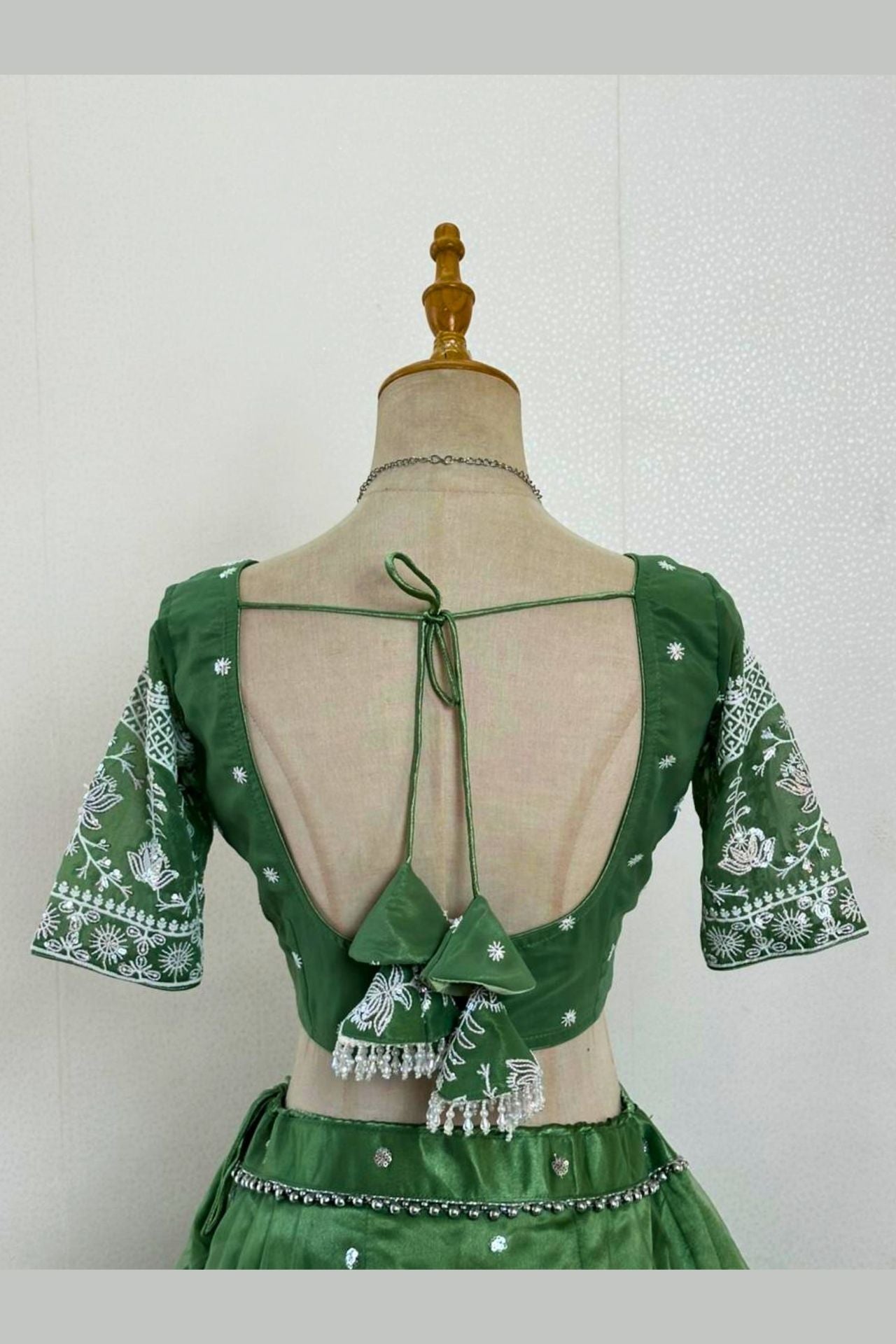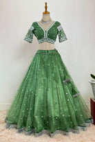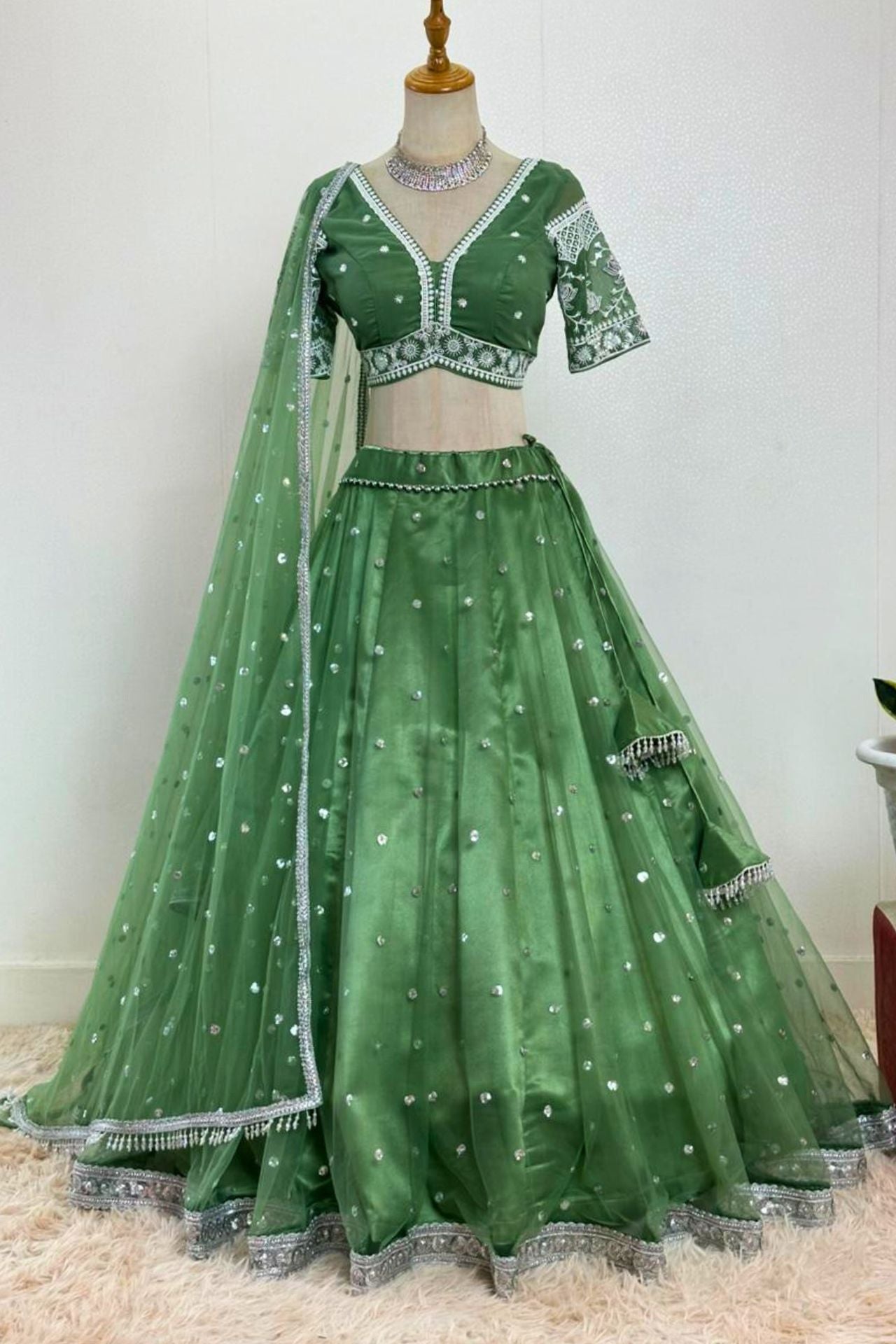 Emerald Green Satin & Net Lehenga with Silver Sequin Work