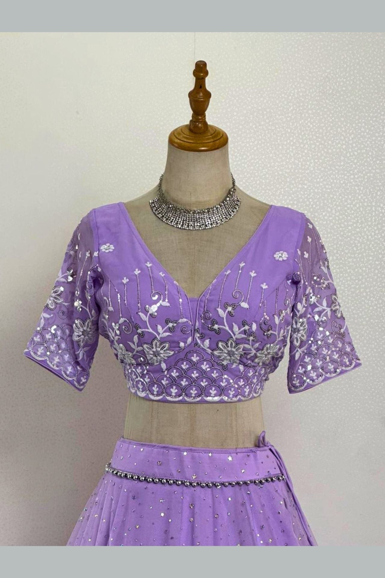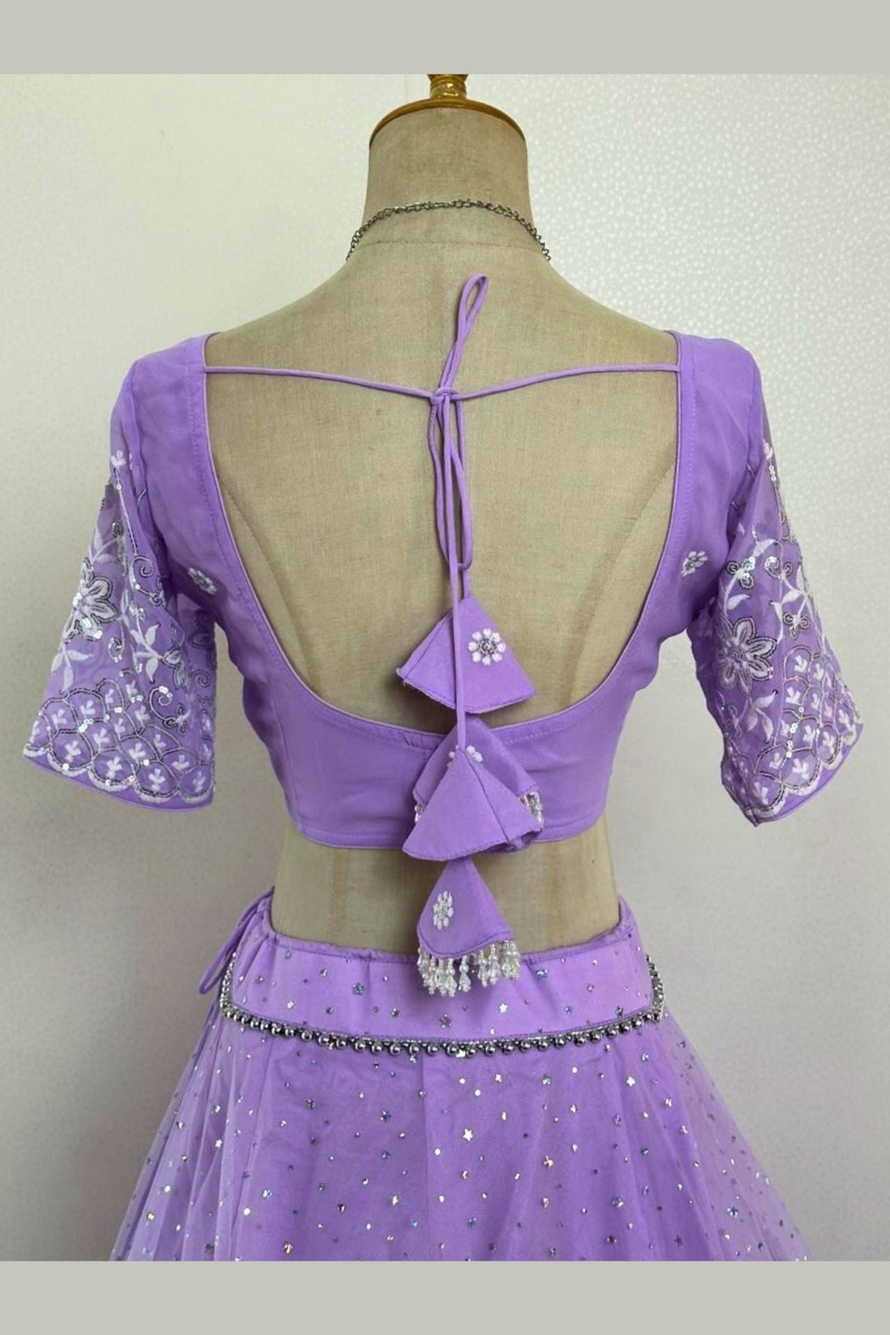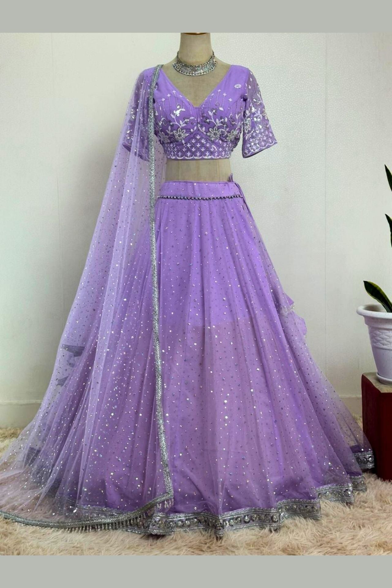 Lavender Net Lehenga with Heavy Silver Zari & Sequin Blouse