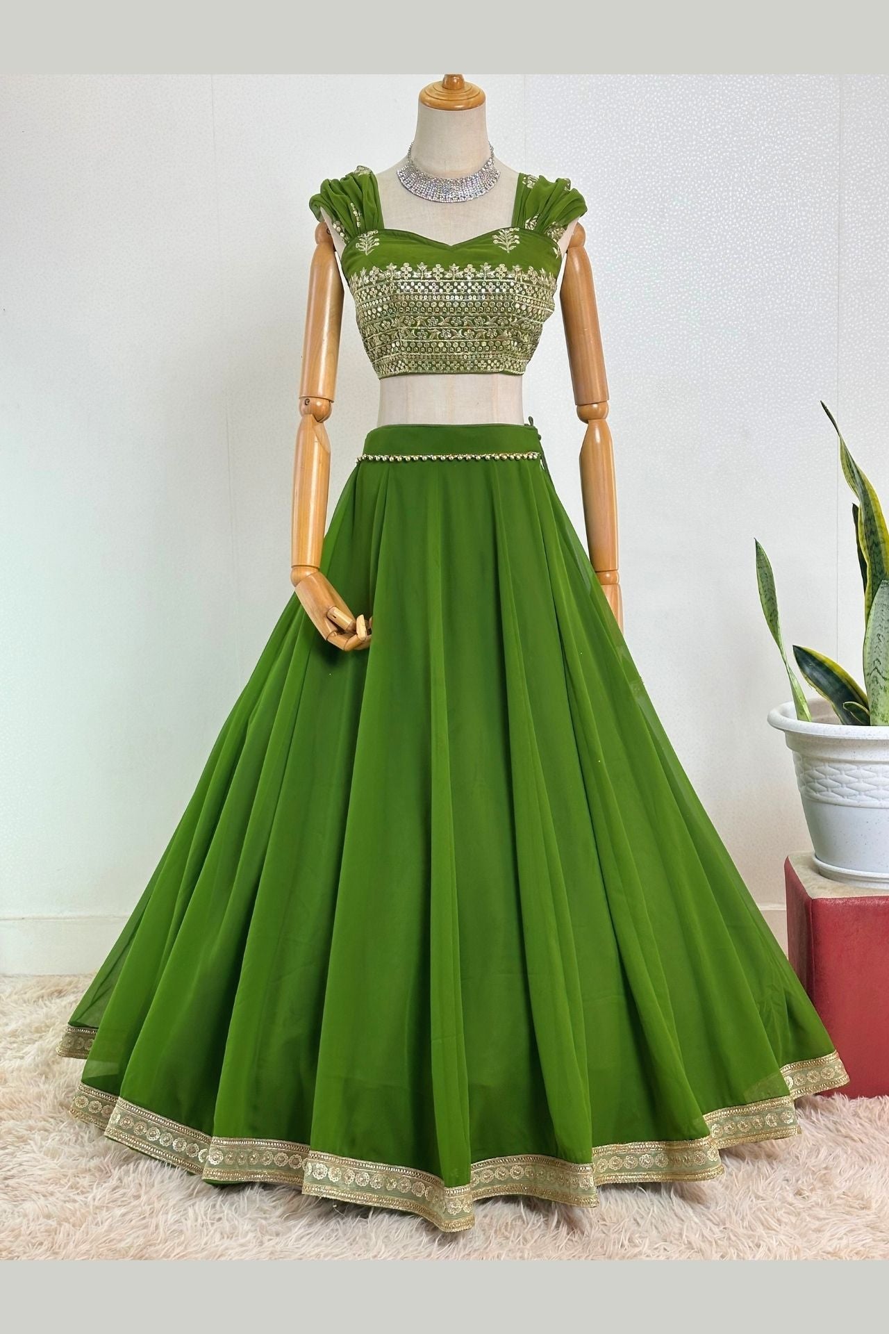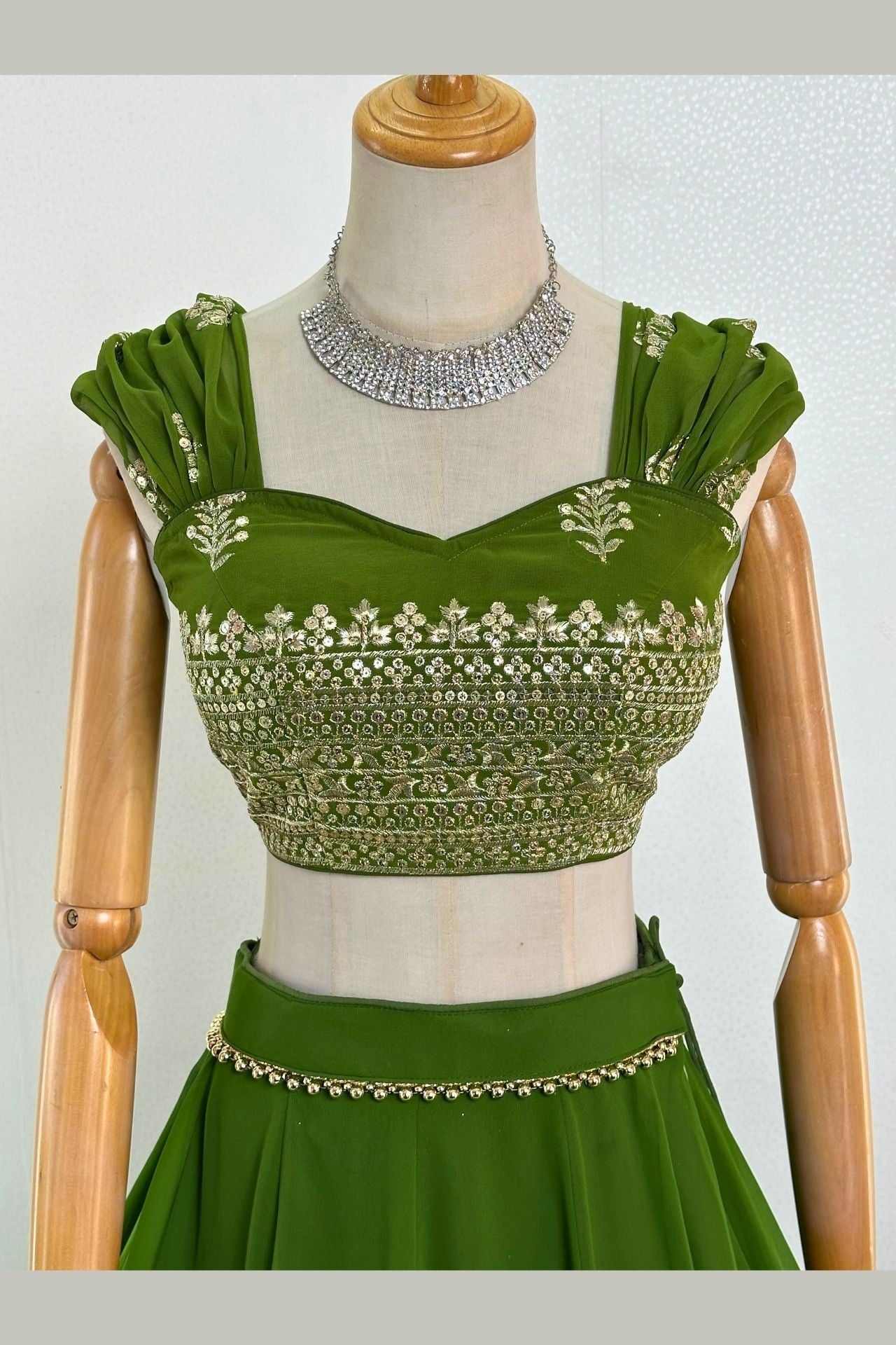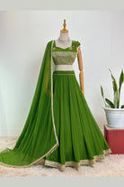 Olive Green Embroidered Lehenga Choli Set
