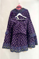 Color: Deep Purple with Gold Print; Hot Pink Contrast Dupatta