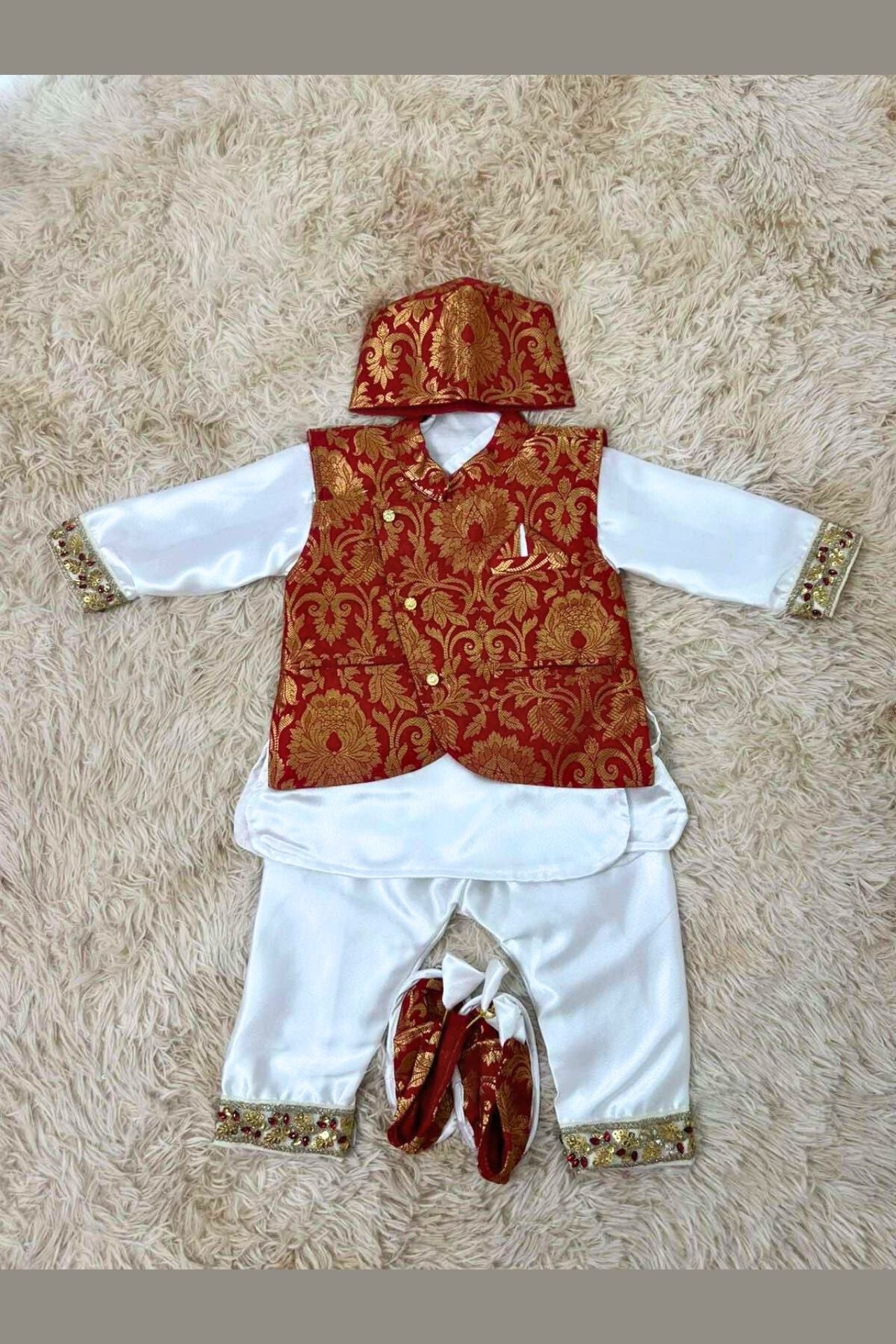 Baby Boy Red Brocade Pashni set