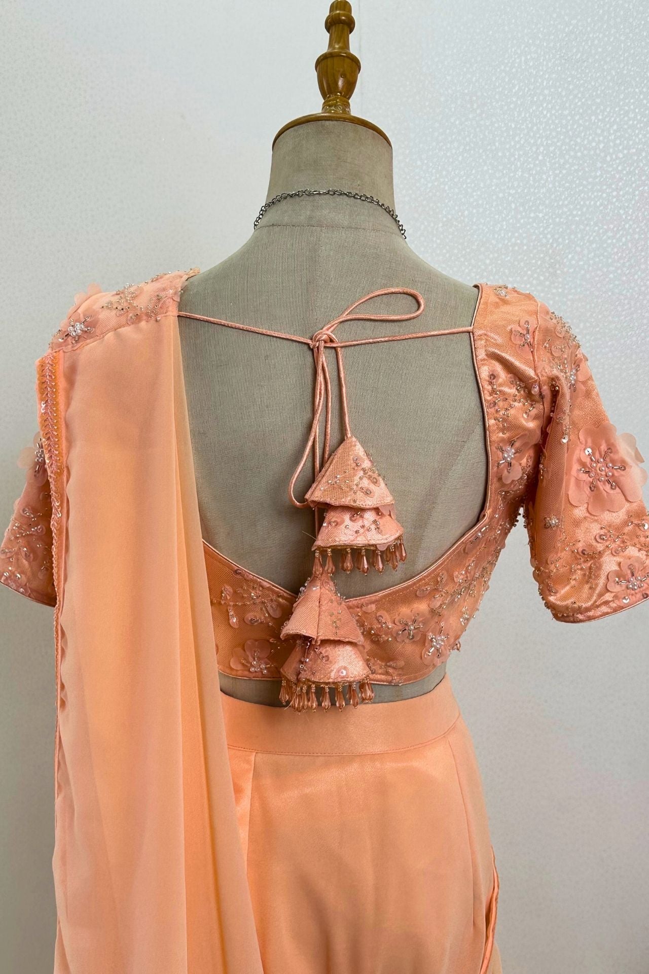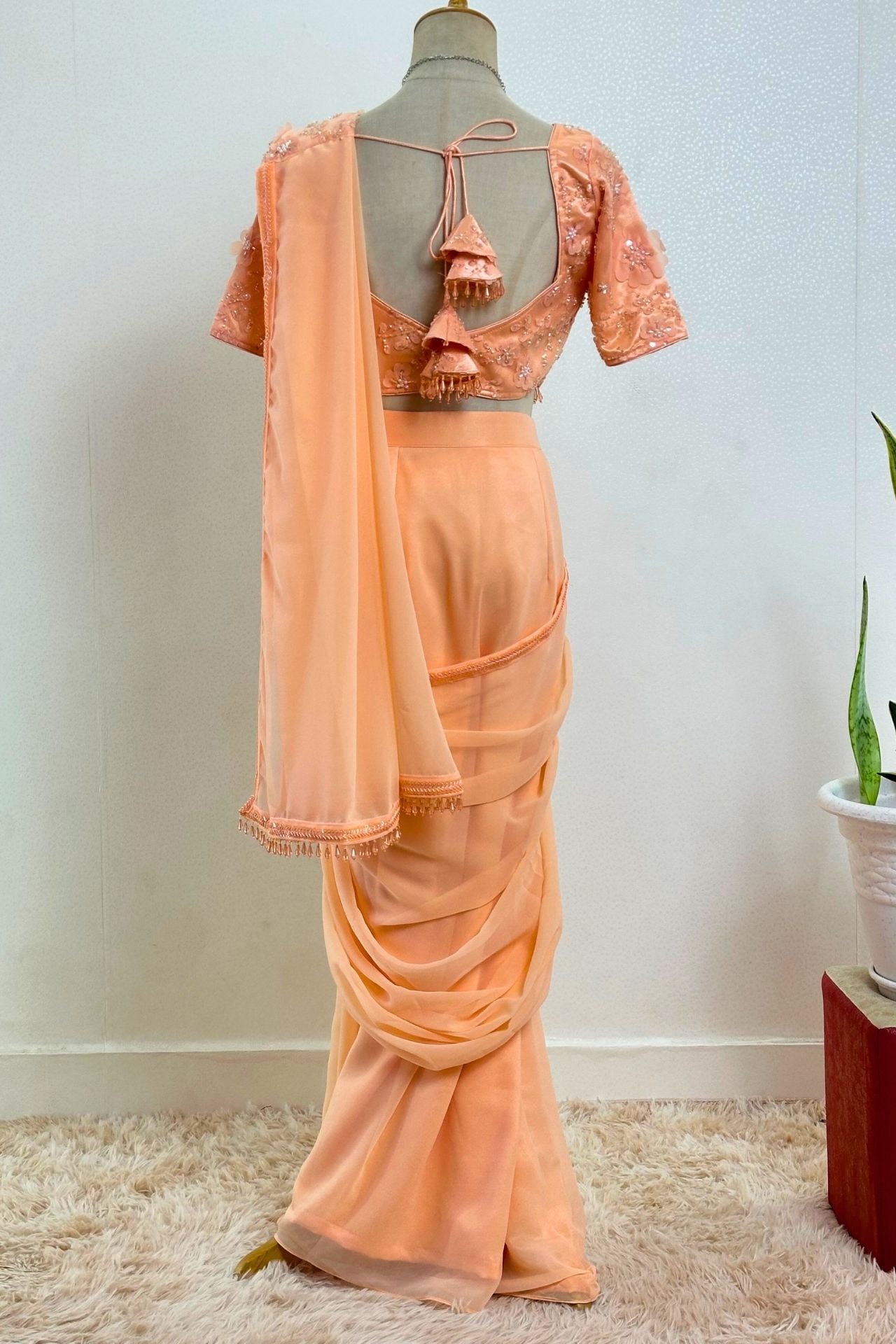 Pre-draped Peach Georgette Saree