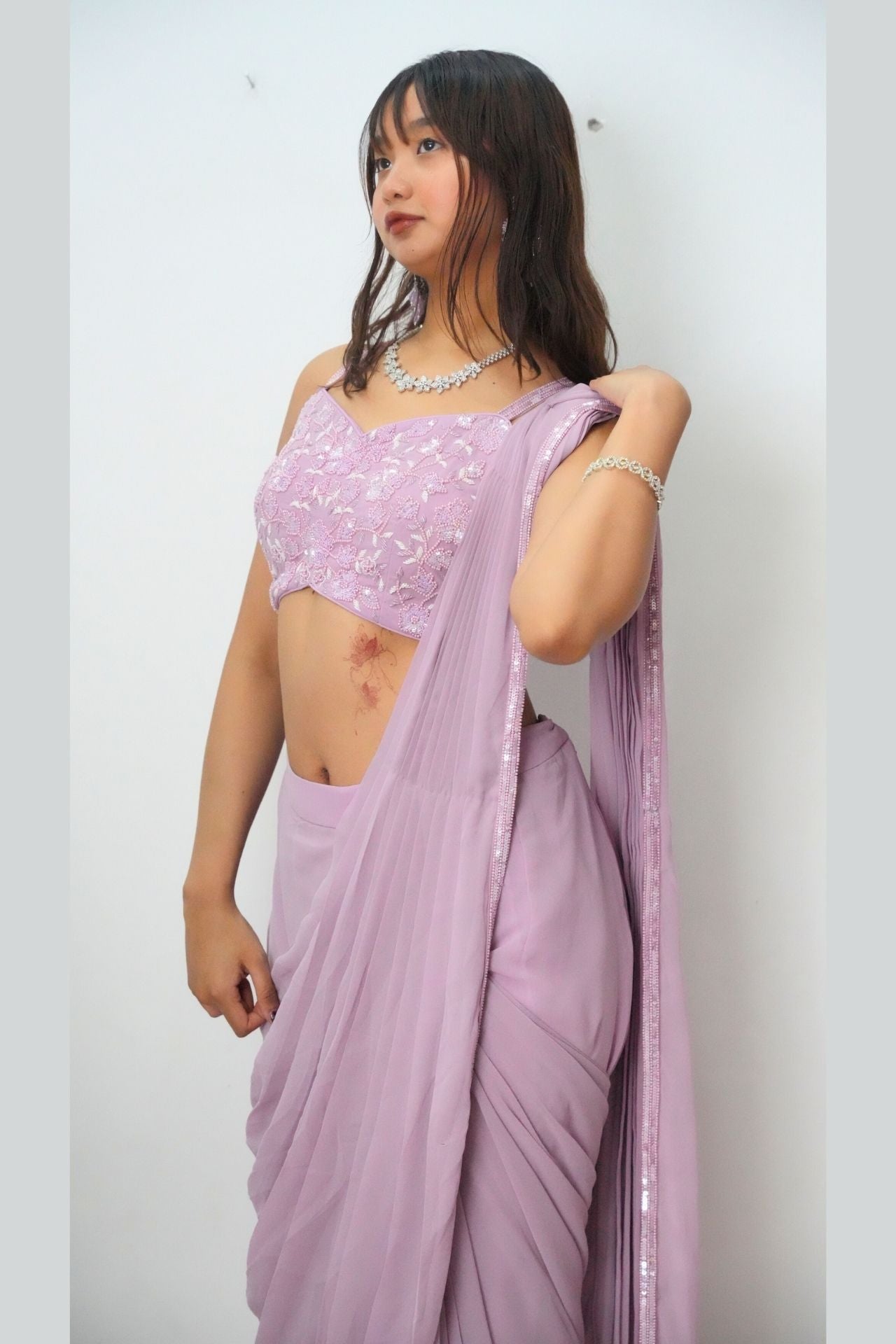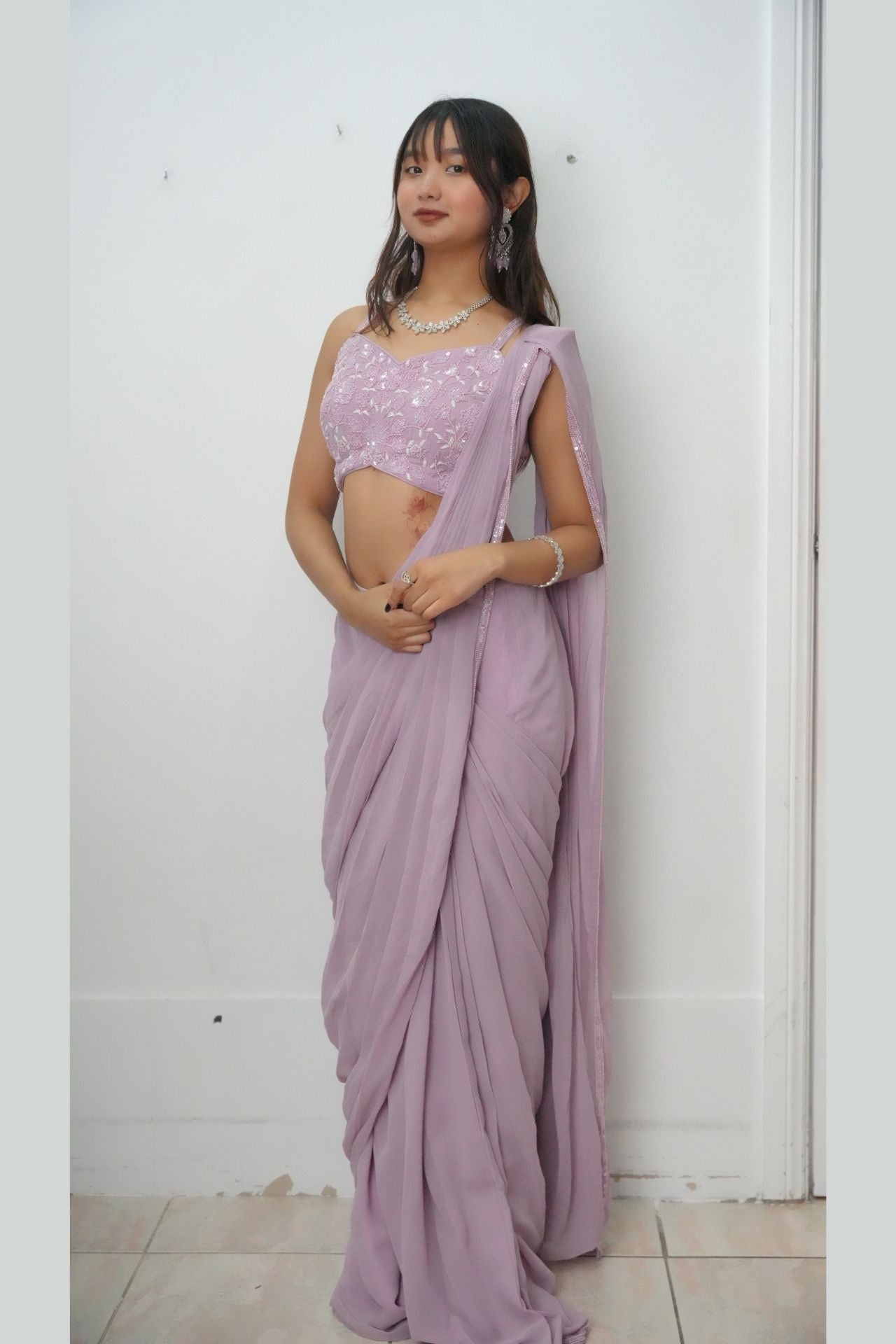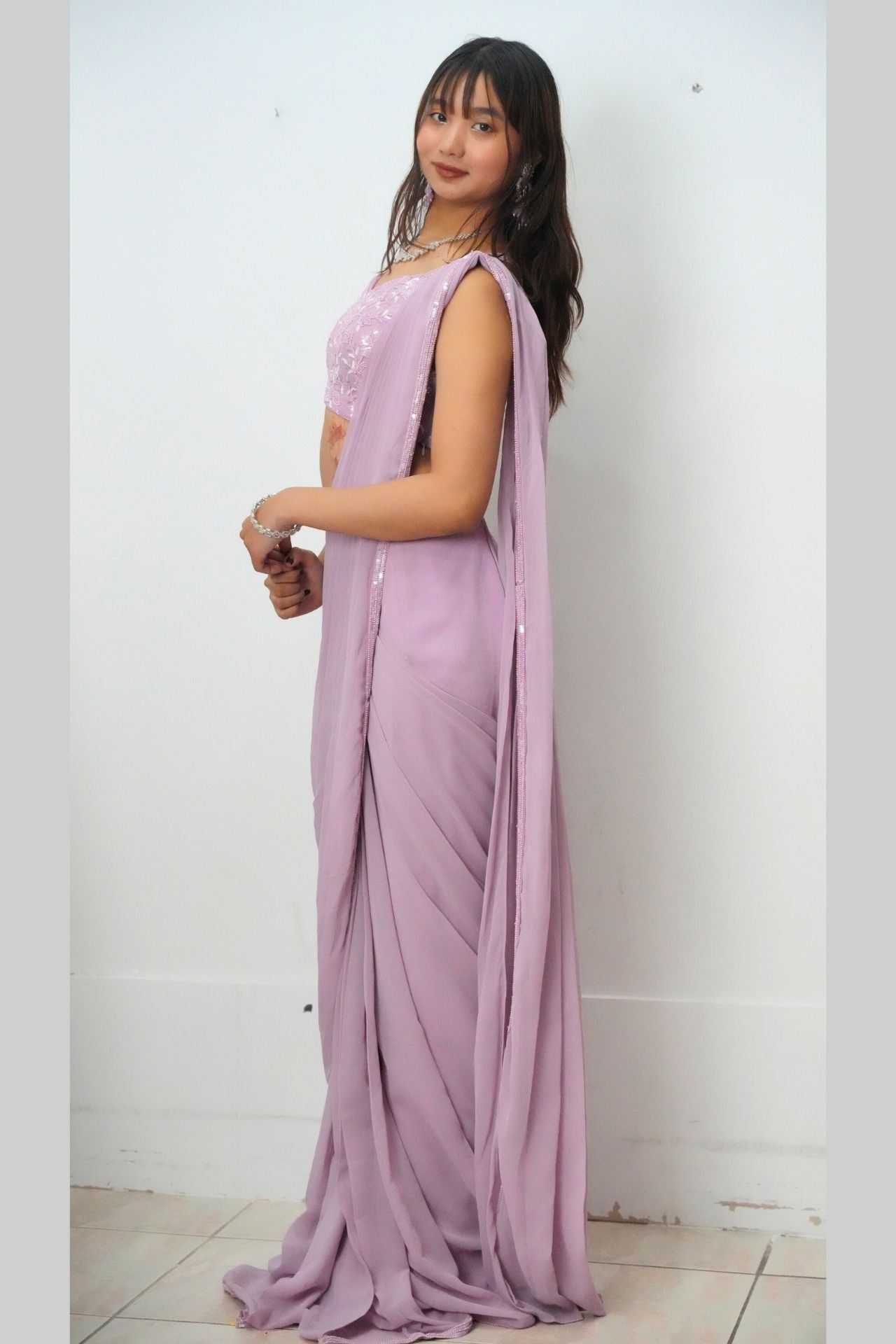 Pre-draped Saree Set in Lavender