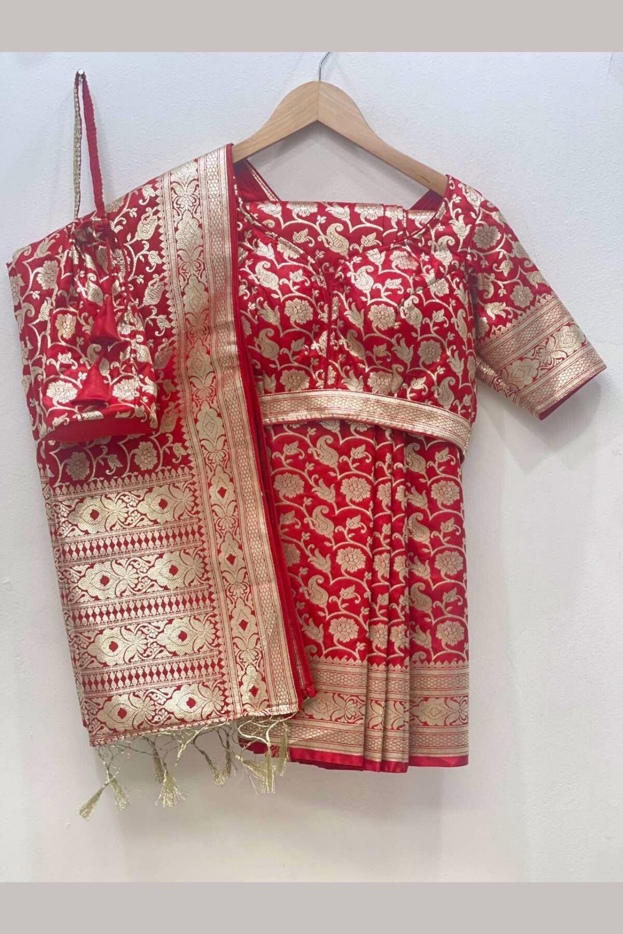 Ready-to-Wear Red Banarasi Silk Saree
