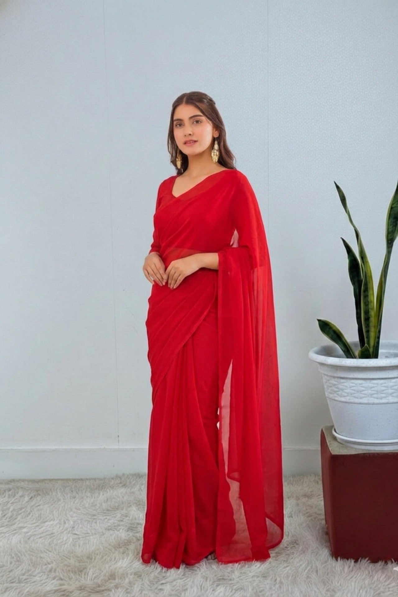 Ready to Wear Red Georgette Saree