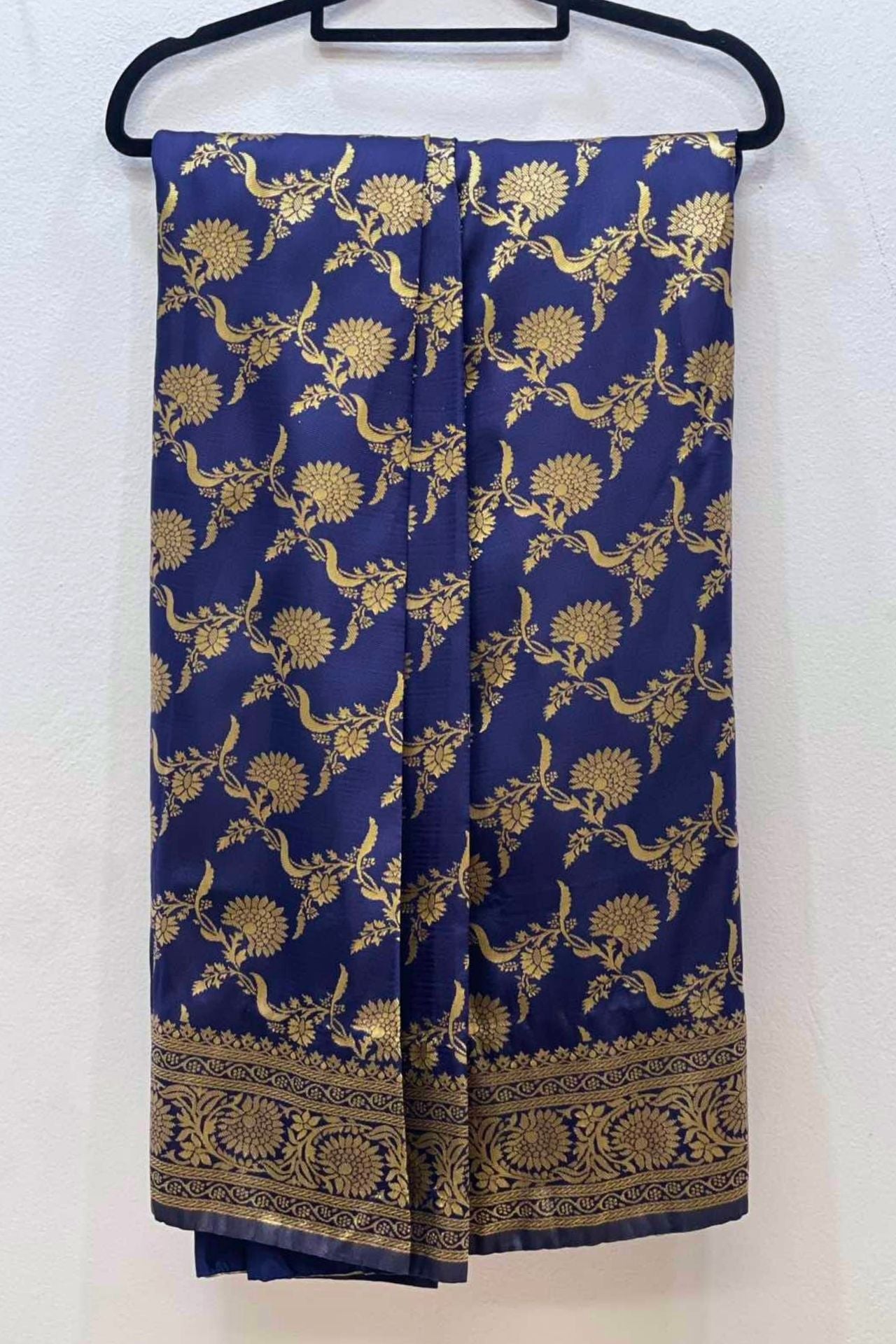 Design: Features classic Banarasi floral buttas and an intricate jaal border, finished with decorative ethnic tassels (latkans) on the pallu.