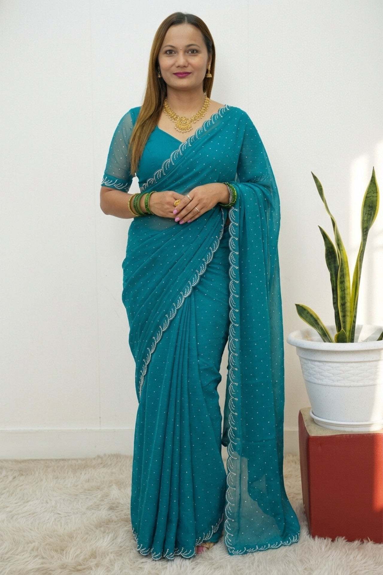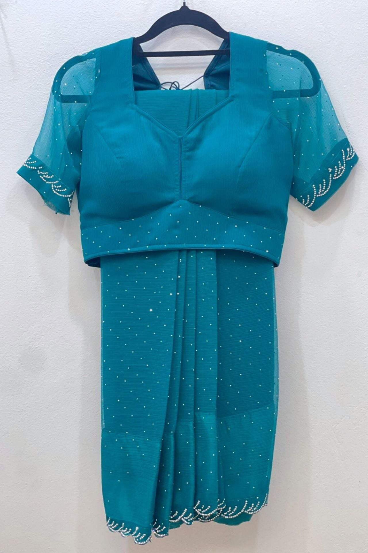 Teal Blue Ready To Wear Georgette Saree