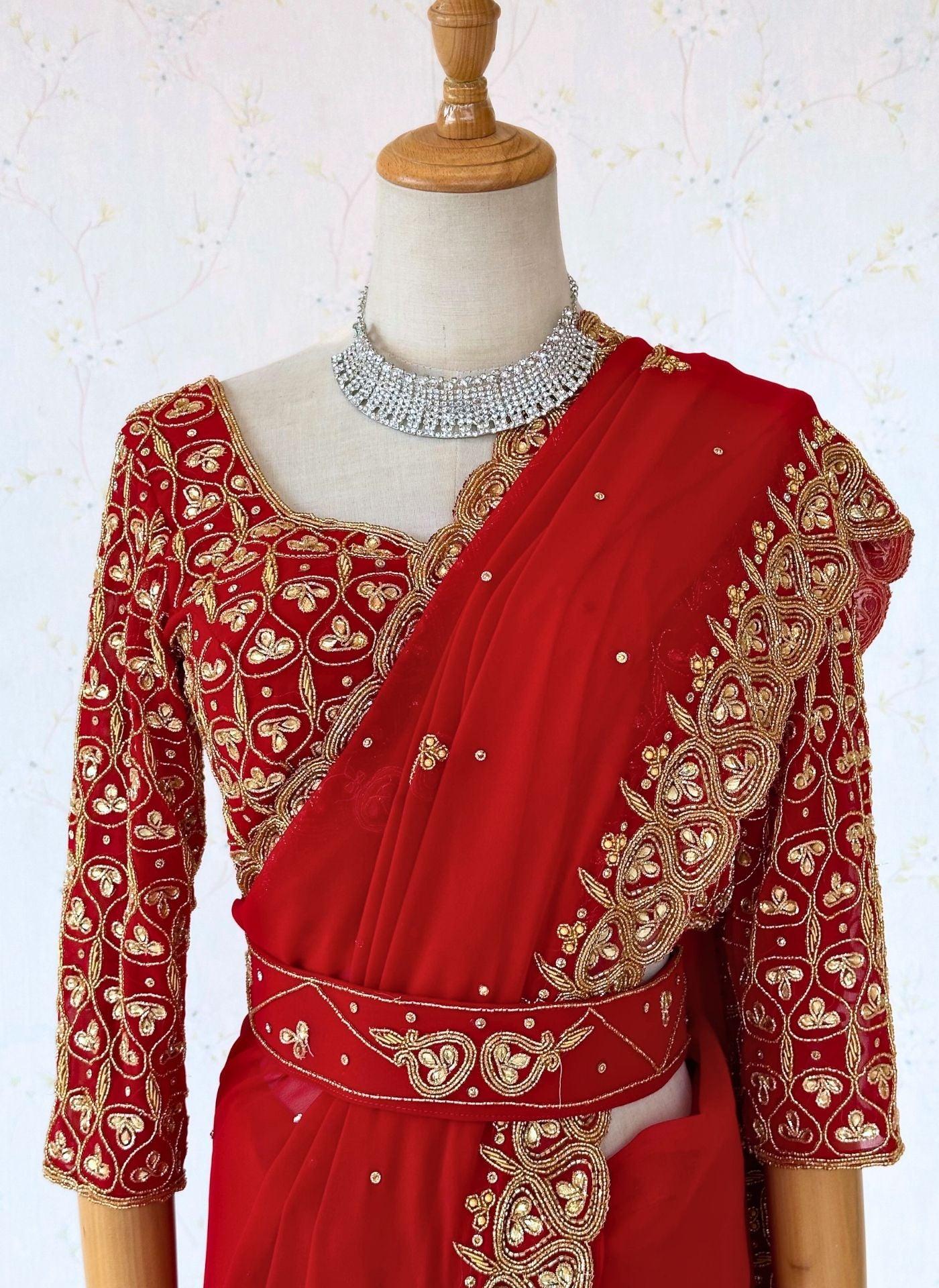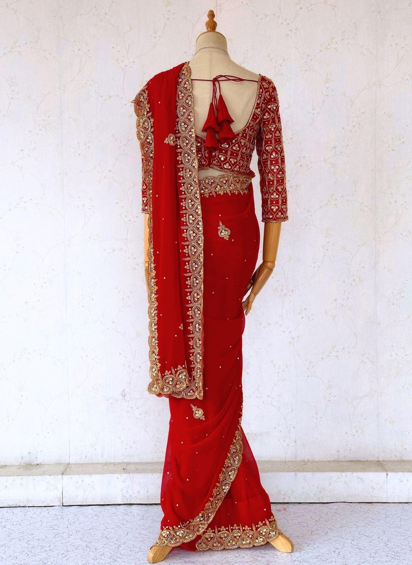Experience the exquisite craftsmanship of the Georgette Handwork Saree with stone work all over saree.