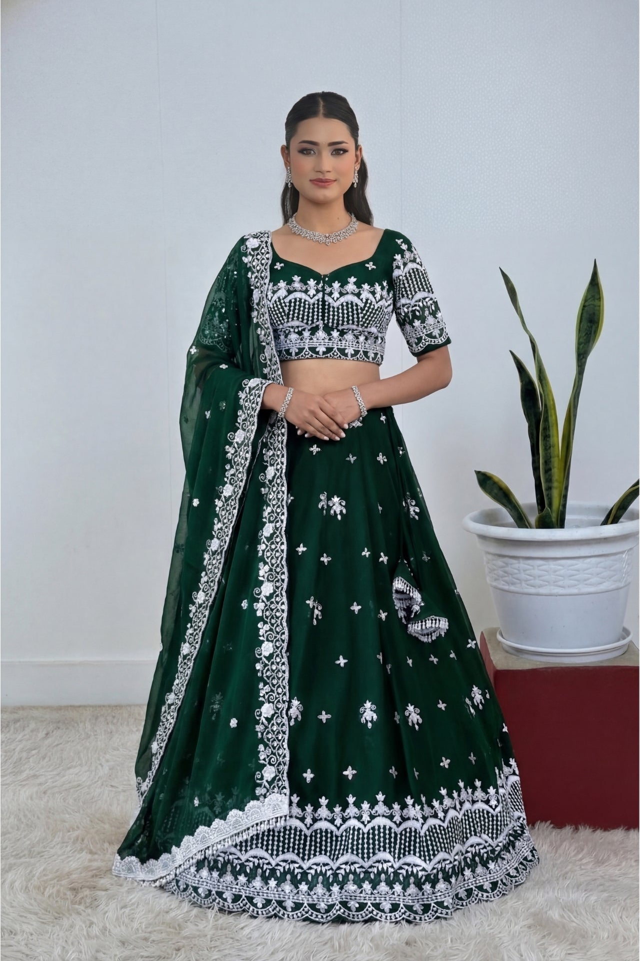 DarkGreen Lehenga Set In Georgette