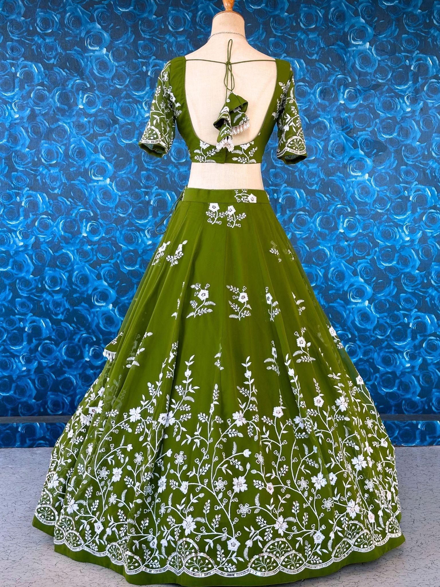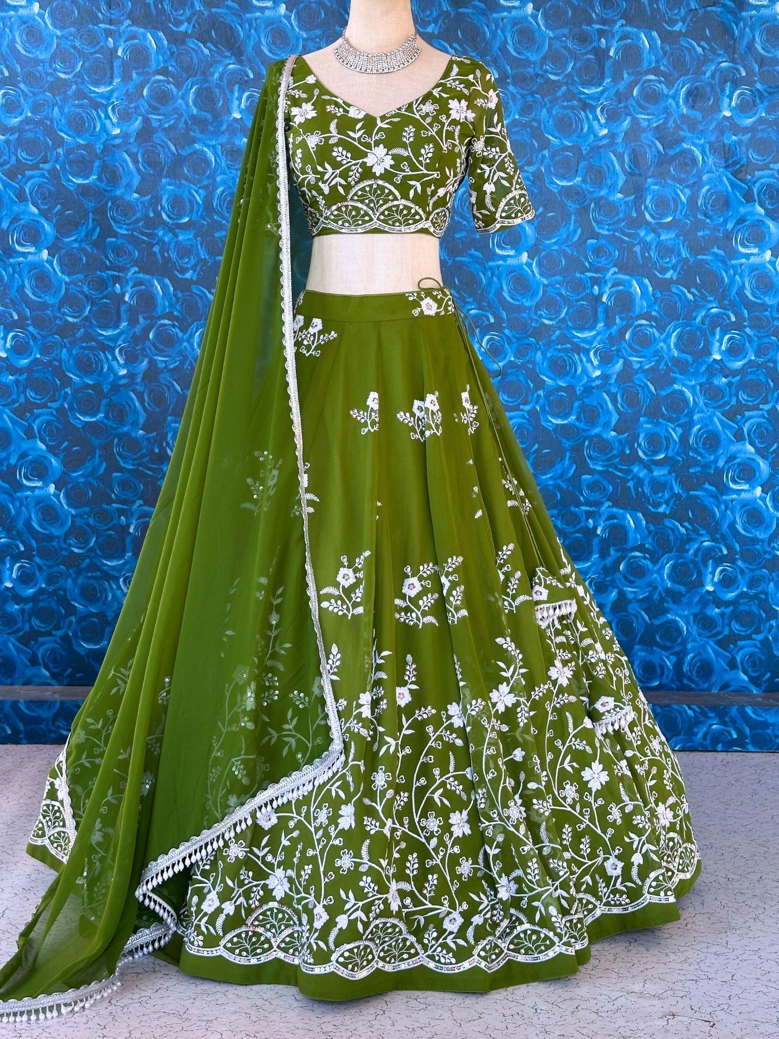 Green Lehenga Set With Heavy Embrodery Thread Work