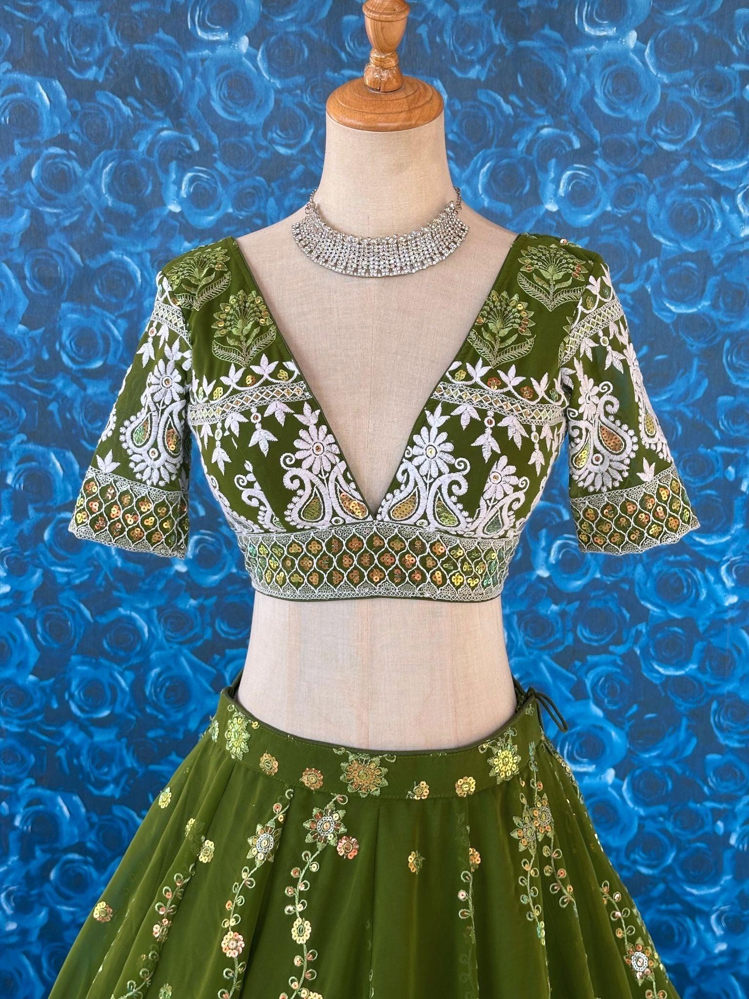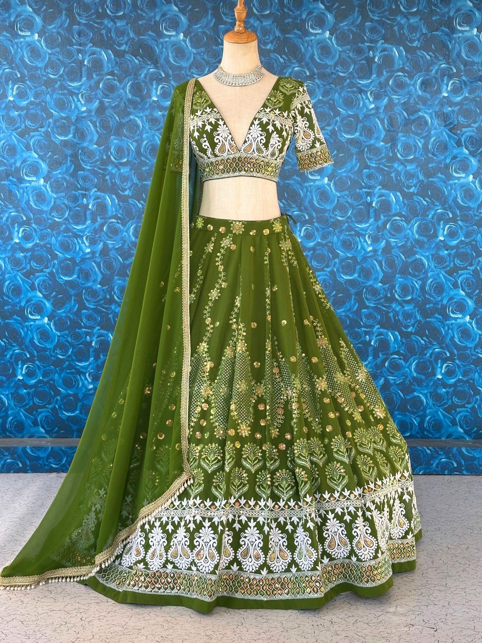 Heavy Embrodery Green Lehenga Set With Sequence Work