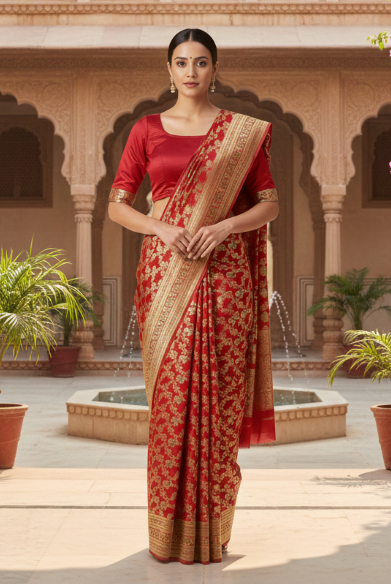Elevate your special day with our exclusive designer collection. From regal Bridal and Silk weaves to flowing Chiffon and Georgette drapes, we offer the finest craftsmanship. Whether you seek timeless elegance or modern flair, find your perfect saree and own the moment!"