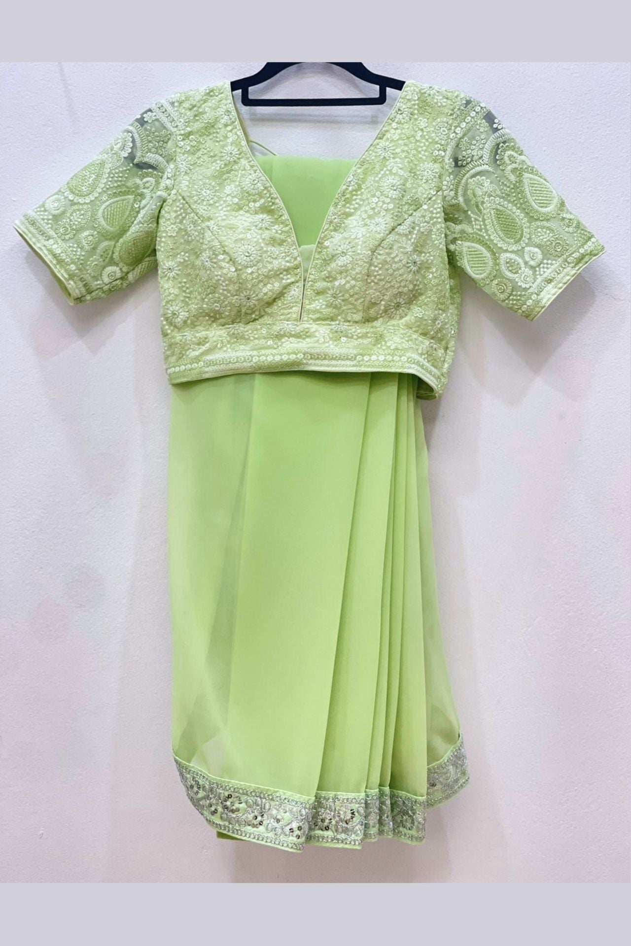 Drape the Saree: Secure the pallu using safety pins across the bust around your body.
