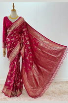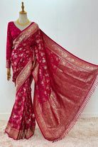 Hot Pink Banarasi Silk Saree with Gold and Floral Motifs