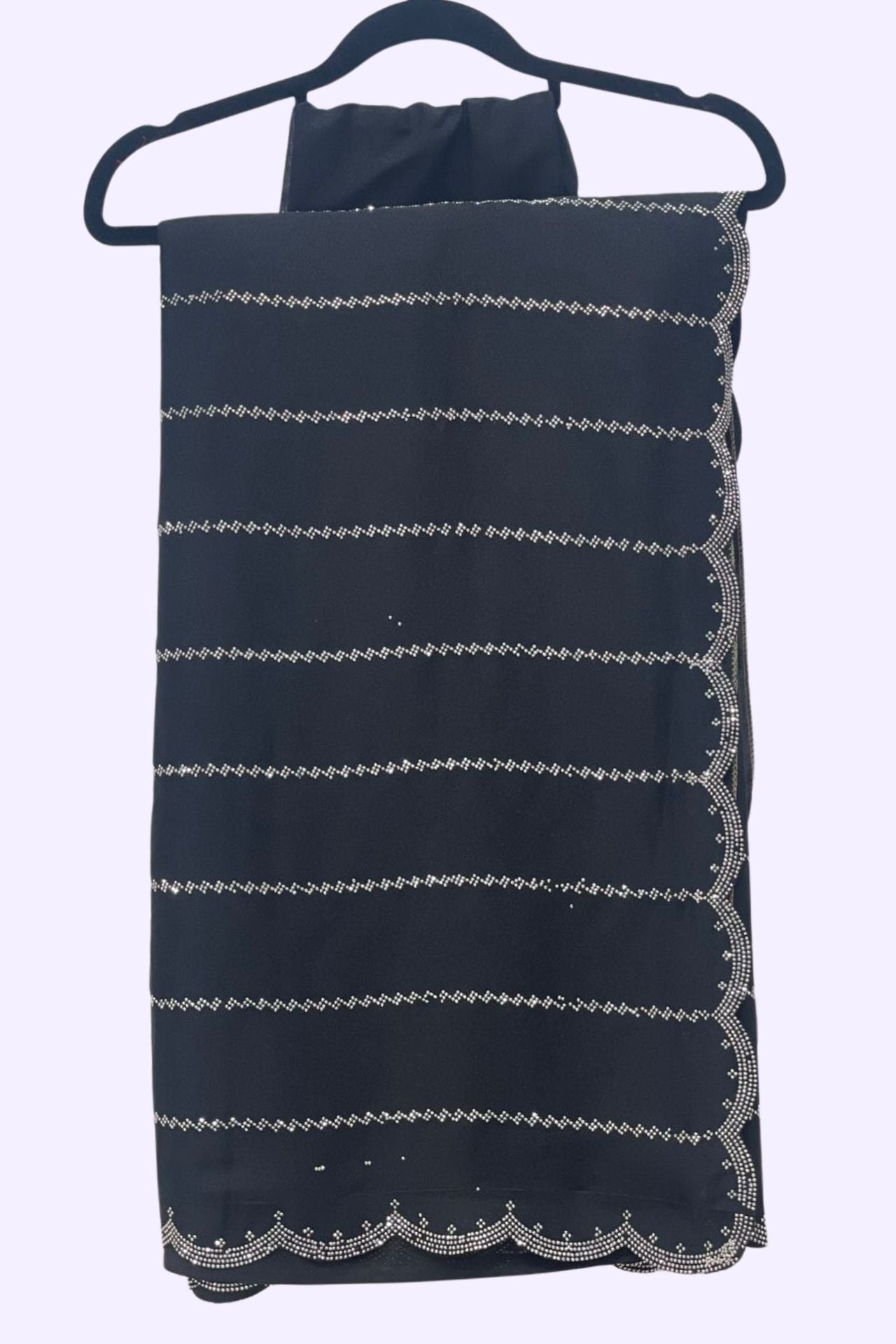 Design: Features a contemporary horizontal stone-studded pattern with an elegant scalloped border edge.