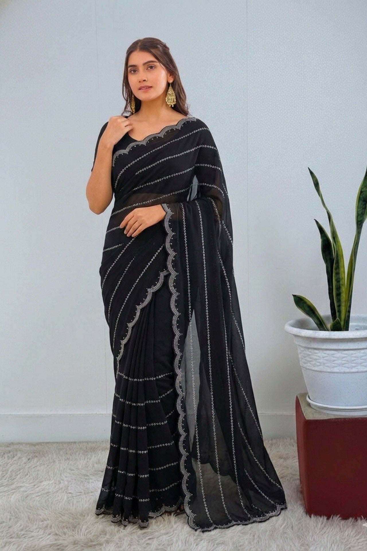 Black Georgette Stone Work Saree