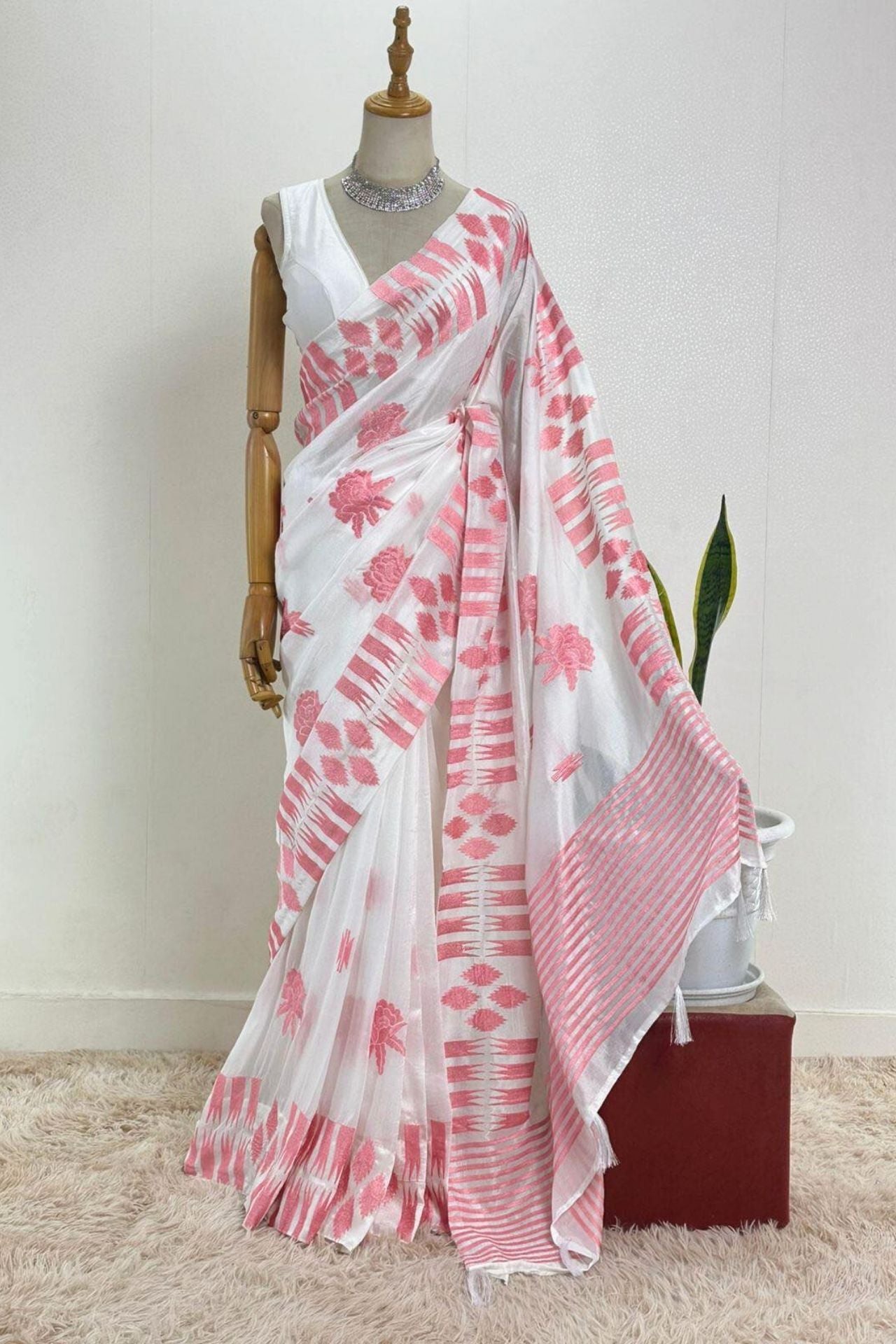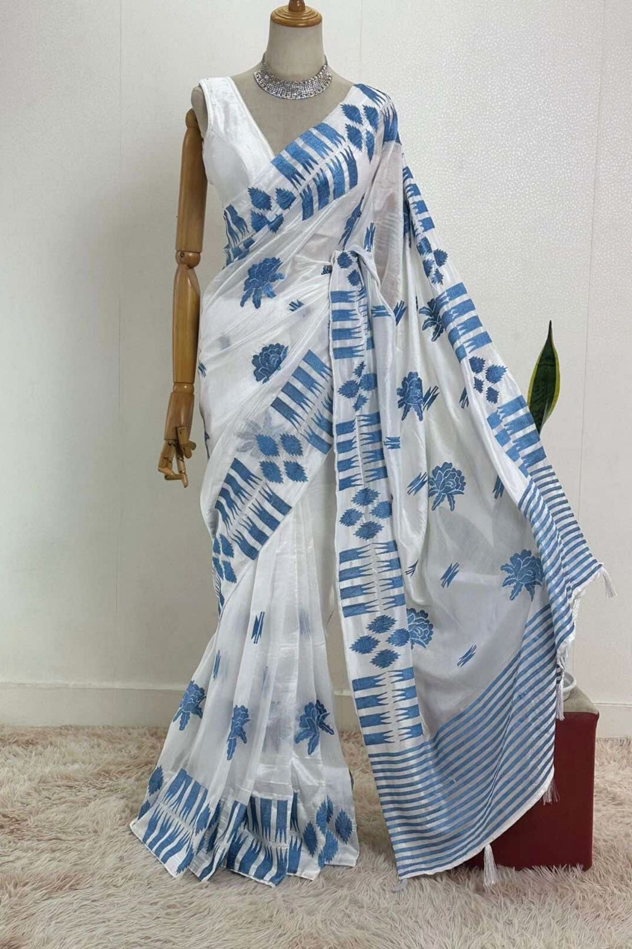 Design: Features a classic Ikkat-inspired geometric border paired with delicate floral bootis across the body.